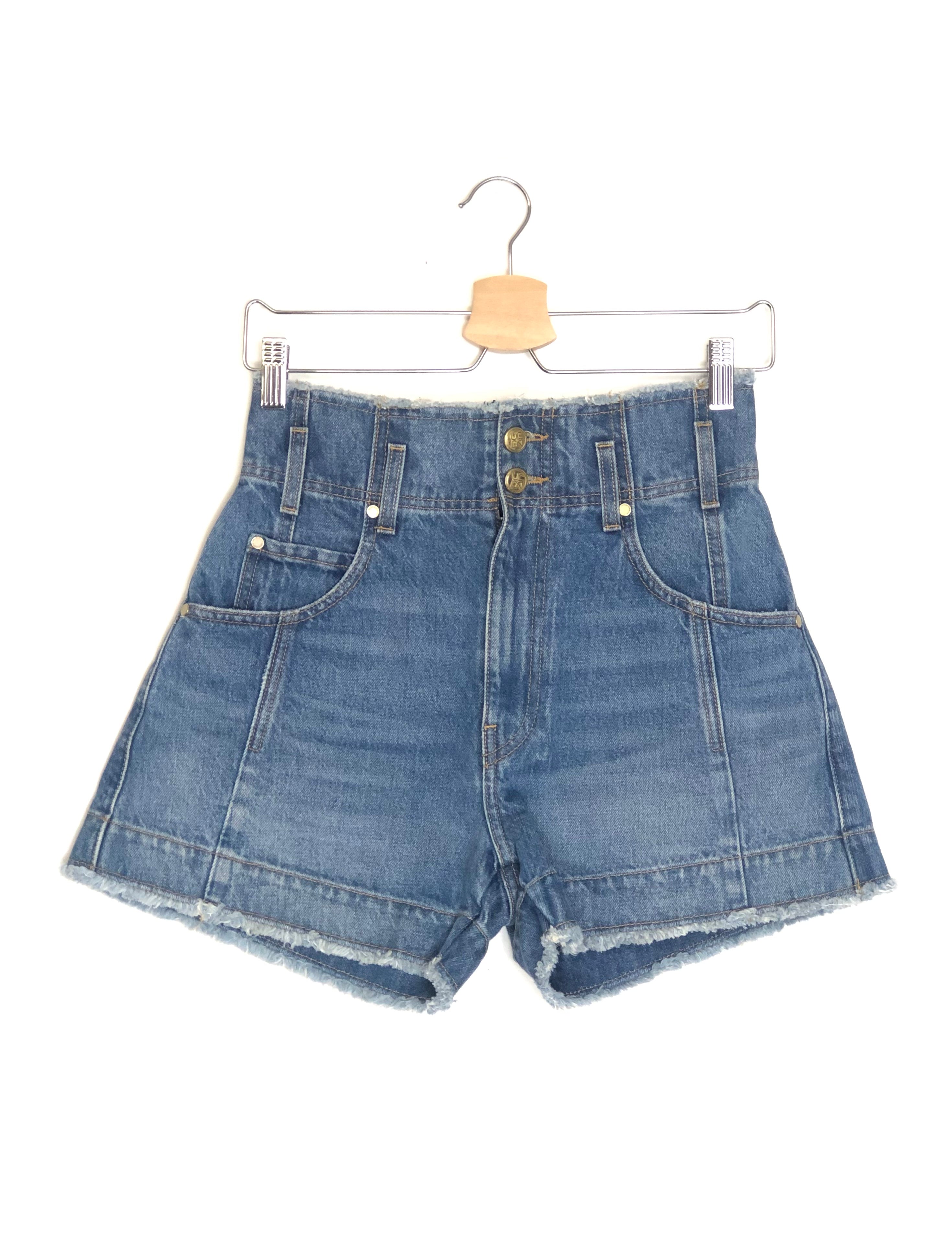 Washed Blue KASE High Waist Button Fly Fold-over Denim Shorts / ULLA JOHNSON - Size 2