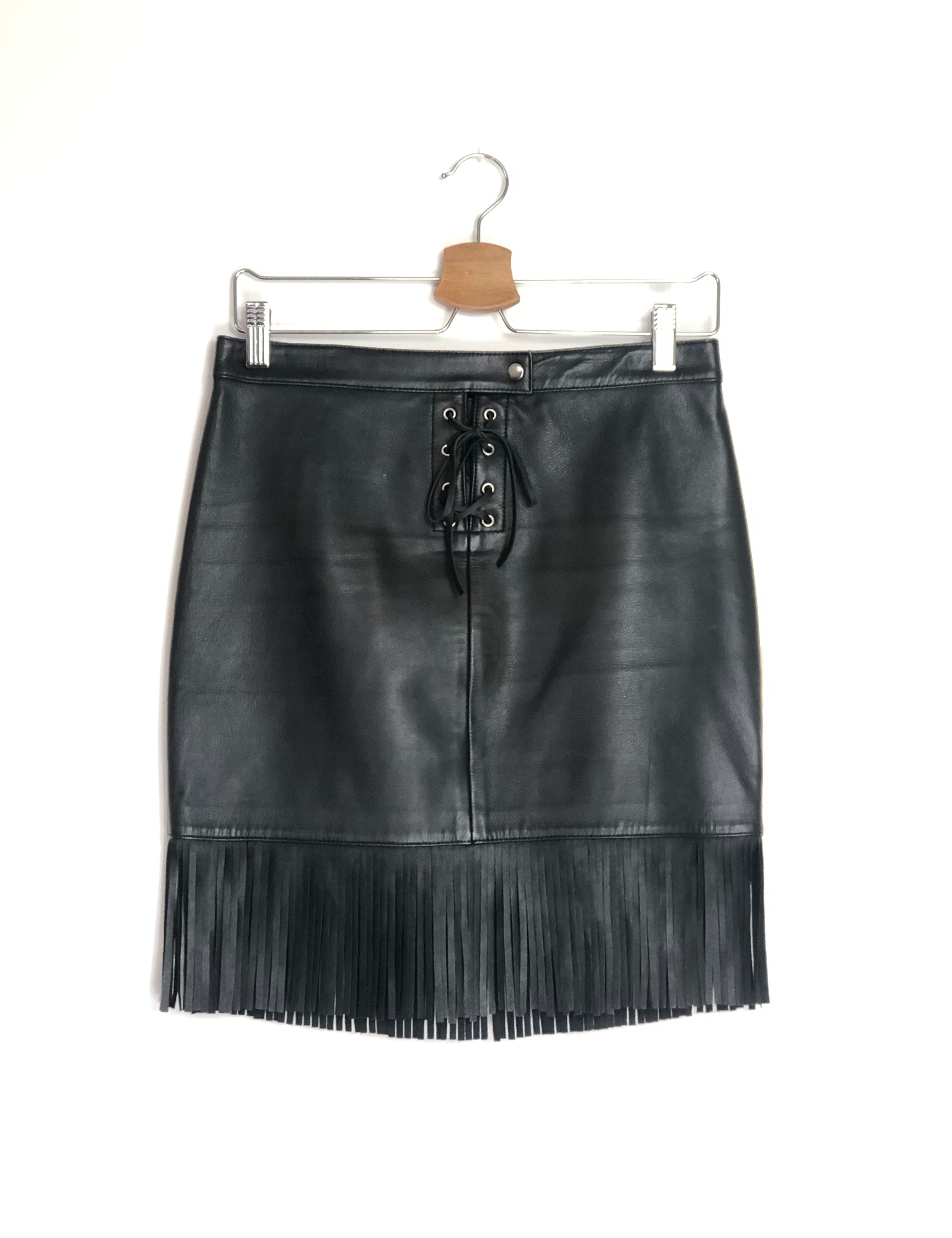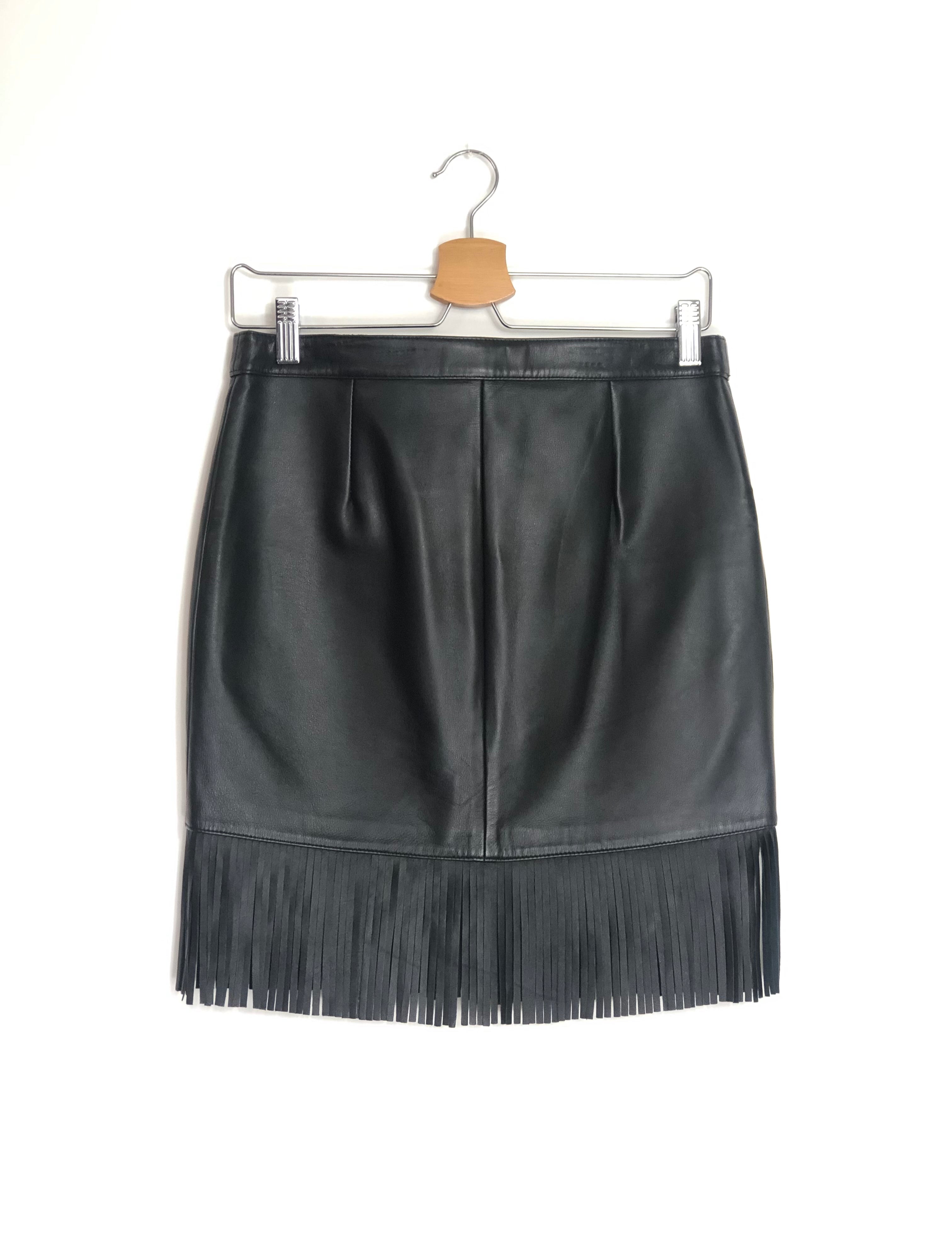 Black JUDY Fringed Leather Skirt / MAJE - Size 38