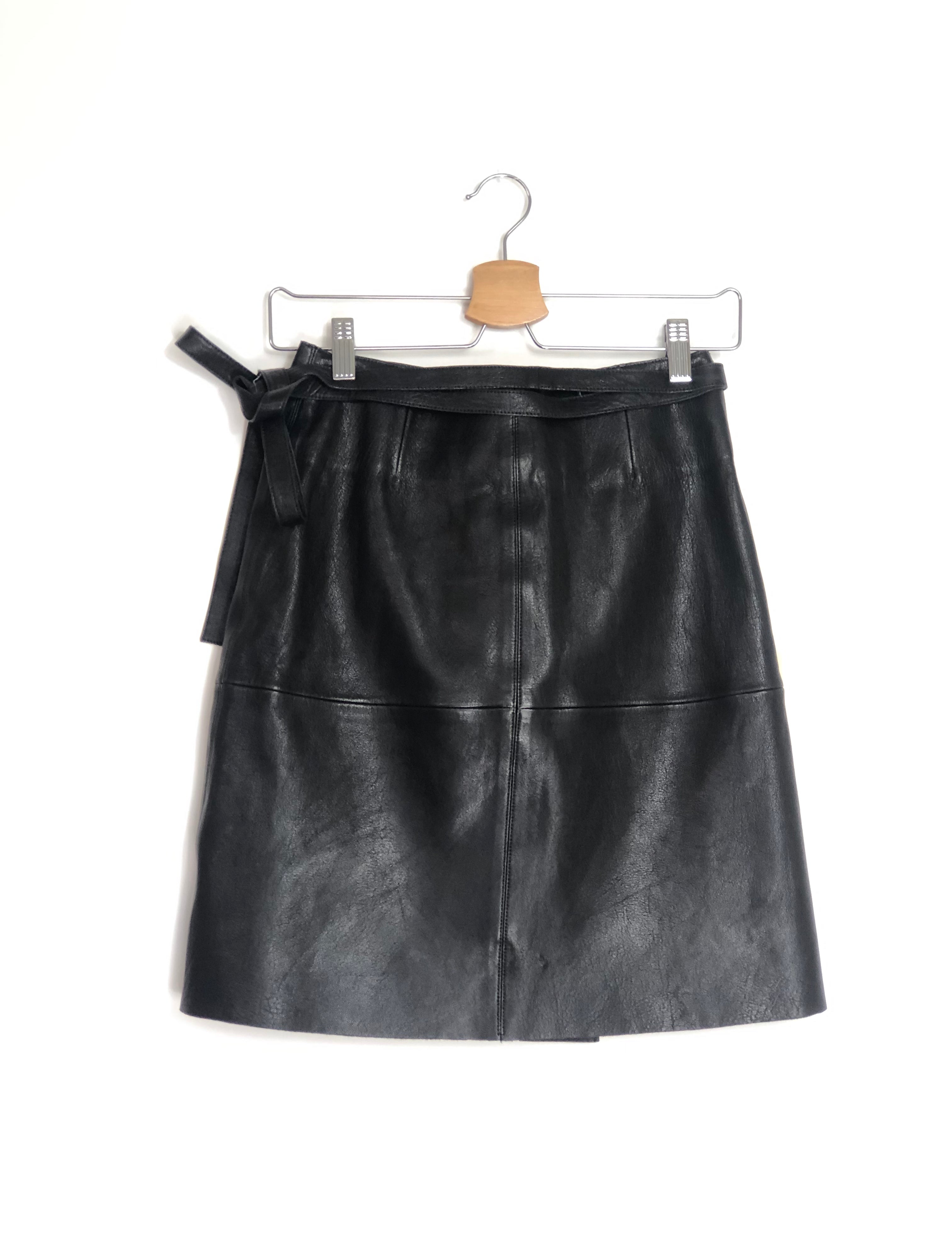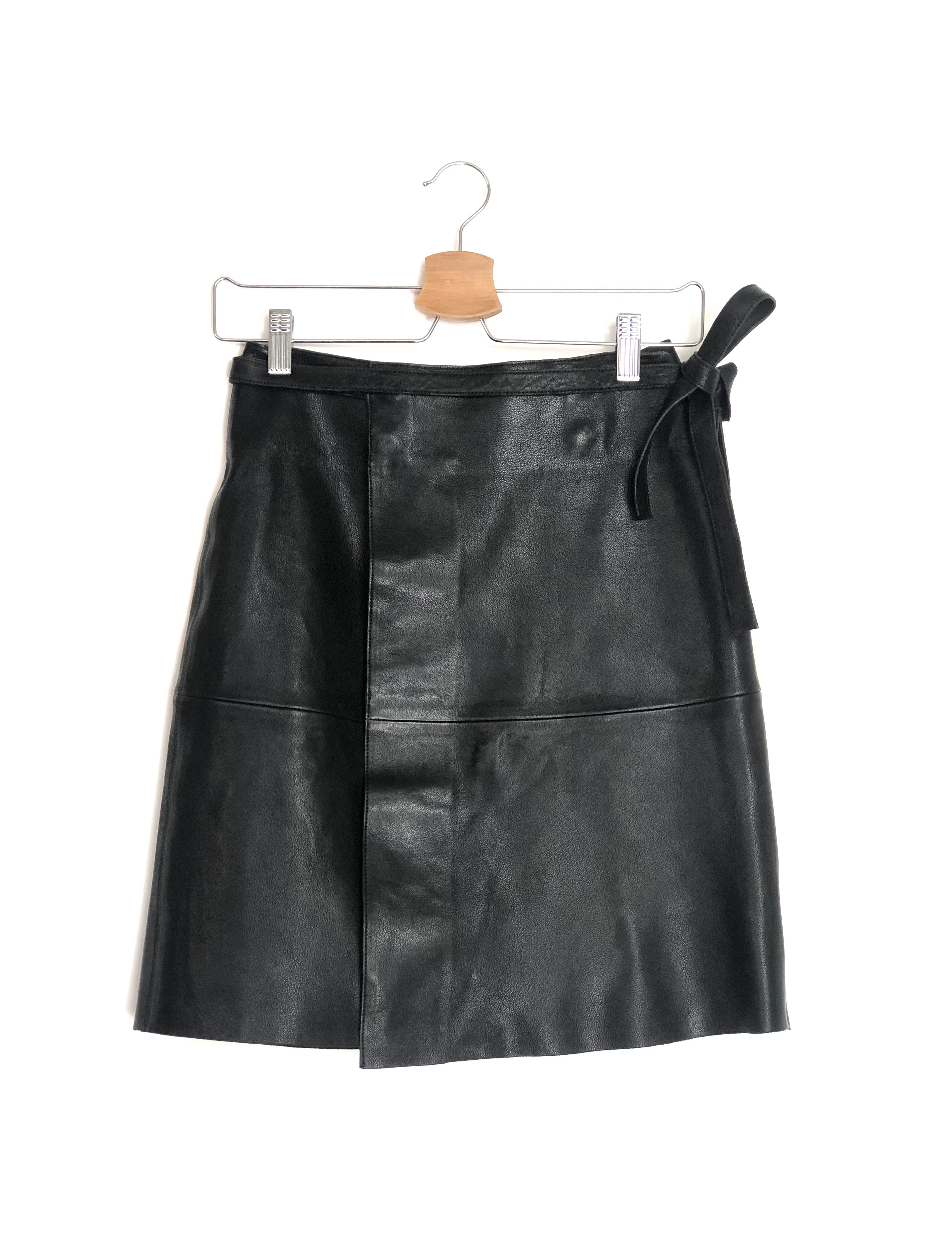 Black Lambskin Leather Wrap Mid-length Skirt / ISABEL MARANT - Size 34