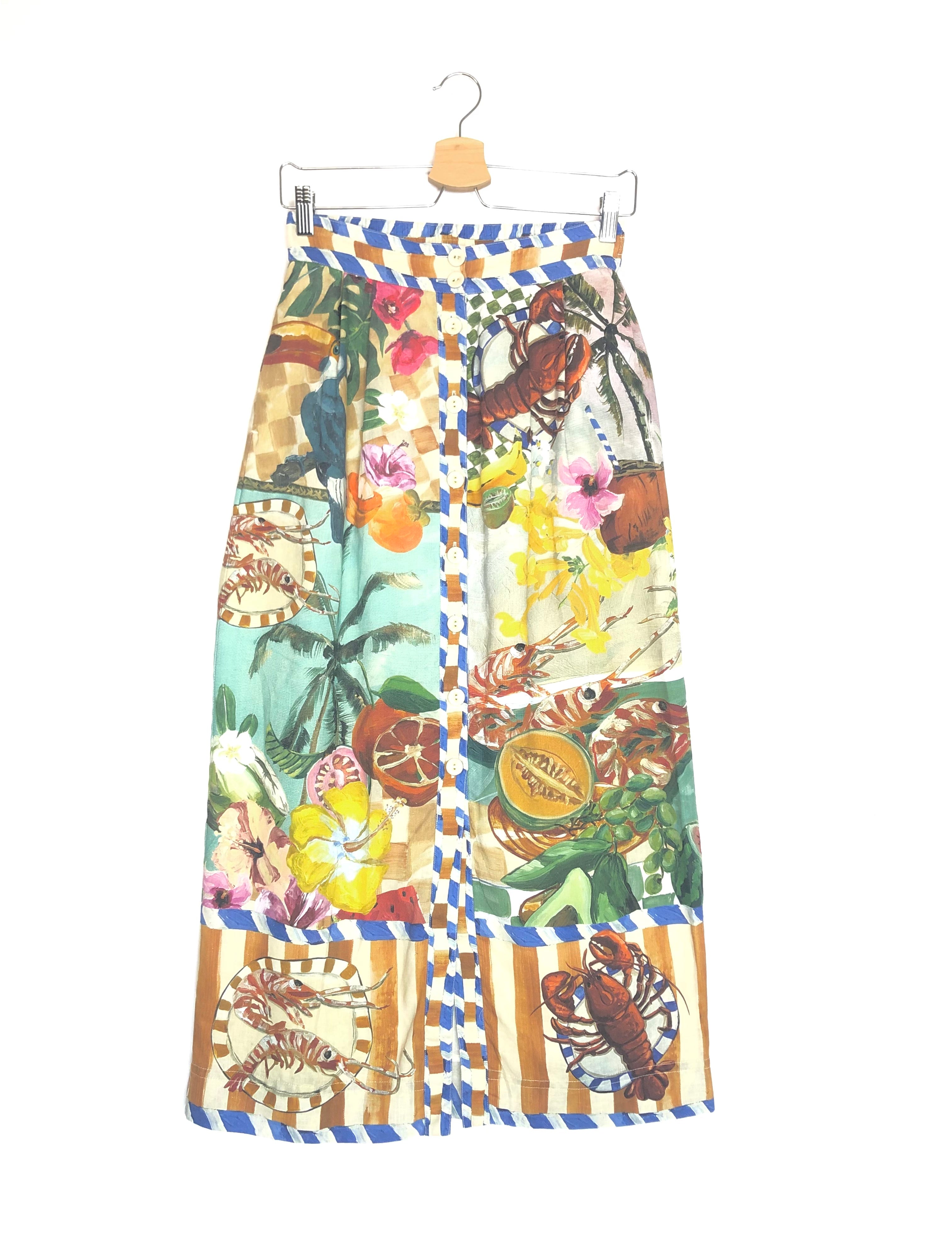 Multicolor Print THEO Linen Maxi Skirt / ALEMAIS - Size US 4