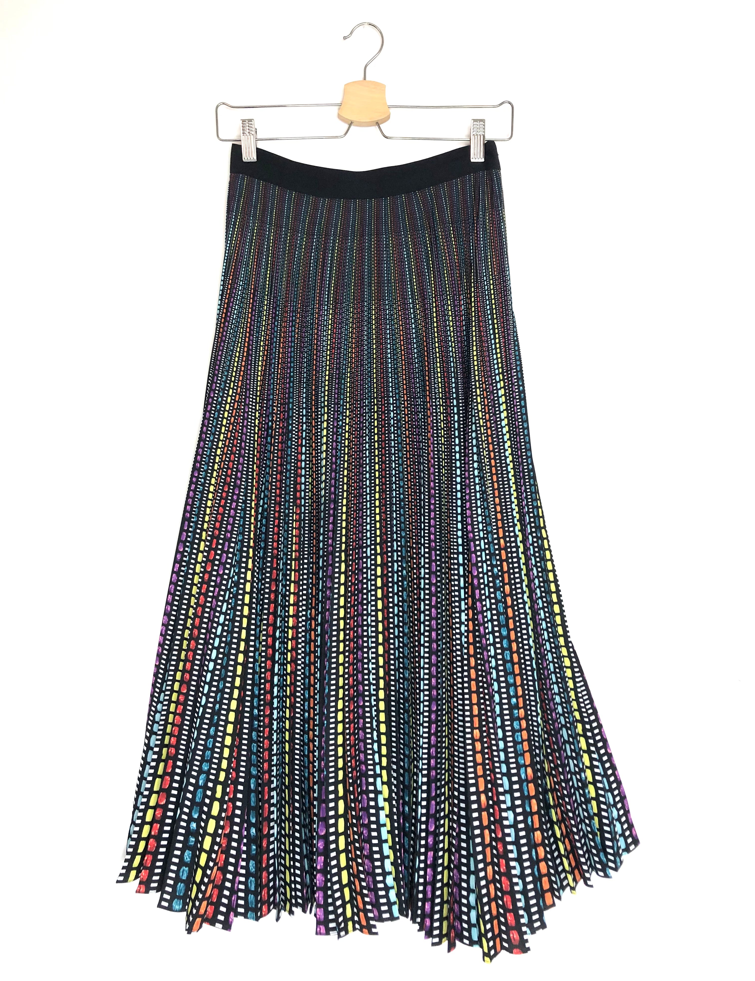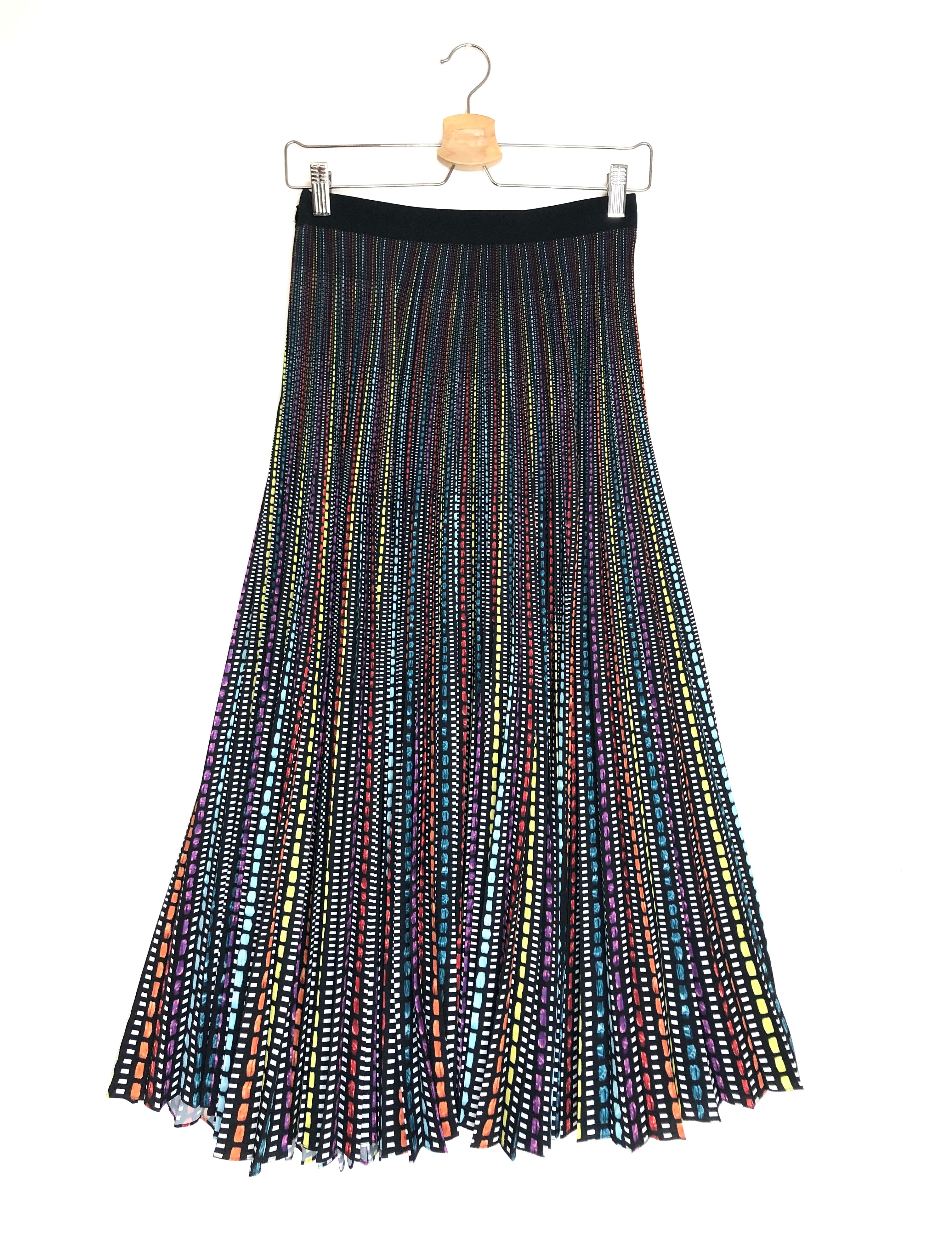 Multicolor Rainbow Striped Pleated Midi Skirt / MARY KATRANTZOU - Size 36