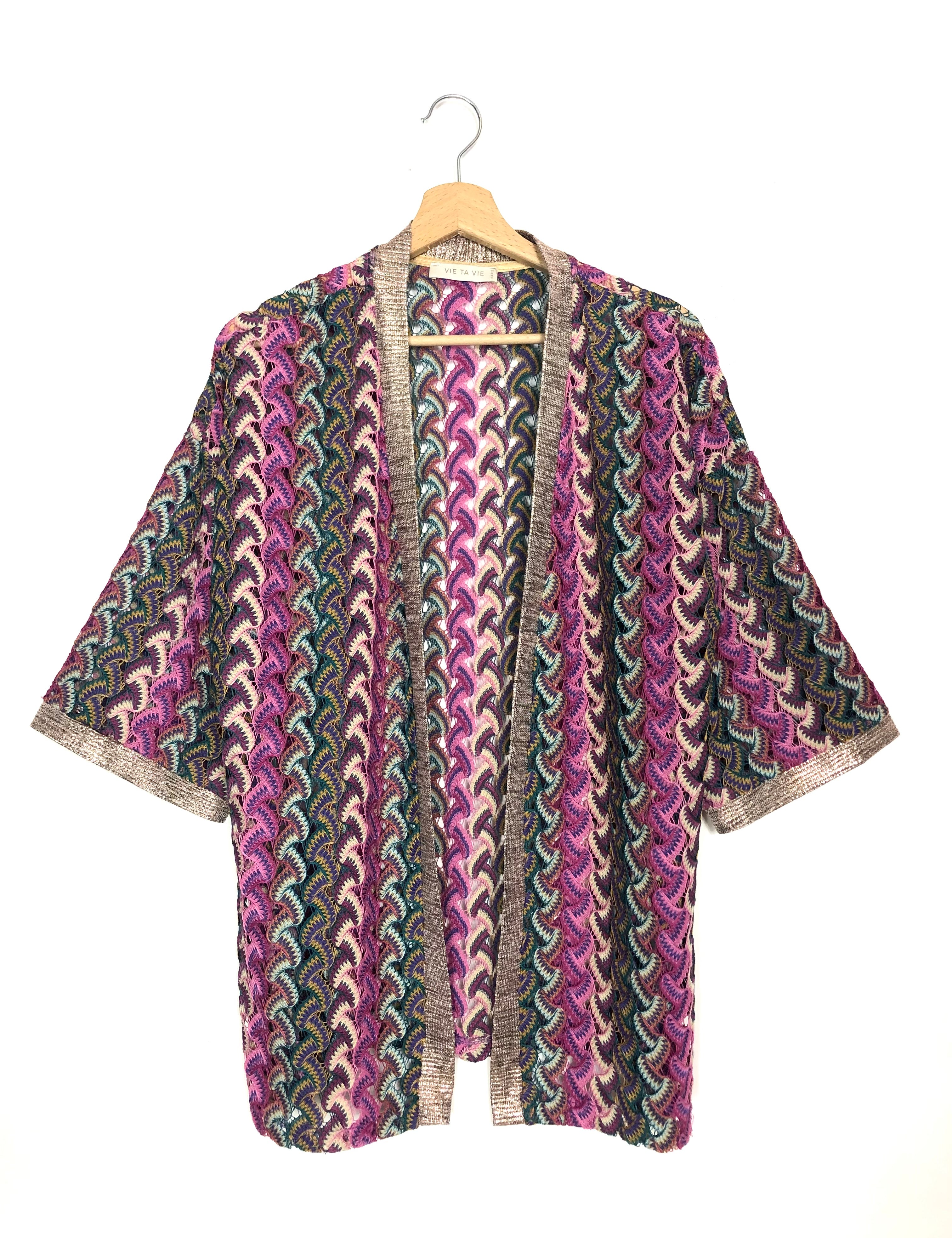 Pink CALVI Crocheted Kimono Cardigan / VIE TA VIE - One Size