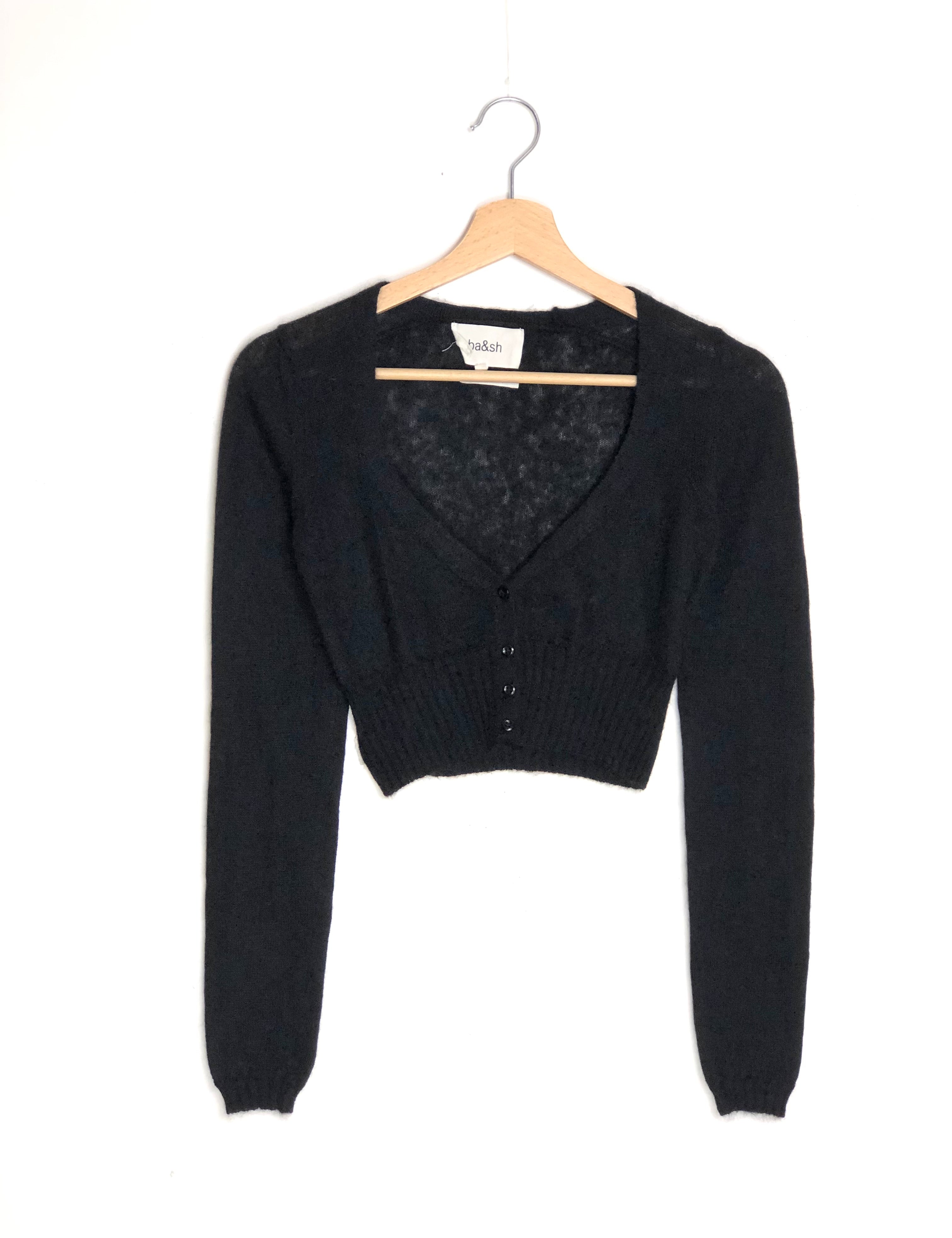 Black FAUZIA Wool Blend Cropped Cardigan / BA&SH - Size 0