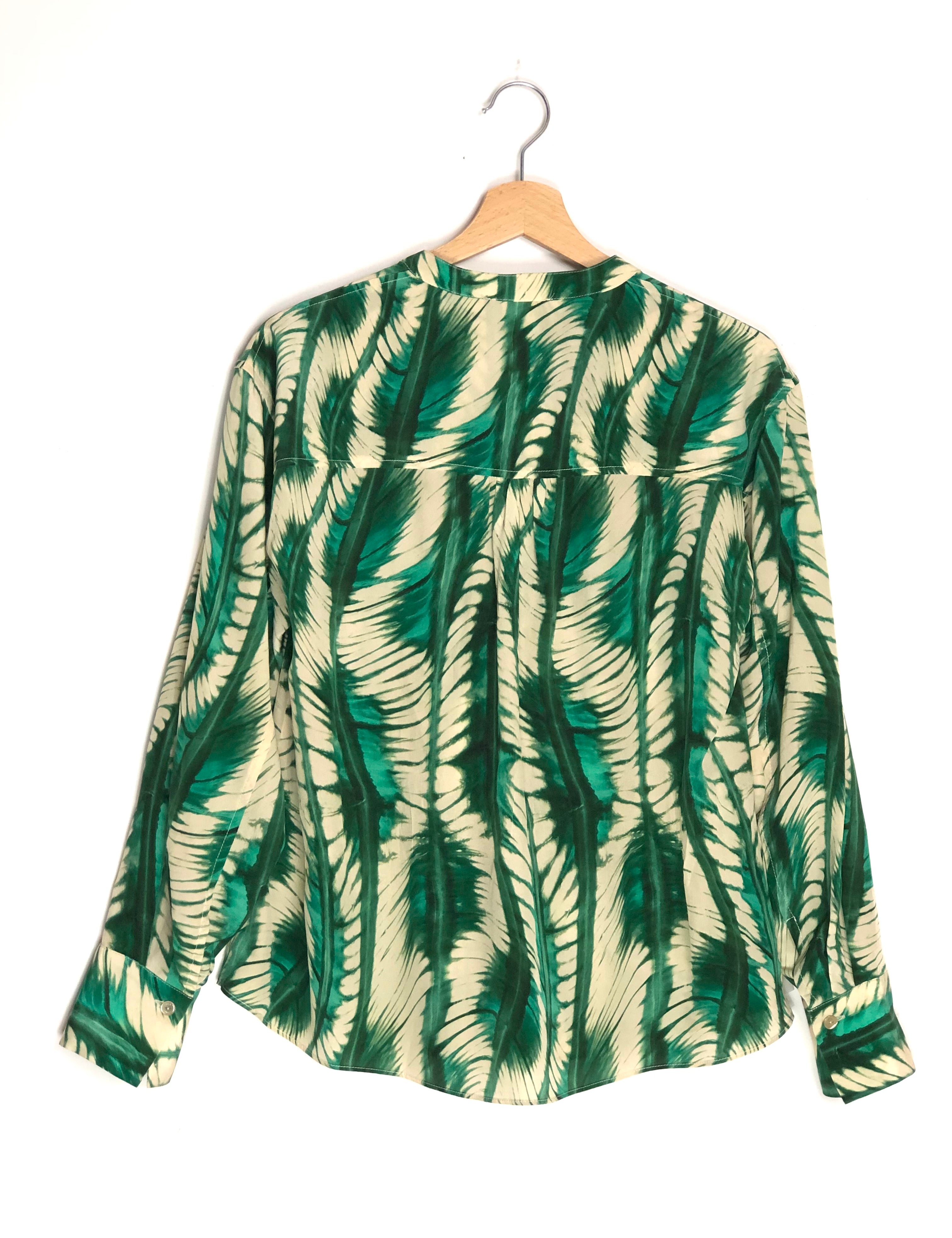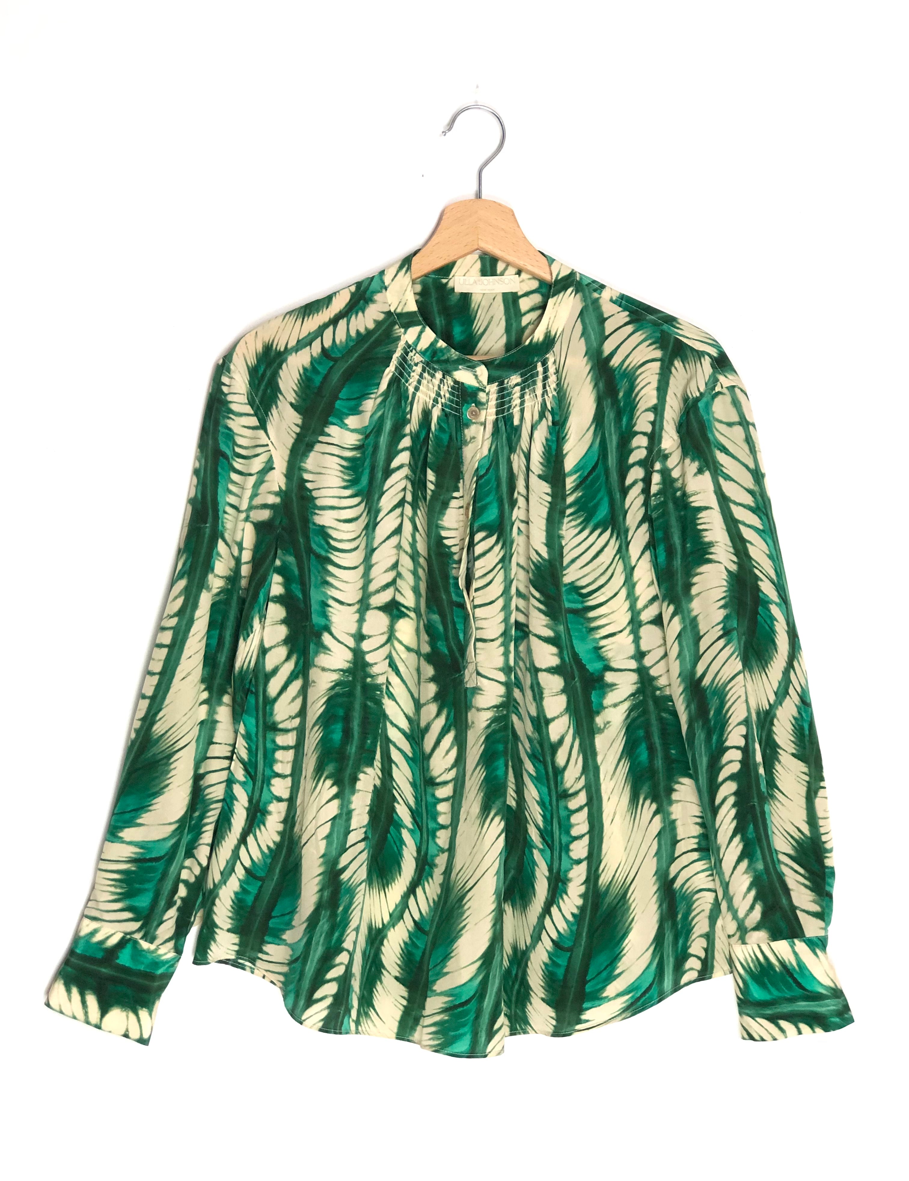 Green NEHIR Print Silk Long Sleeves Blouse / ULLA JOHNSON - Size US 2