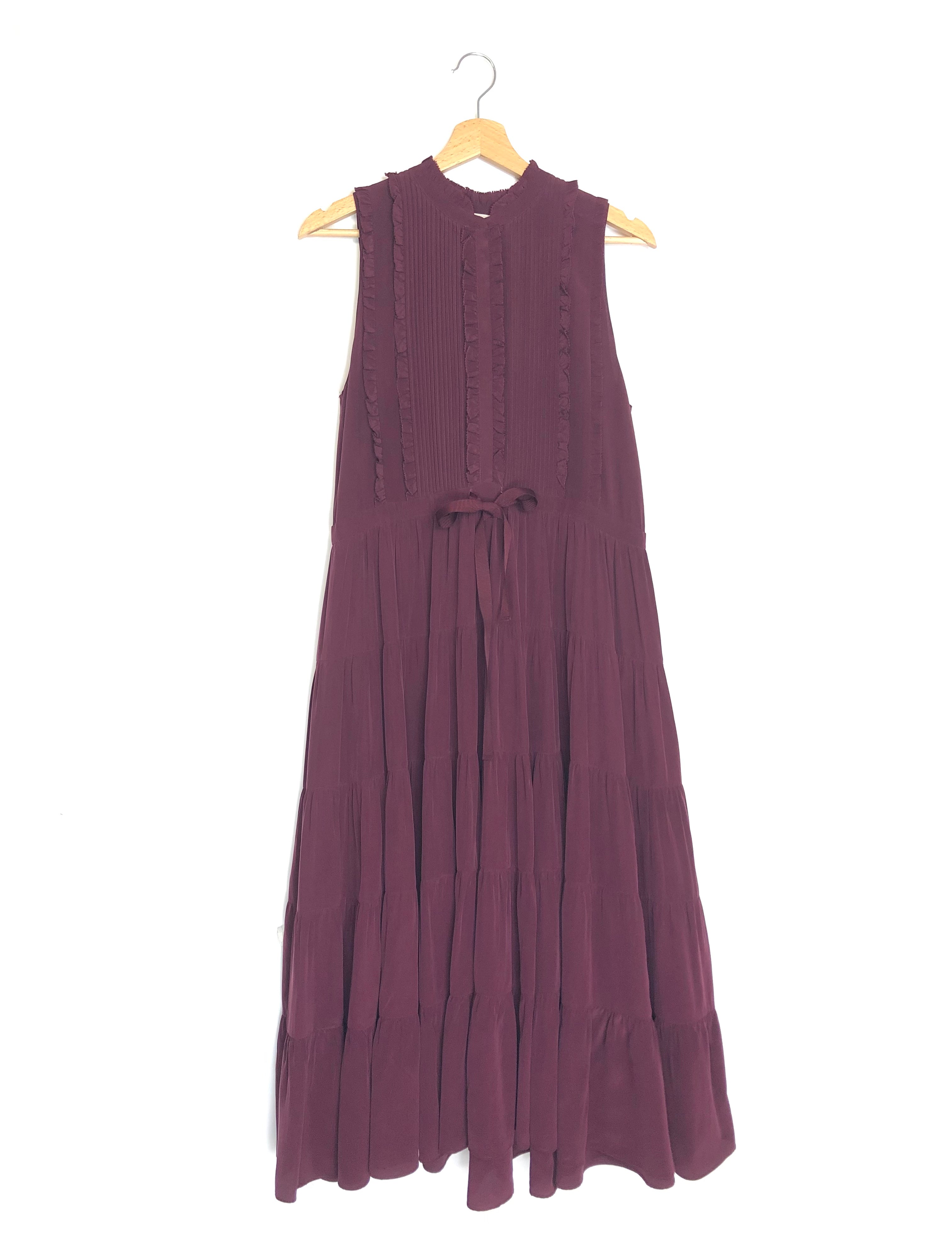 Burgundy MINETTA Silk Pleated Sleeveless Midi Dress / ULLA JOHNSON - Size US 2