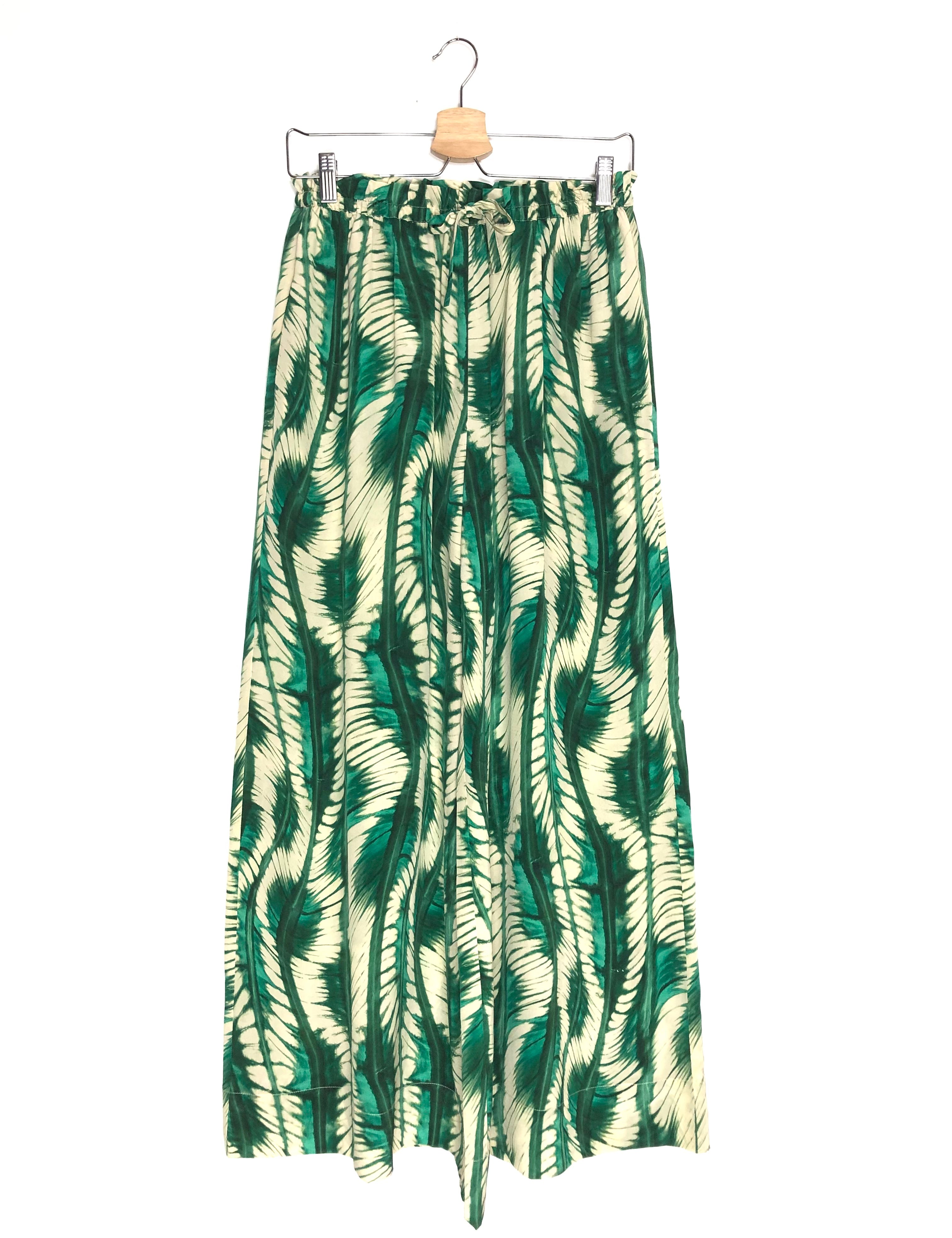 Green SAWYER Printed Silk Wide Leg Pants / ULLA JOHNSON - Size US 2
