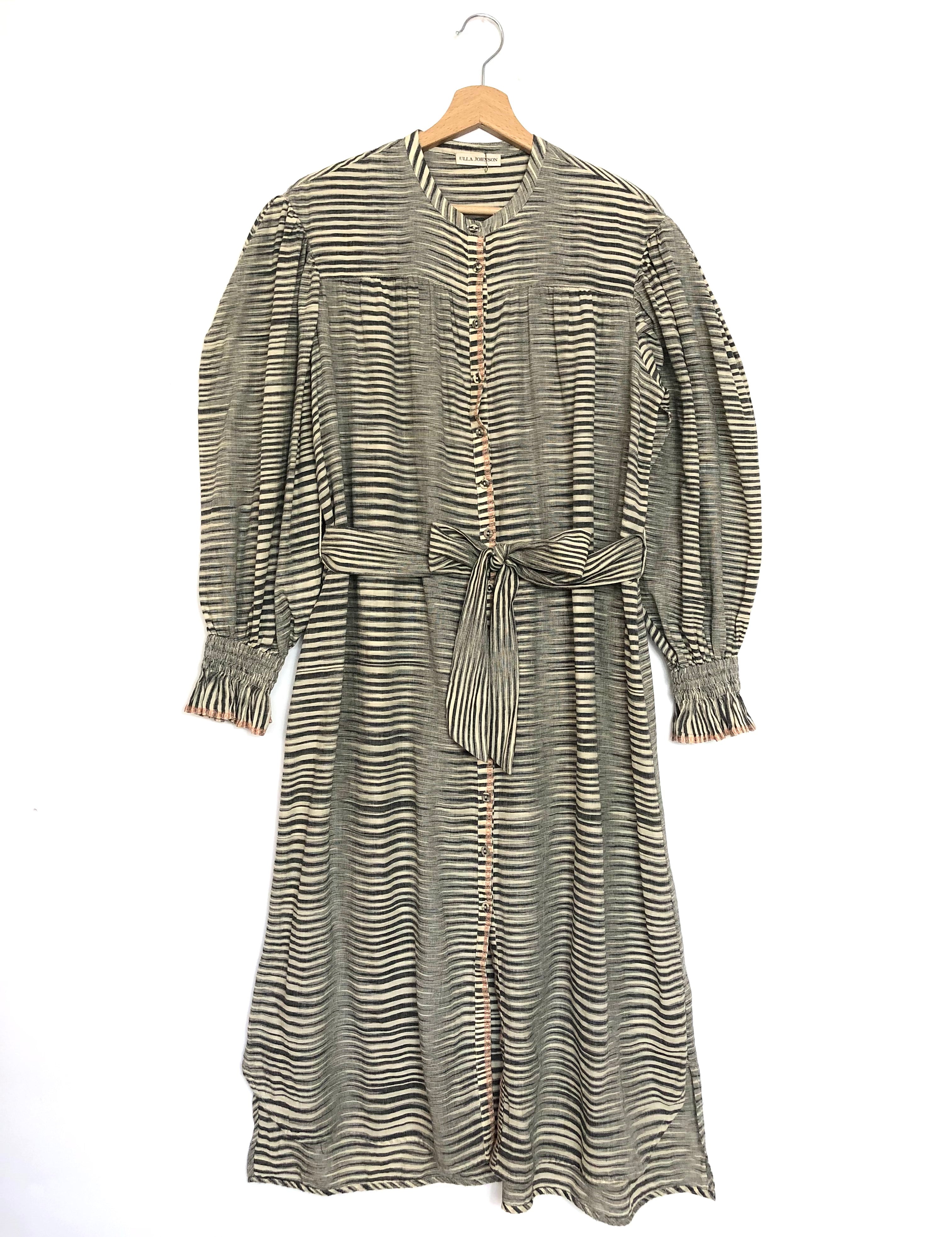 Grey FIORA Striped Cotton Long Puffed Sleeves Shirt Dress / ULLA JOHNSON - Size US 6