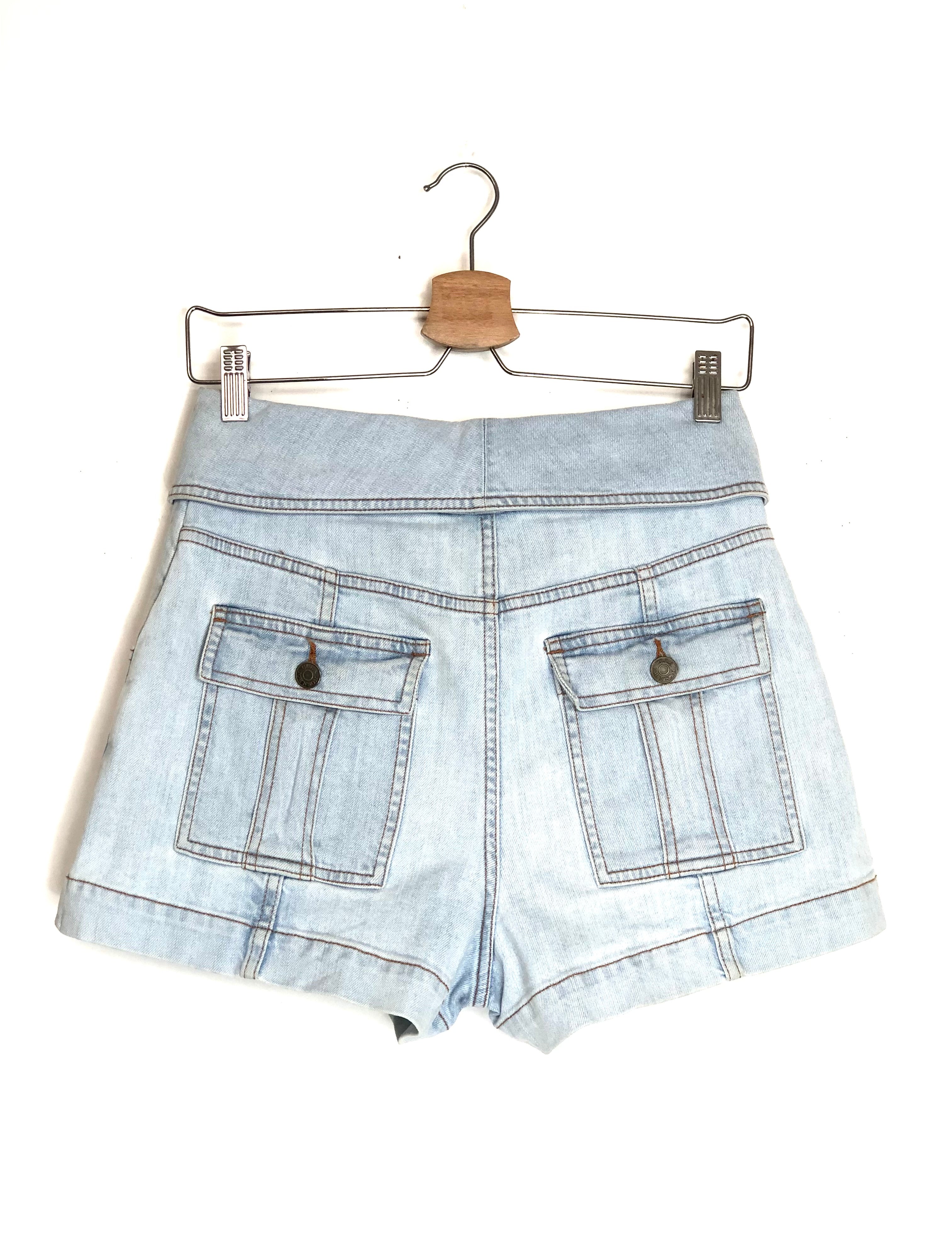 Washed Blue KASE High Waist Button Fly Fold-over Denim Shorts / ULLA JOHNSON - Size 2