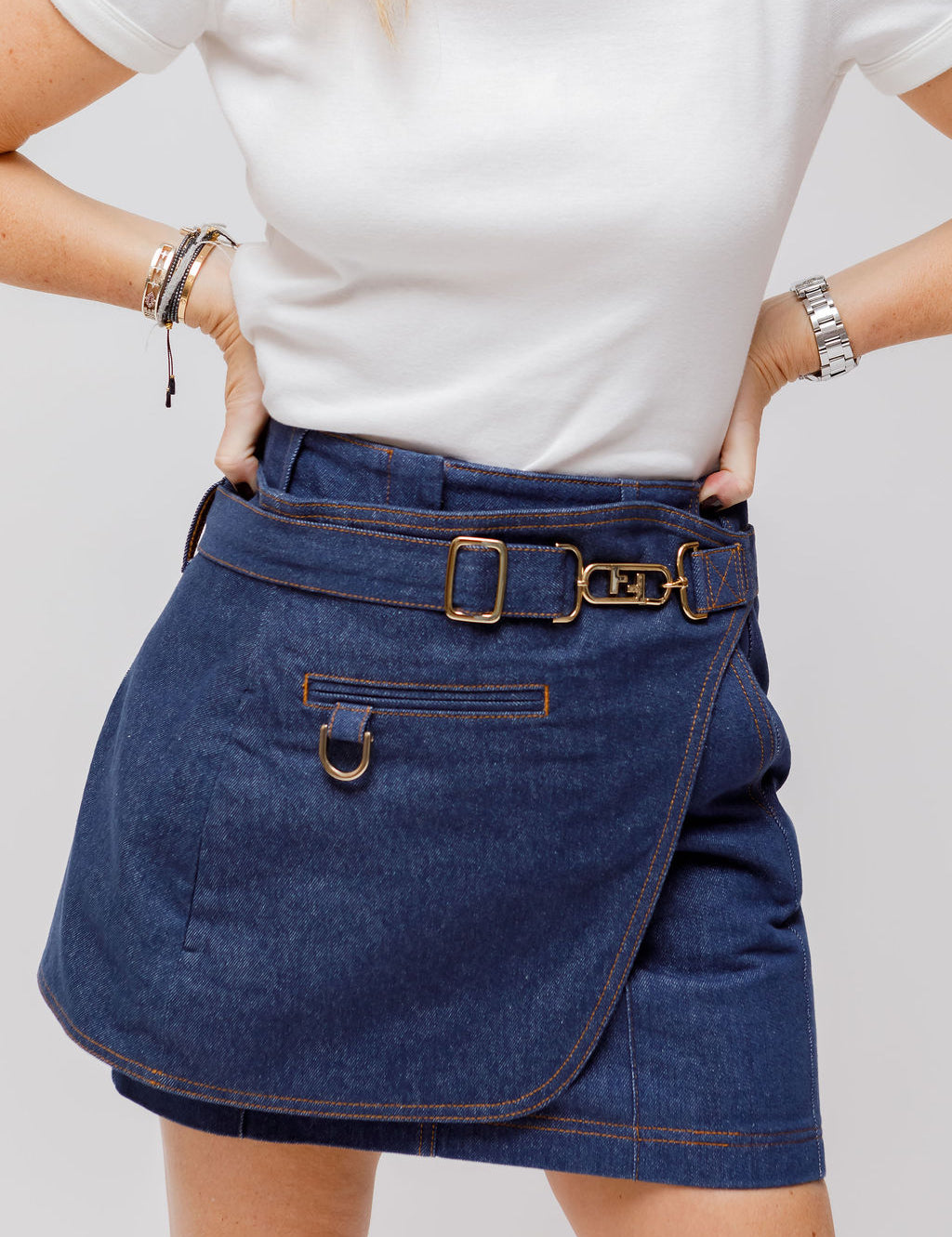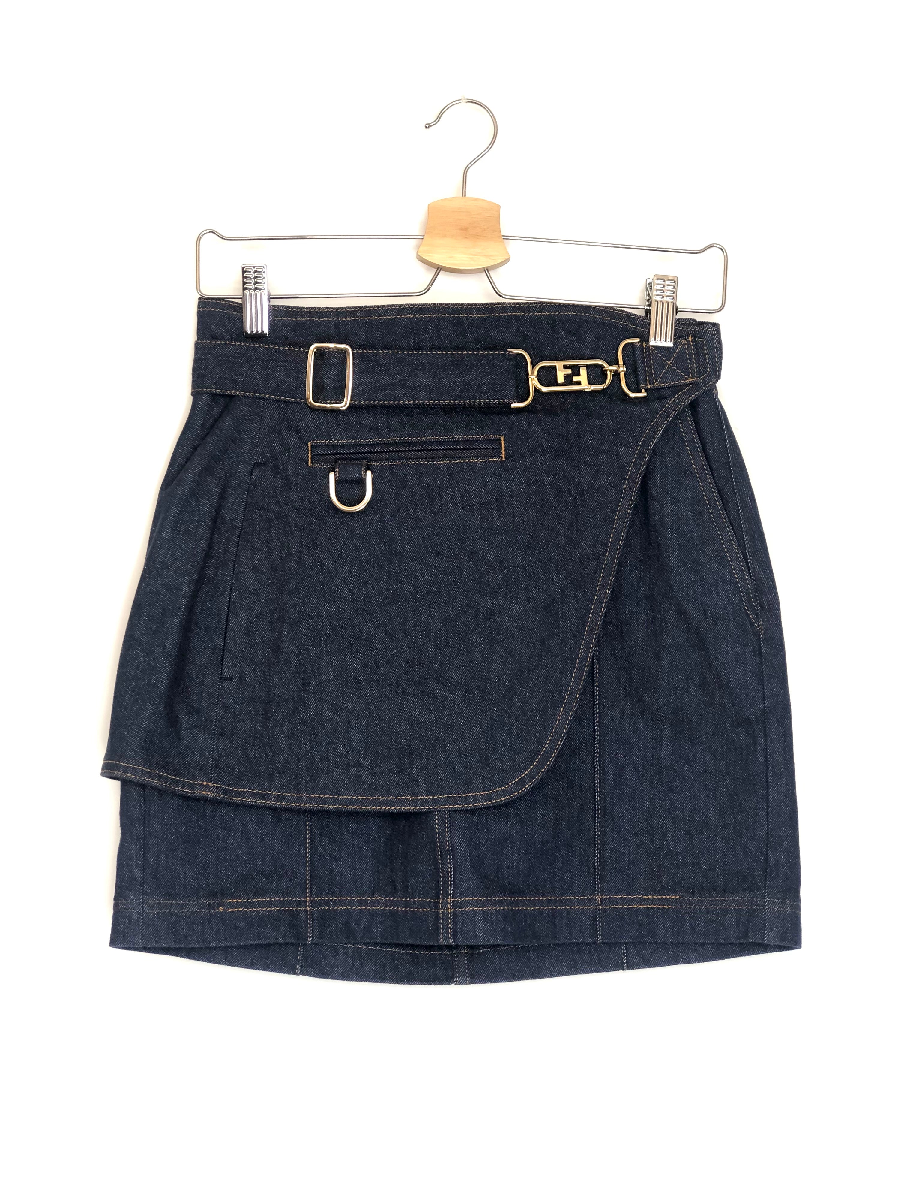 Dark Blue Denim Mini Skirt with Denim Belt / FENDI - Size 36