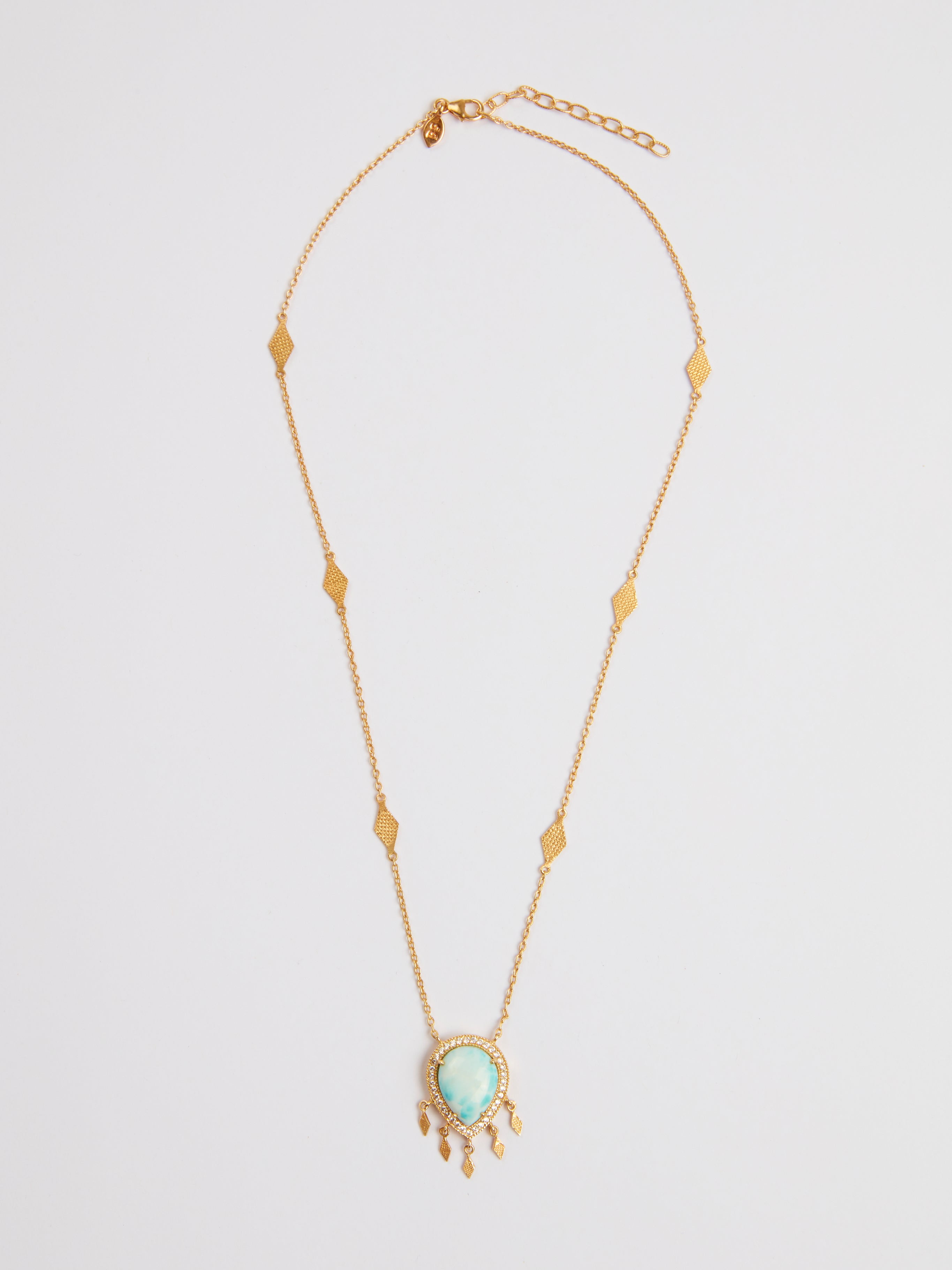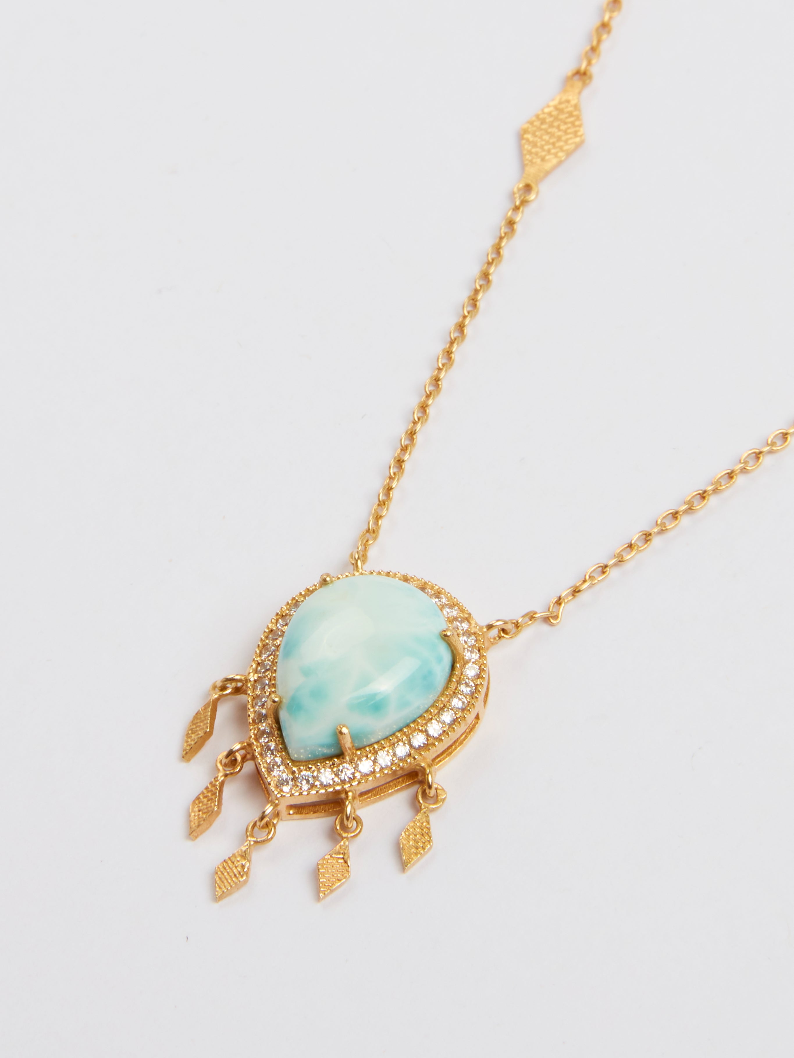 Amazonite Drop Pendant Set with White Zircons and Small Gold-plated Tassels Necklace - model PRINCESS / SHIREL BELLAICHE