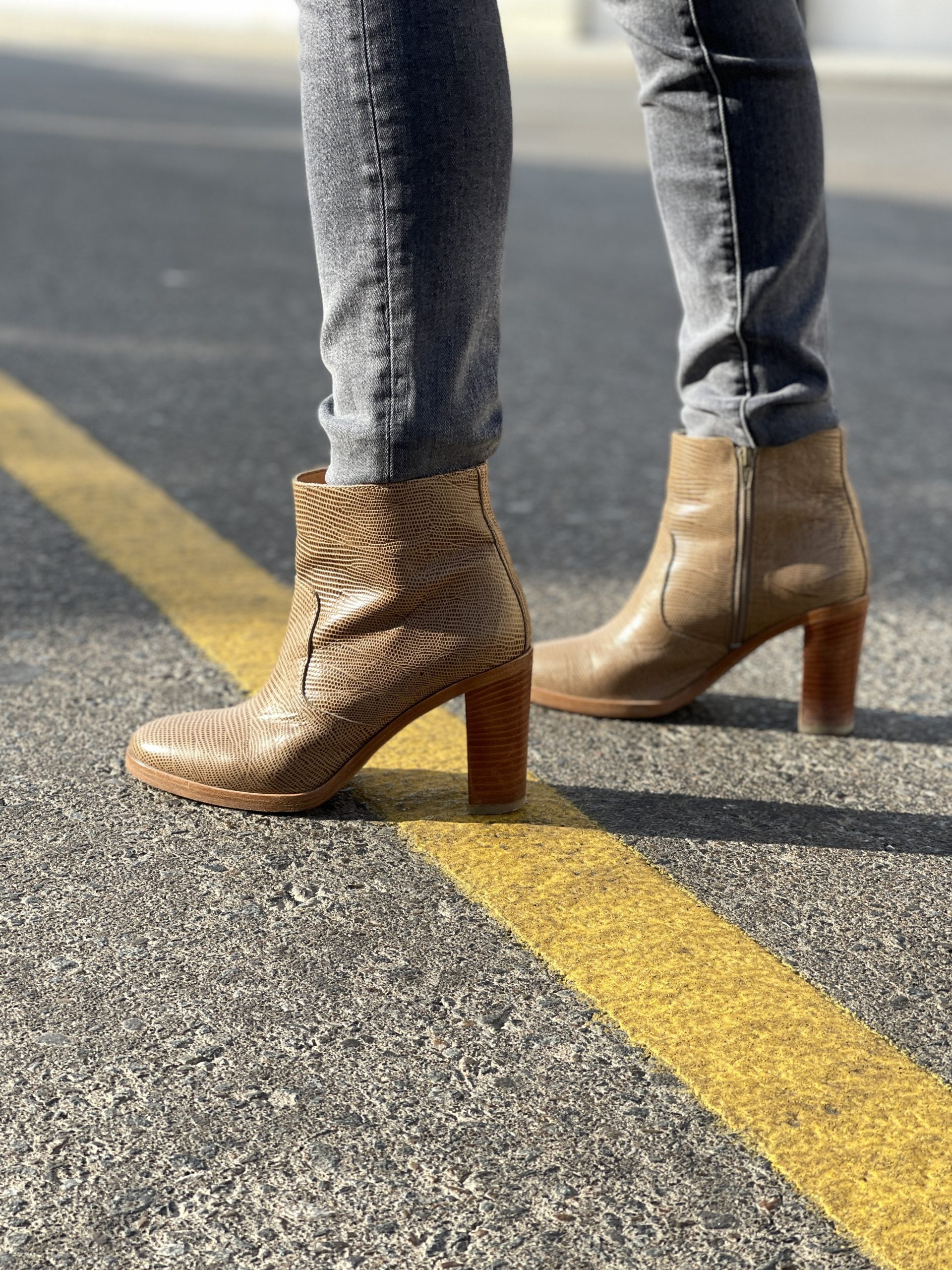 Light Brown Textured Leather Side Zip Block Heel Booties - Size 38