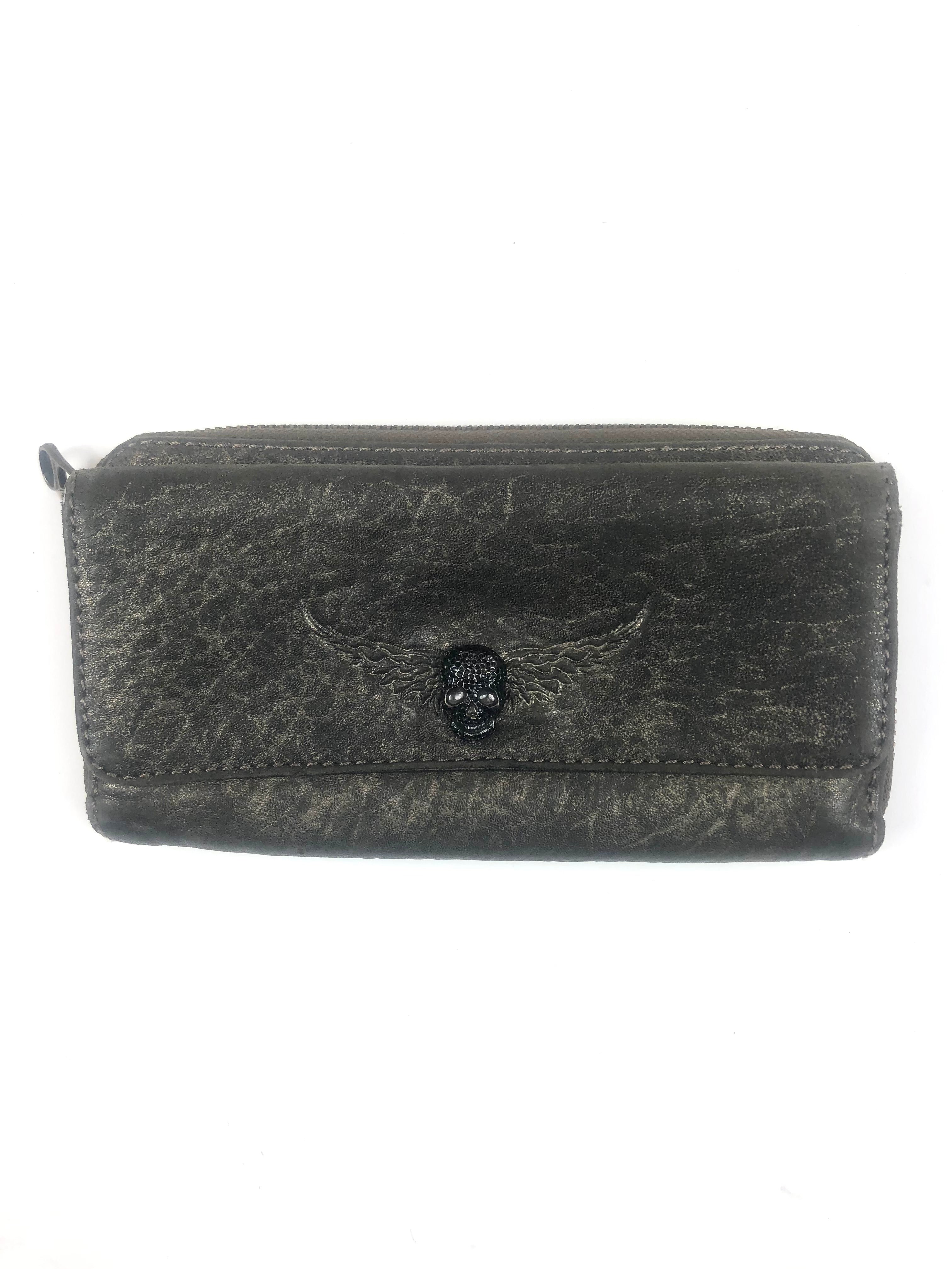 Antique Bronze FANNY BUBBLE Skull Wings Wristlet Deluxe Purse / ZADIG & VOLTAIRE - One Size