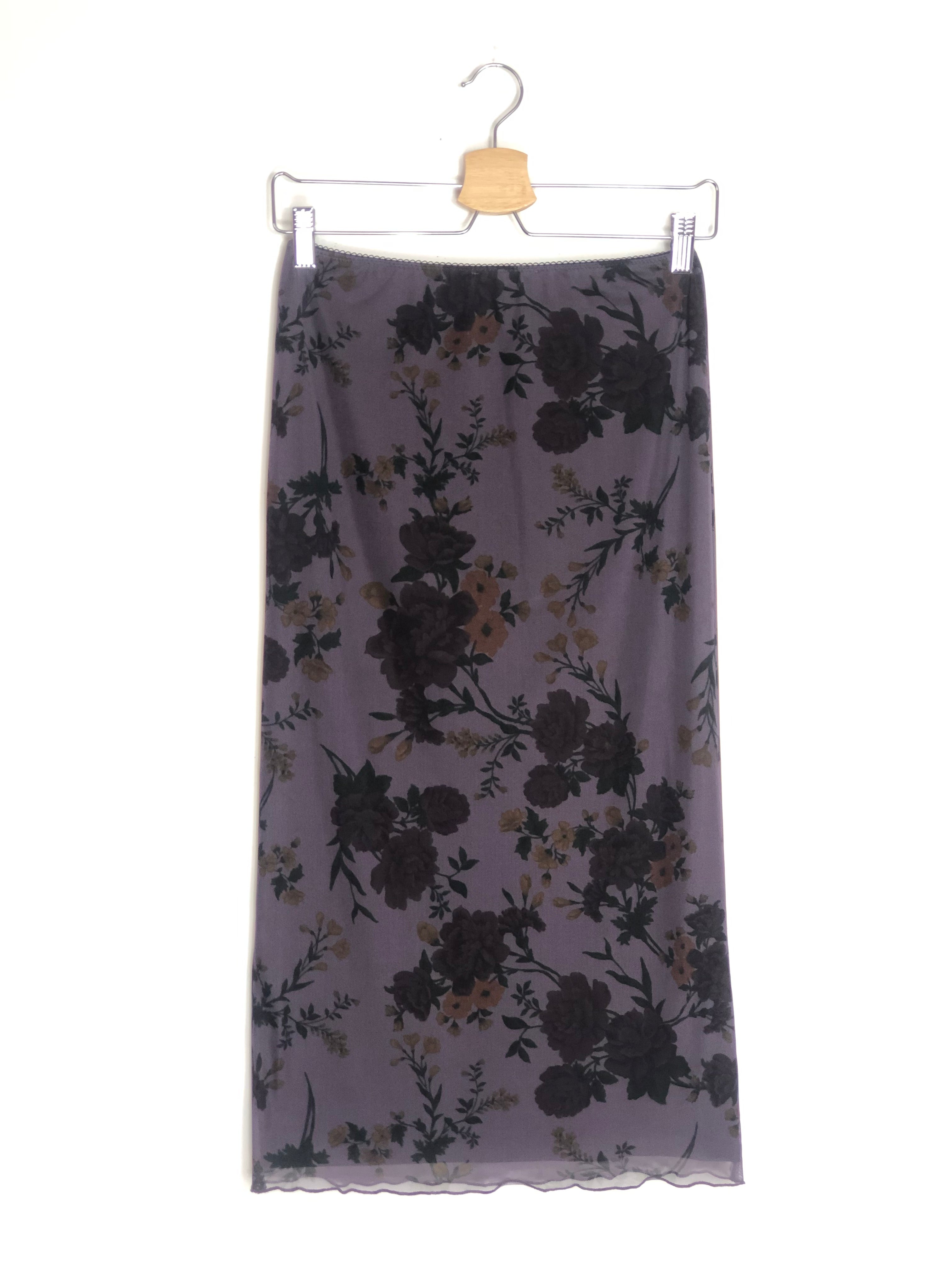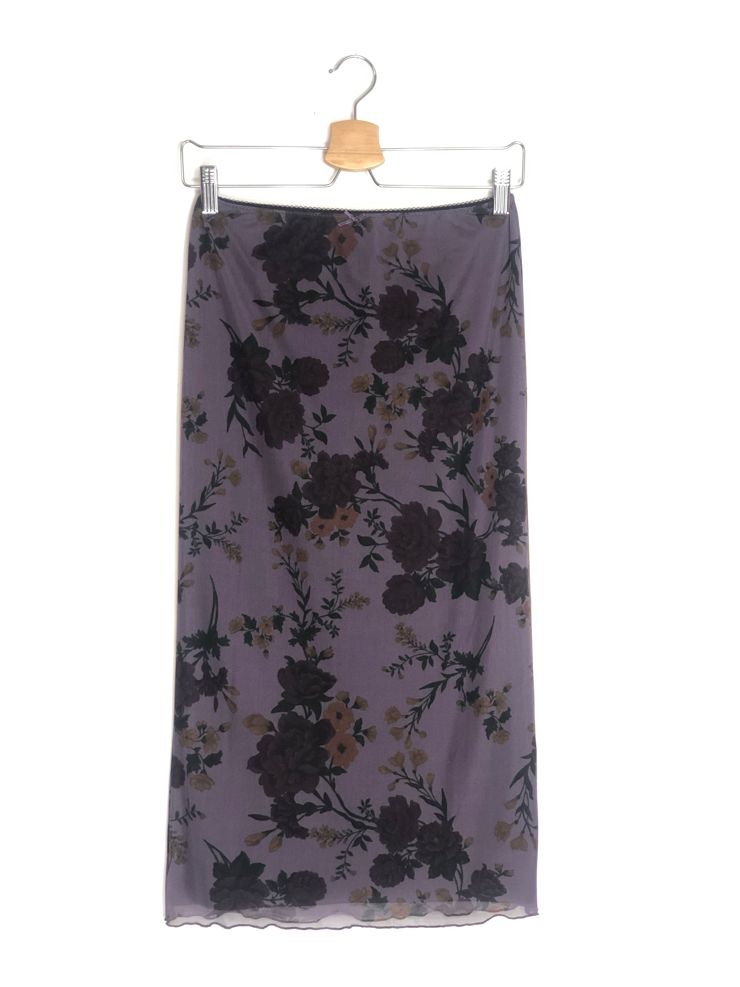 Aubergine NAELLA Printed Mesh Midi Tube Skirt / ROUJE - Size 34