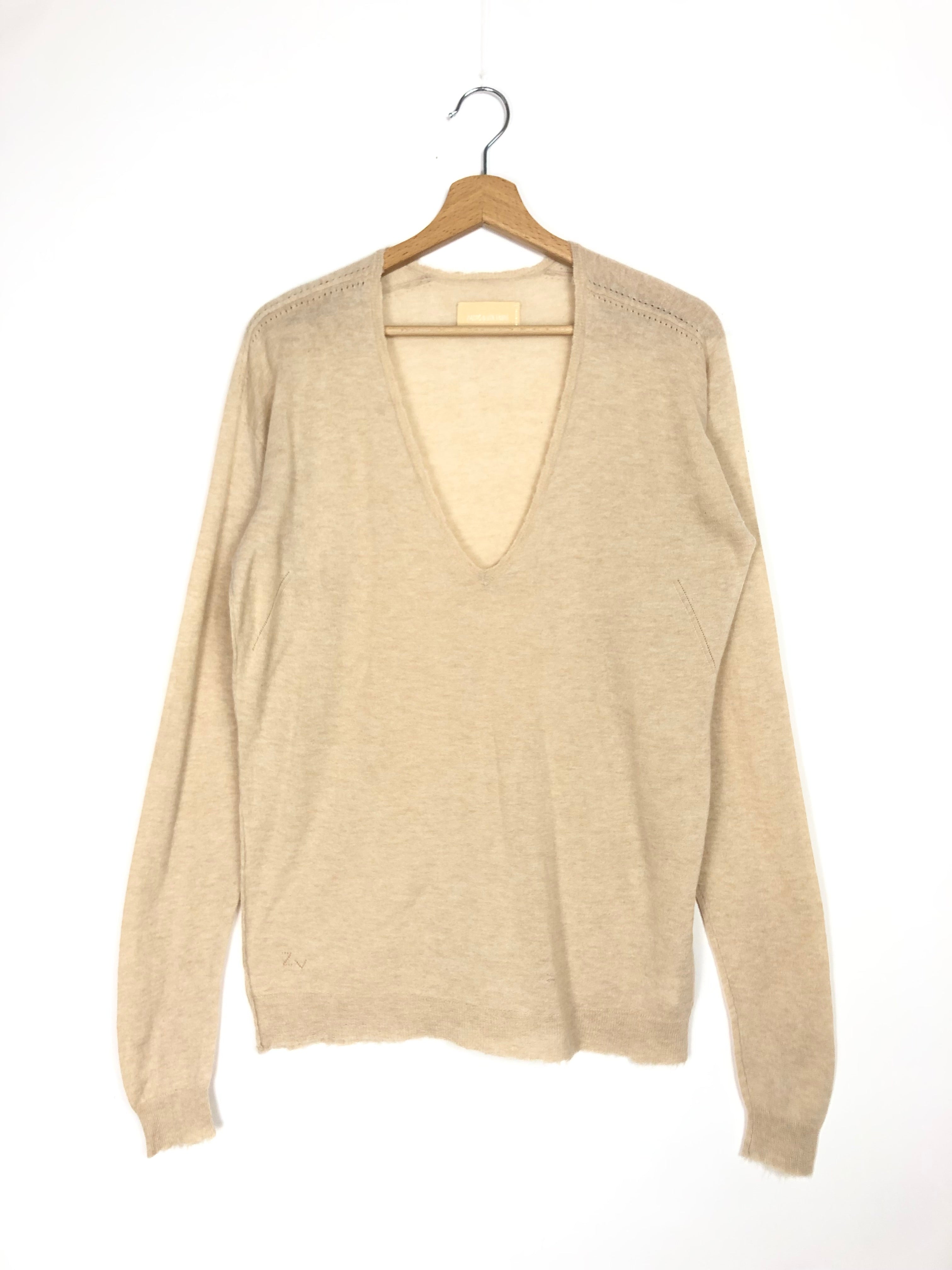 Beige APPLE Cashmere V-neck Jumper / ZADIG & VOLTAIRE - Size L