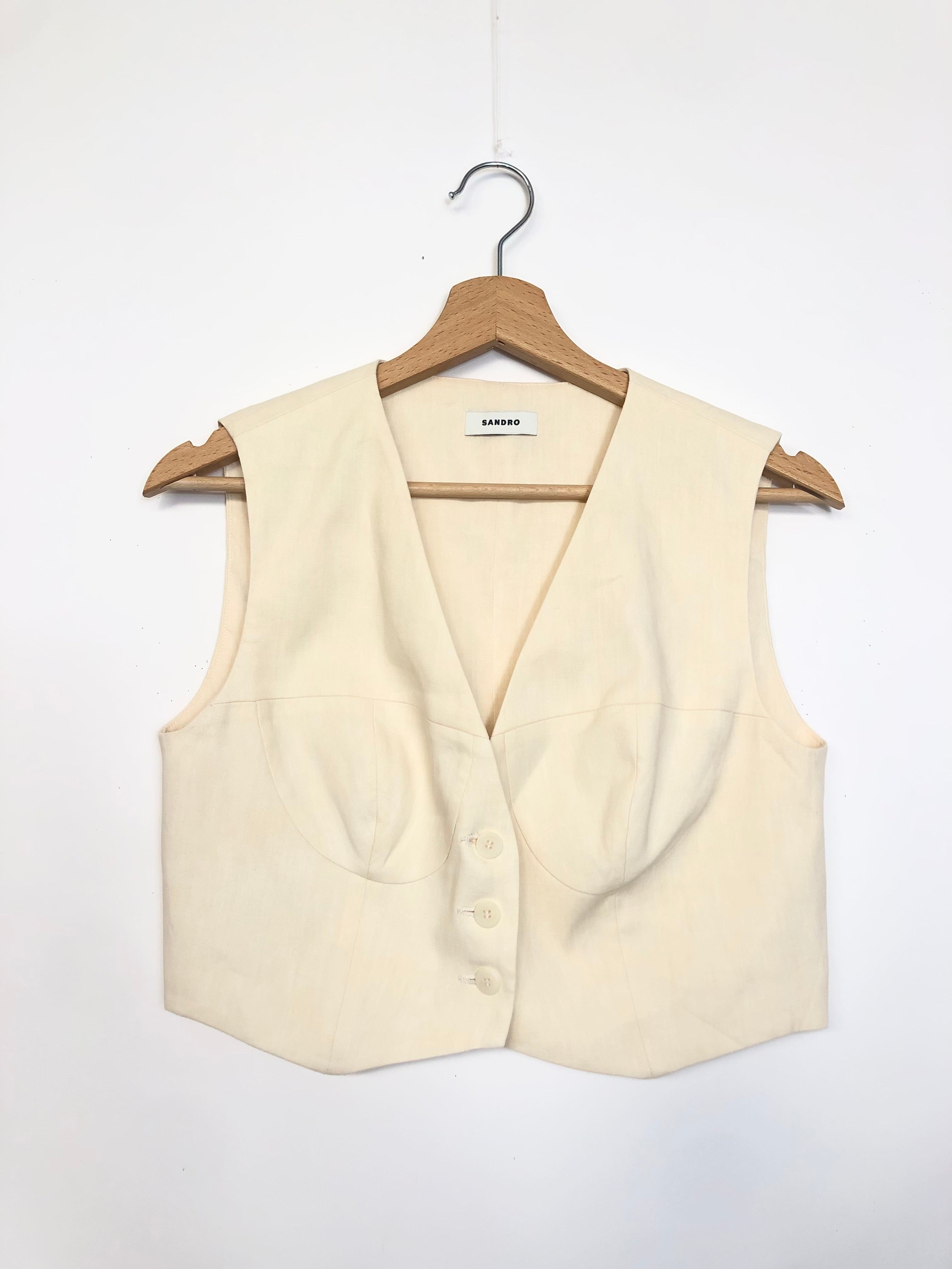Beige Cropped Linen-blend Vest / SANDRO - Size 1