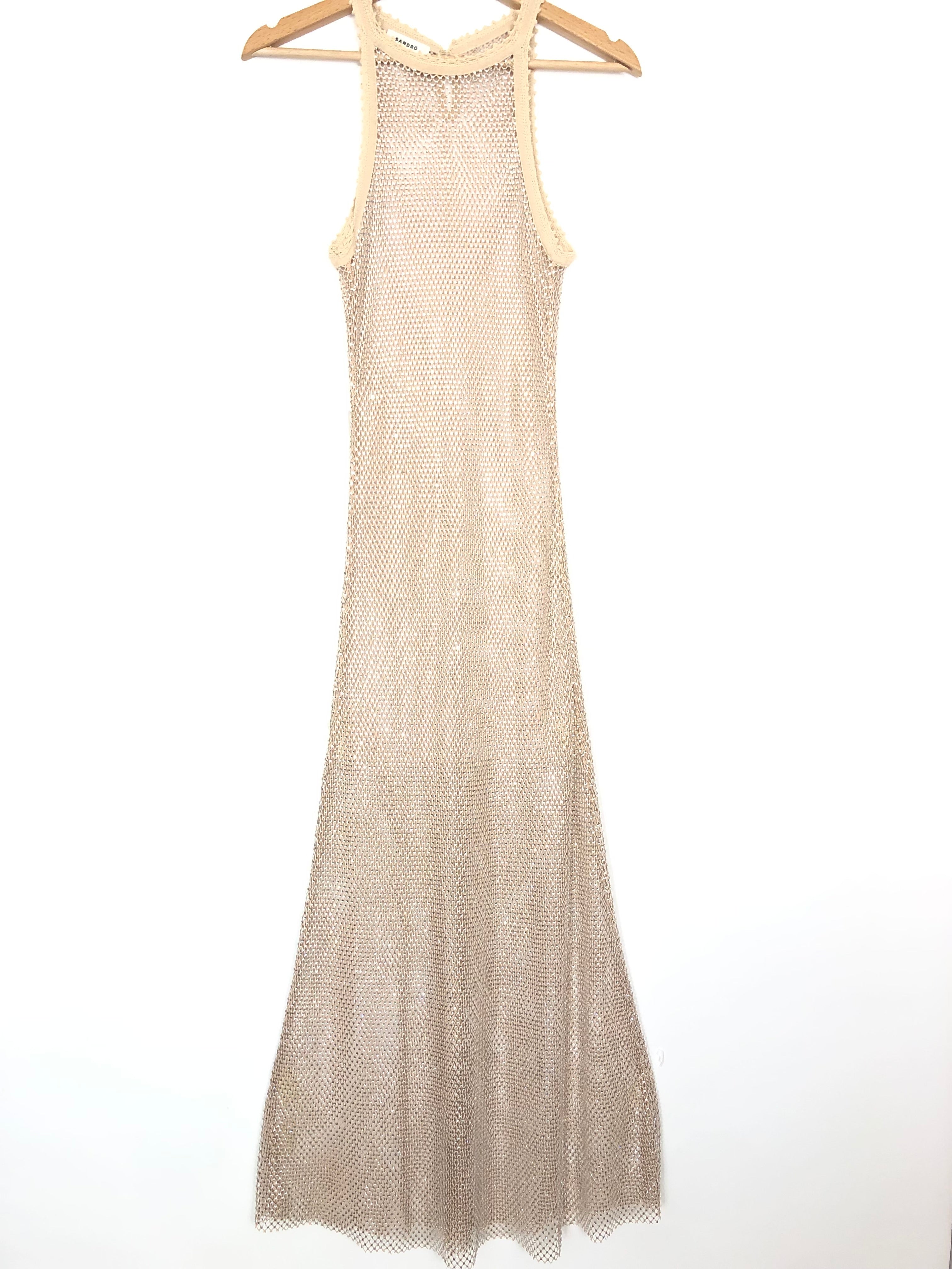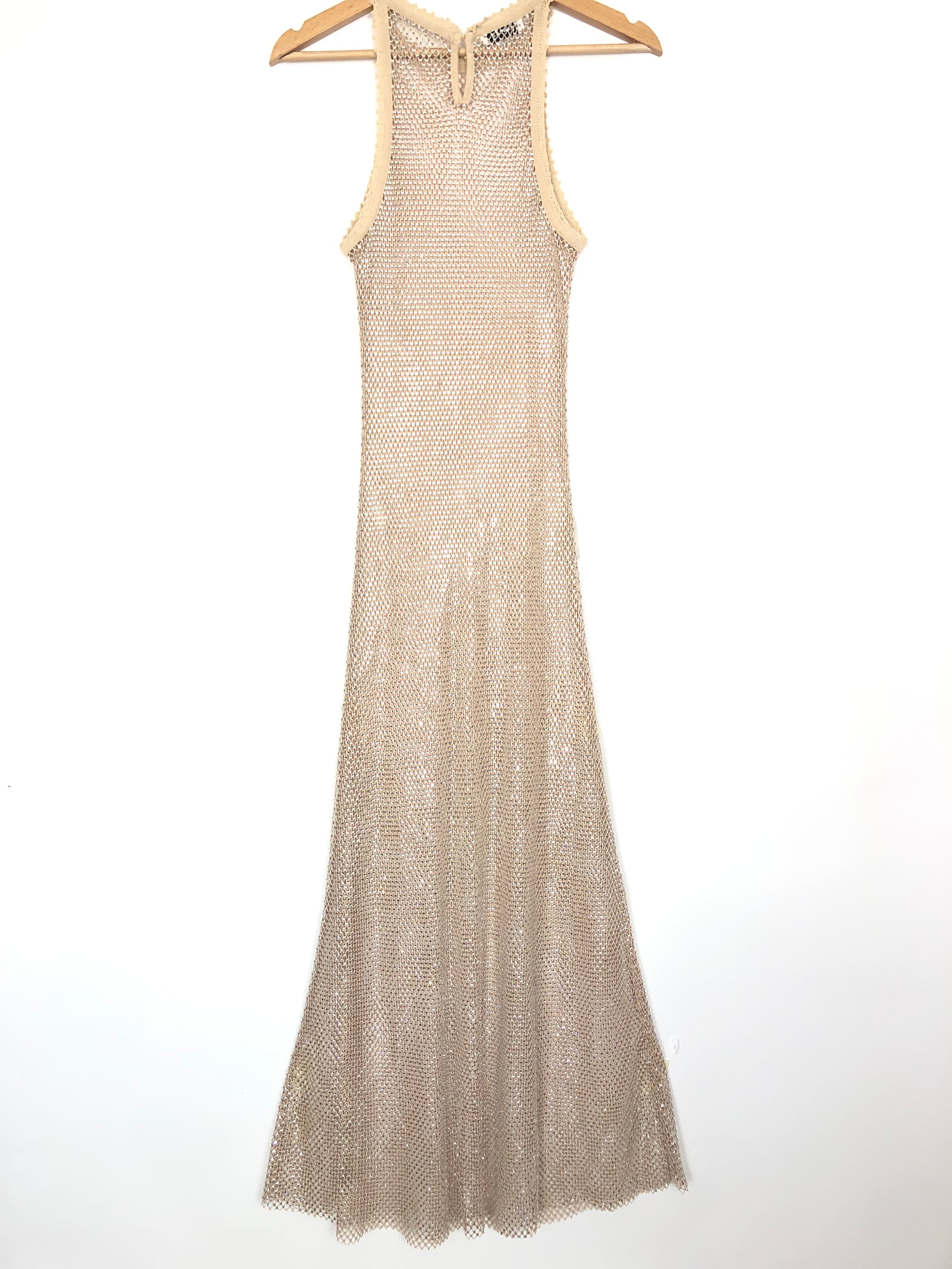 Beige Crystal Embellished HOLLYWOOD Mesh Midi Dress / SANDRO