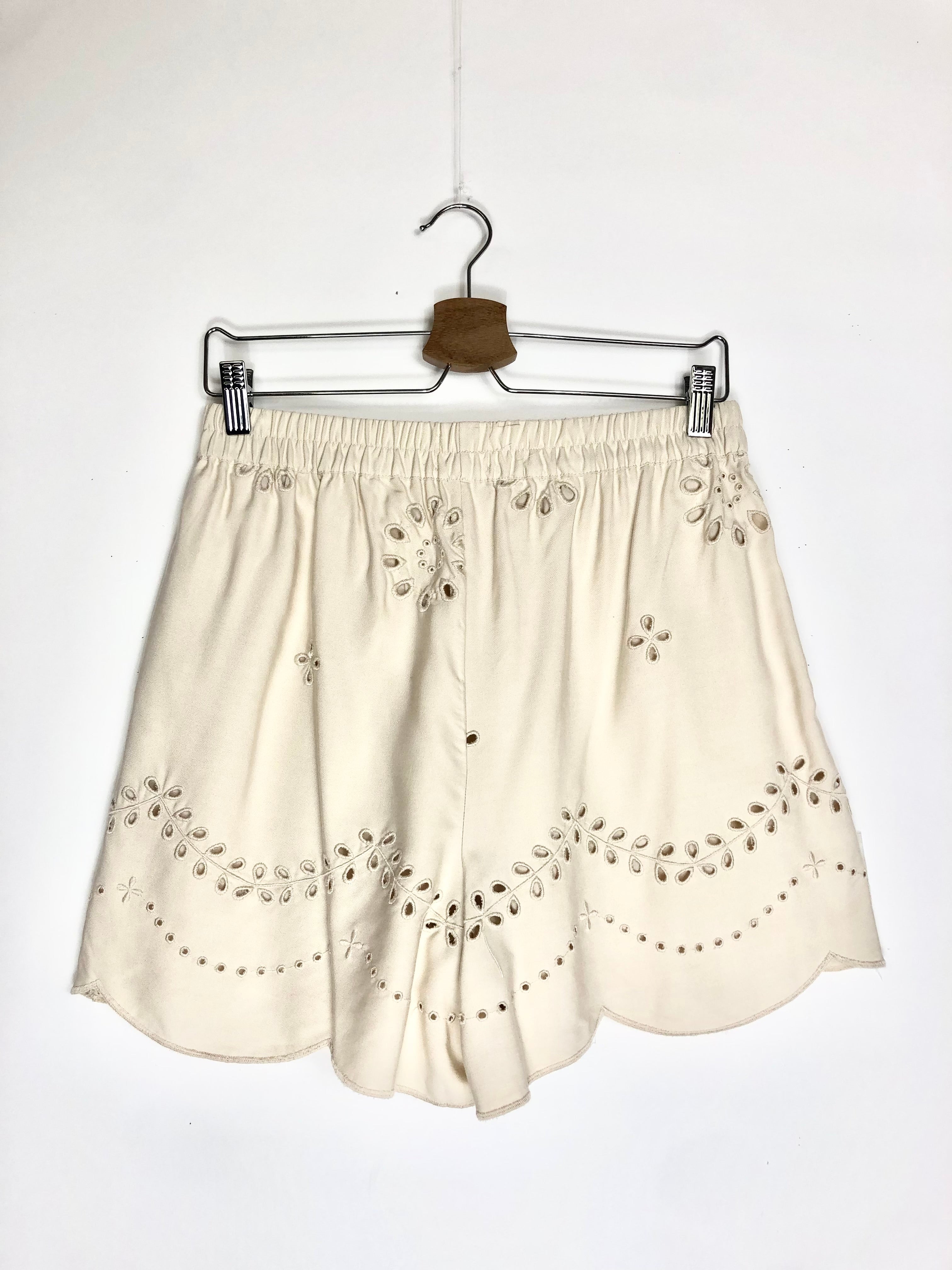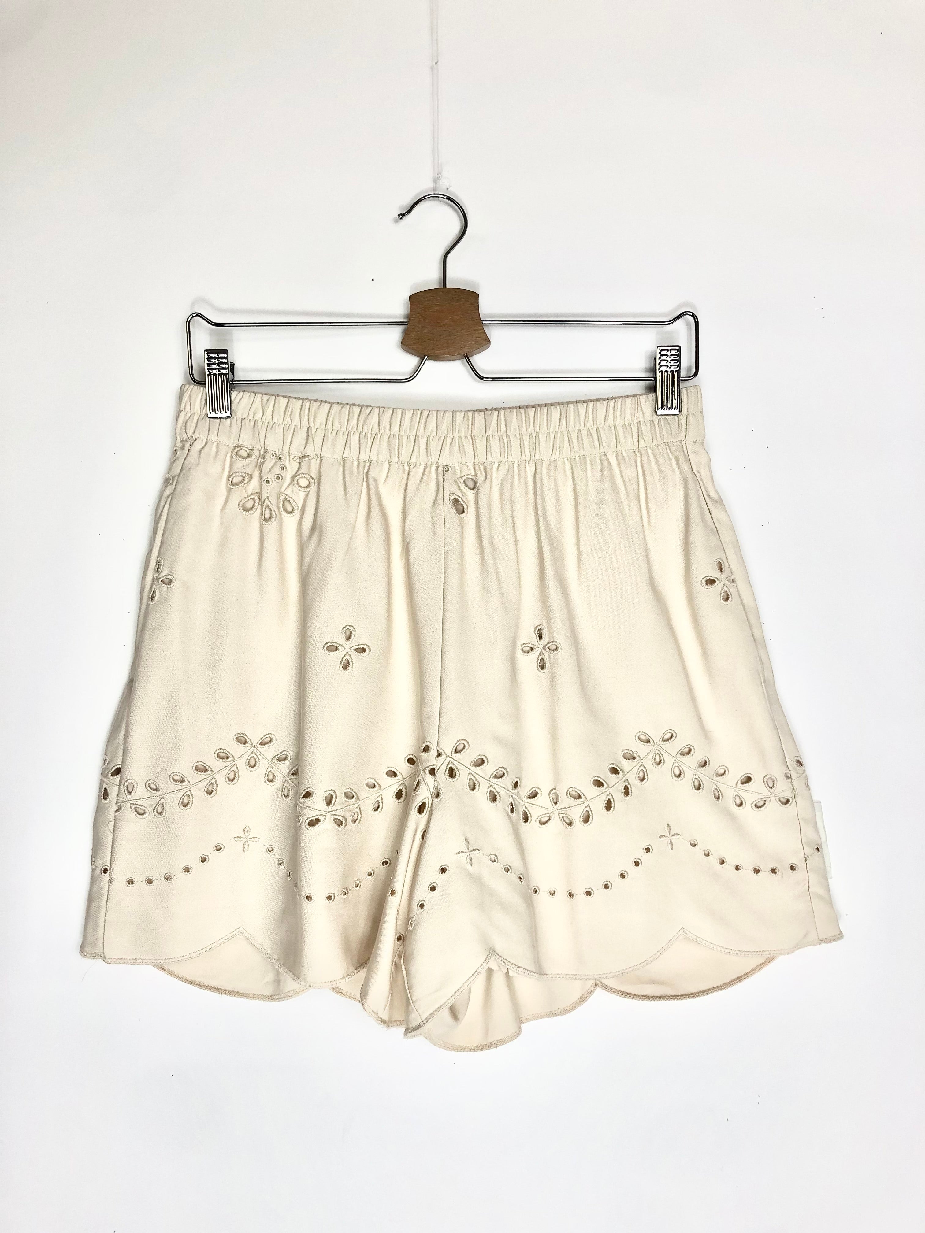 Beige English Embroidered Shorts / OBJECT - Size 38