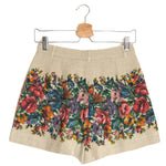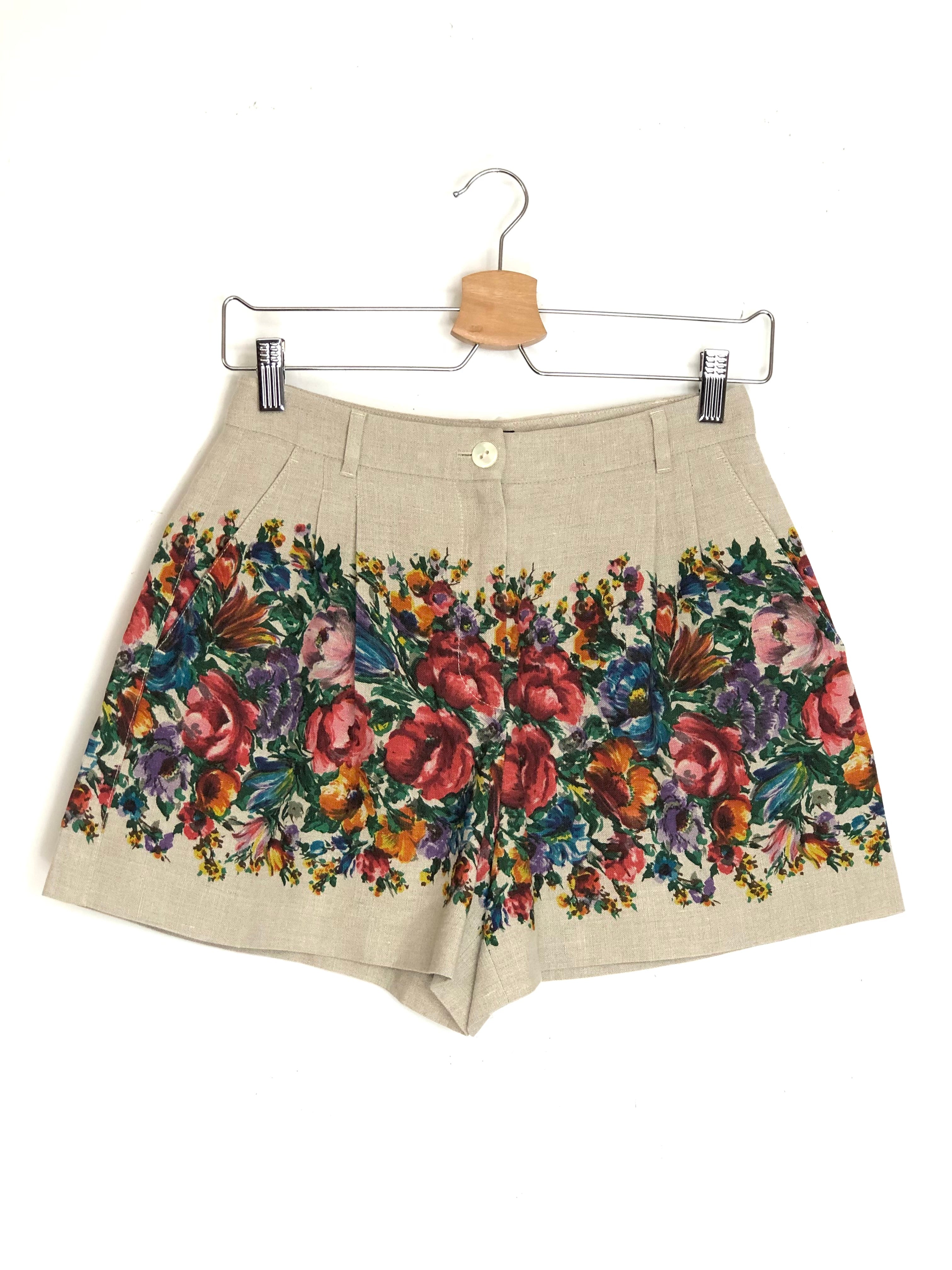 Beige Floral Print Linen Mini Shorts / DOLCE & GABBANA - Size 36