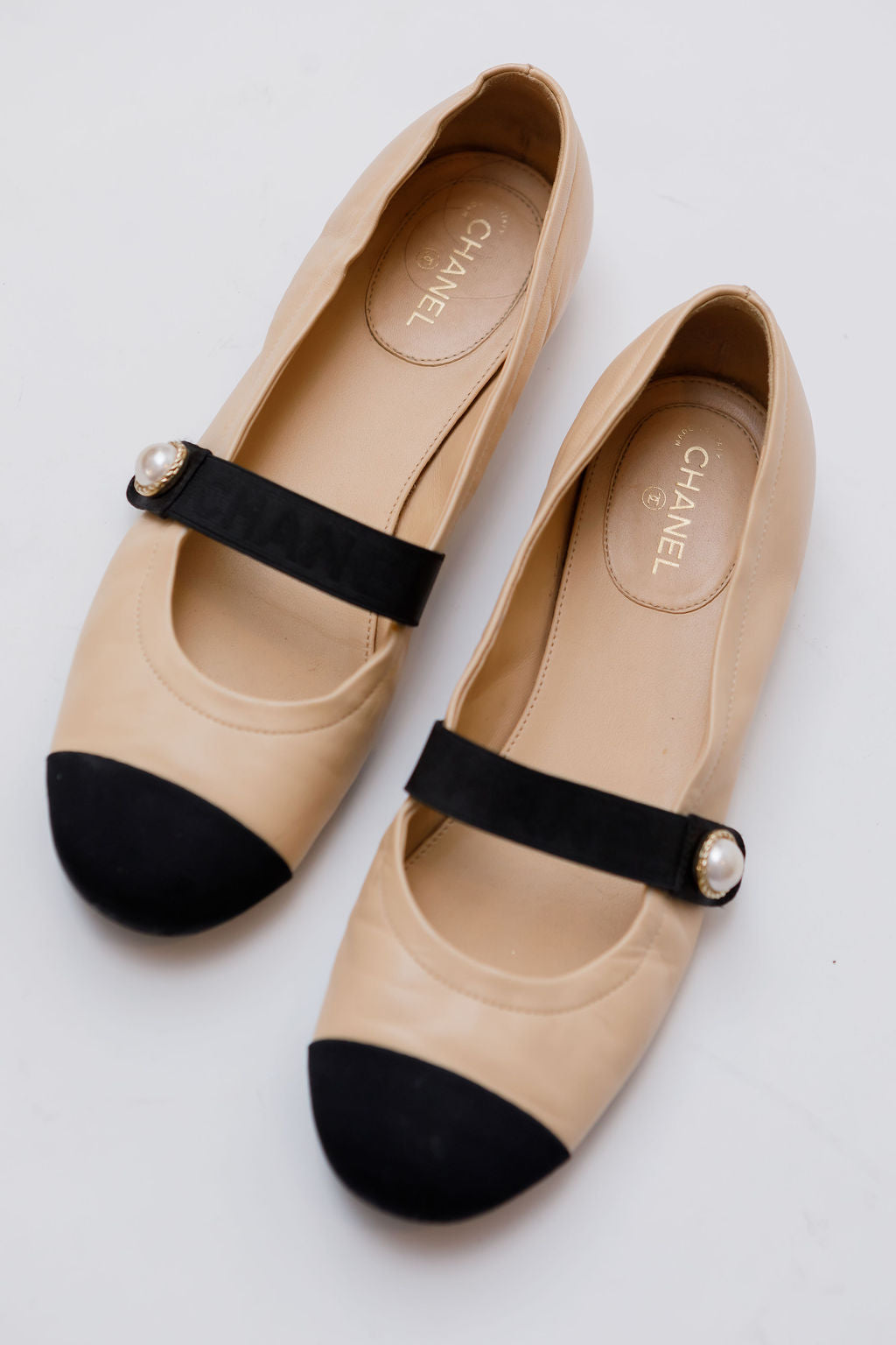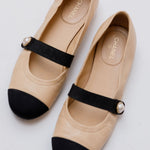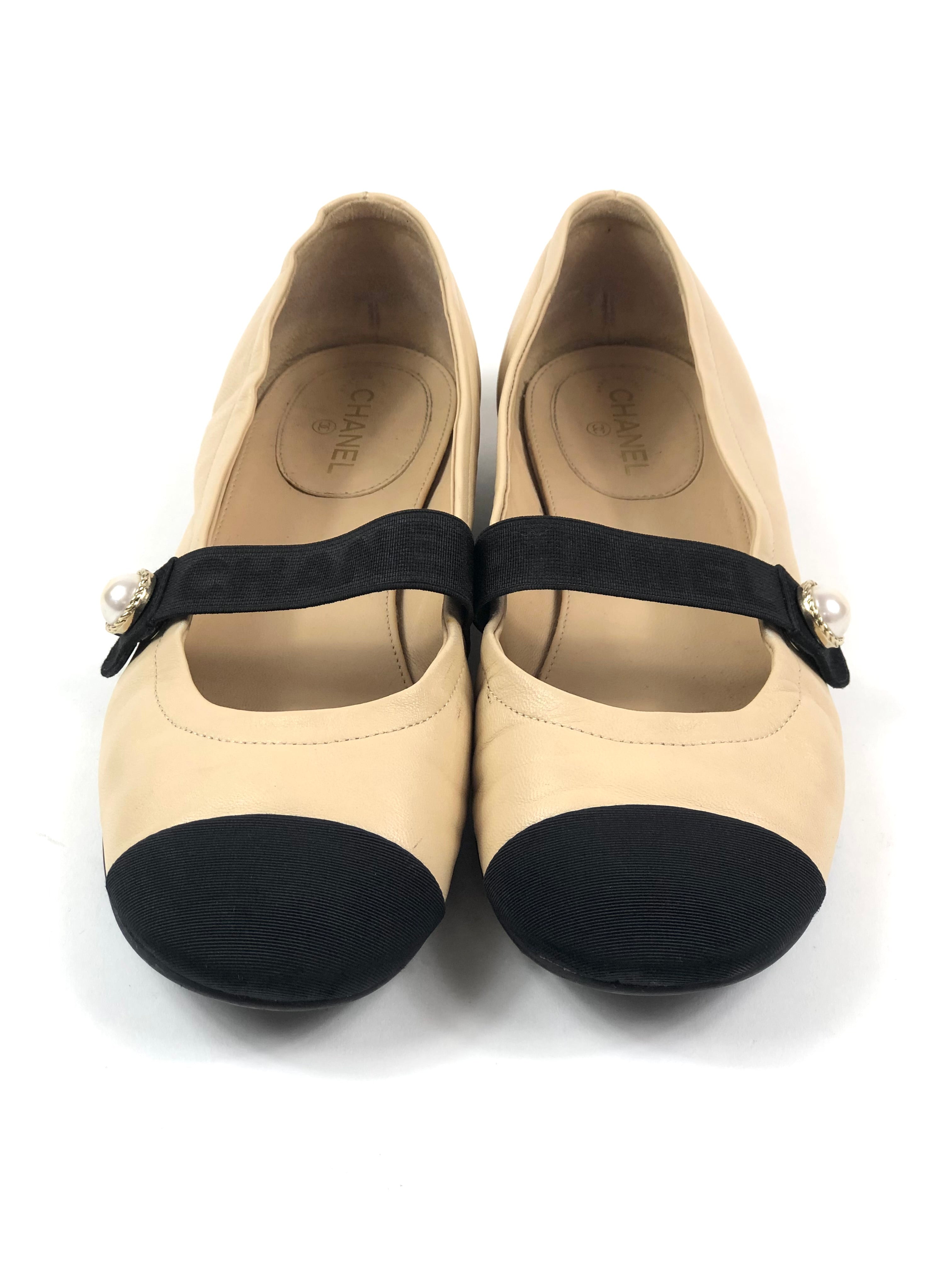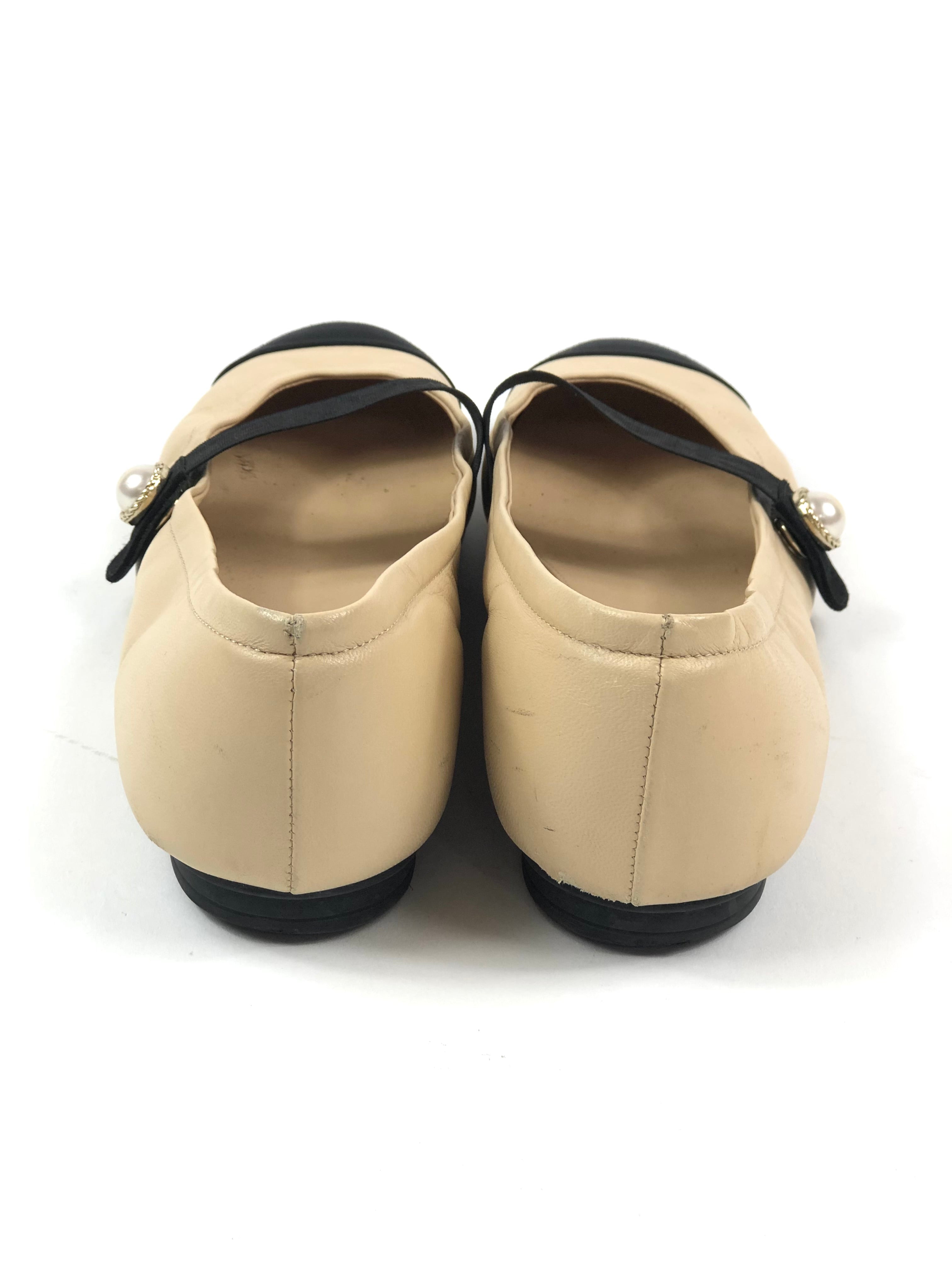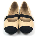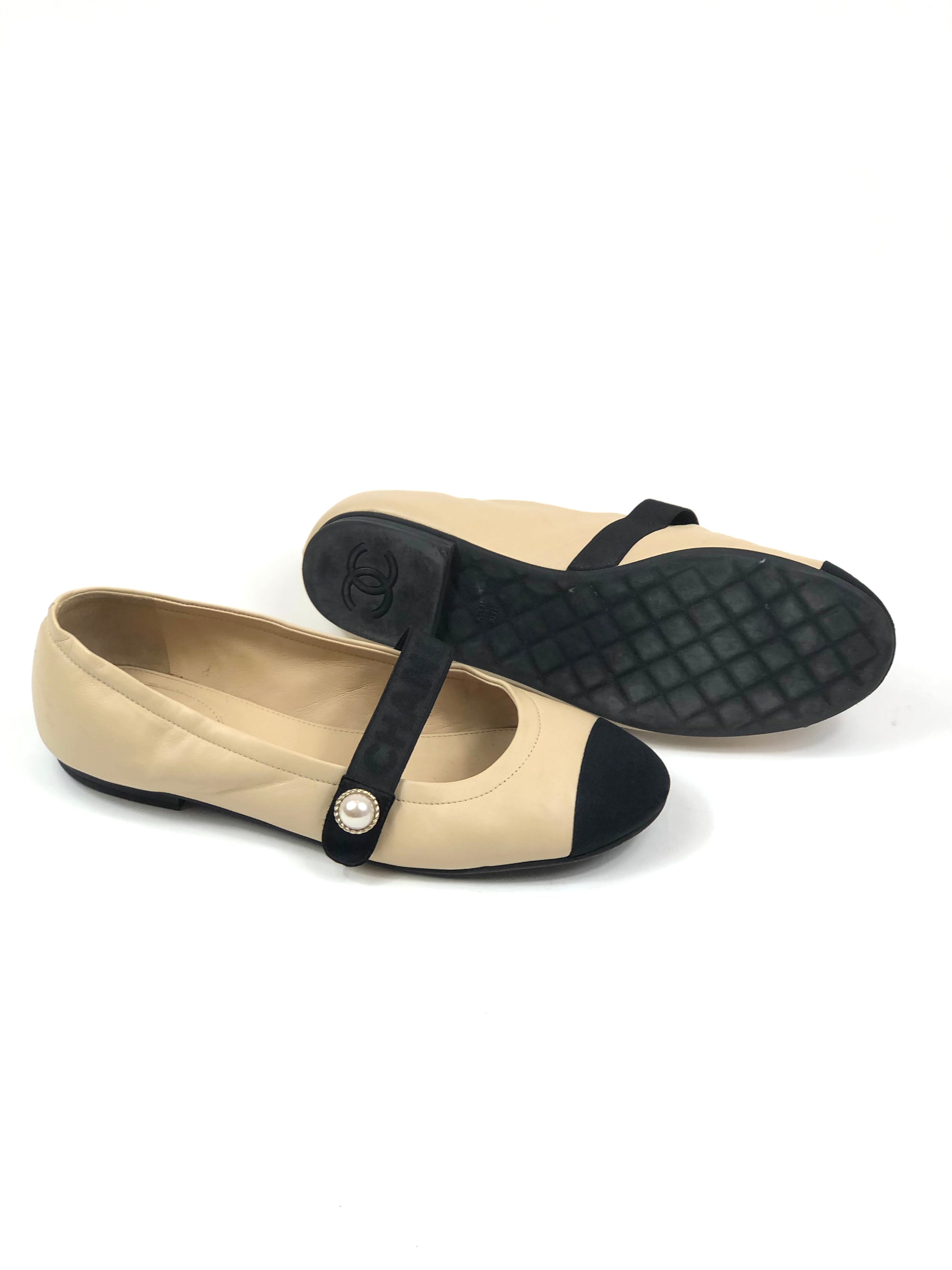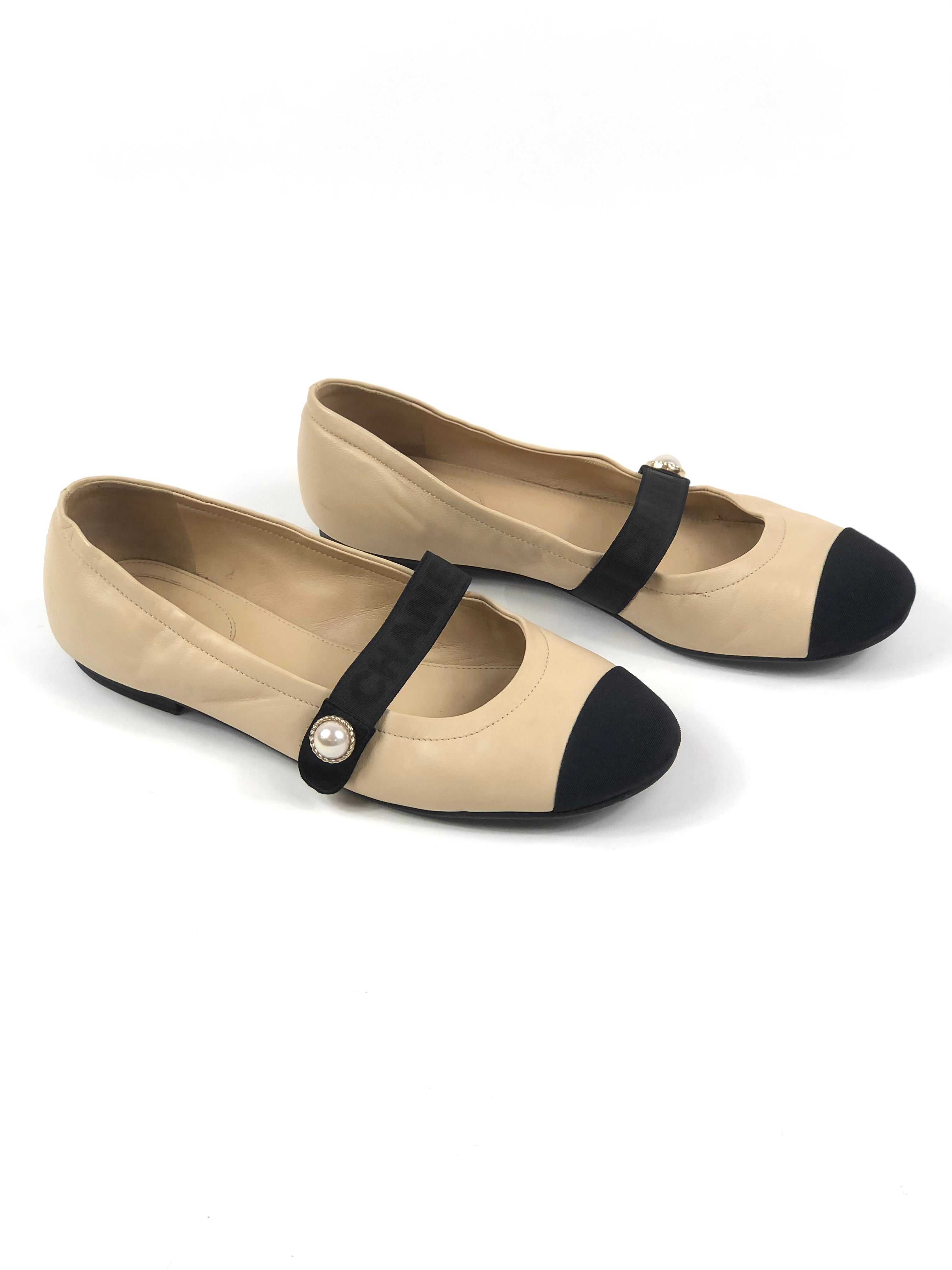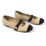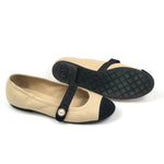 Beige Mary Jane Lambskin Leather Cap Toe Ballet Flats / CHANEL - Size 38.5