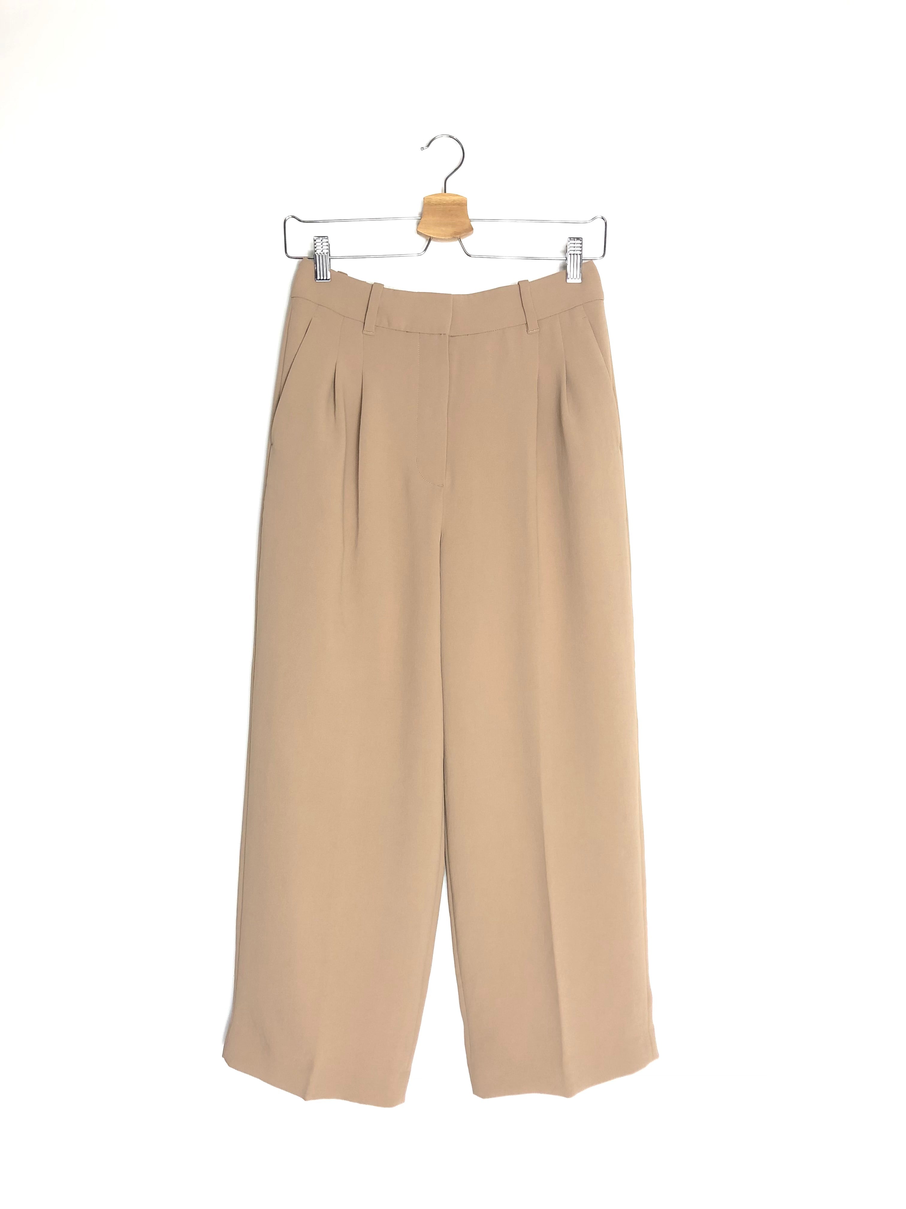 Beige THE EFFORTLESS Crepe High Rise Wide Leg Pants / WILFRED - Size US 4