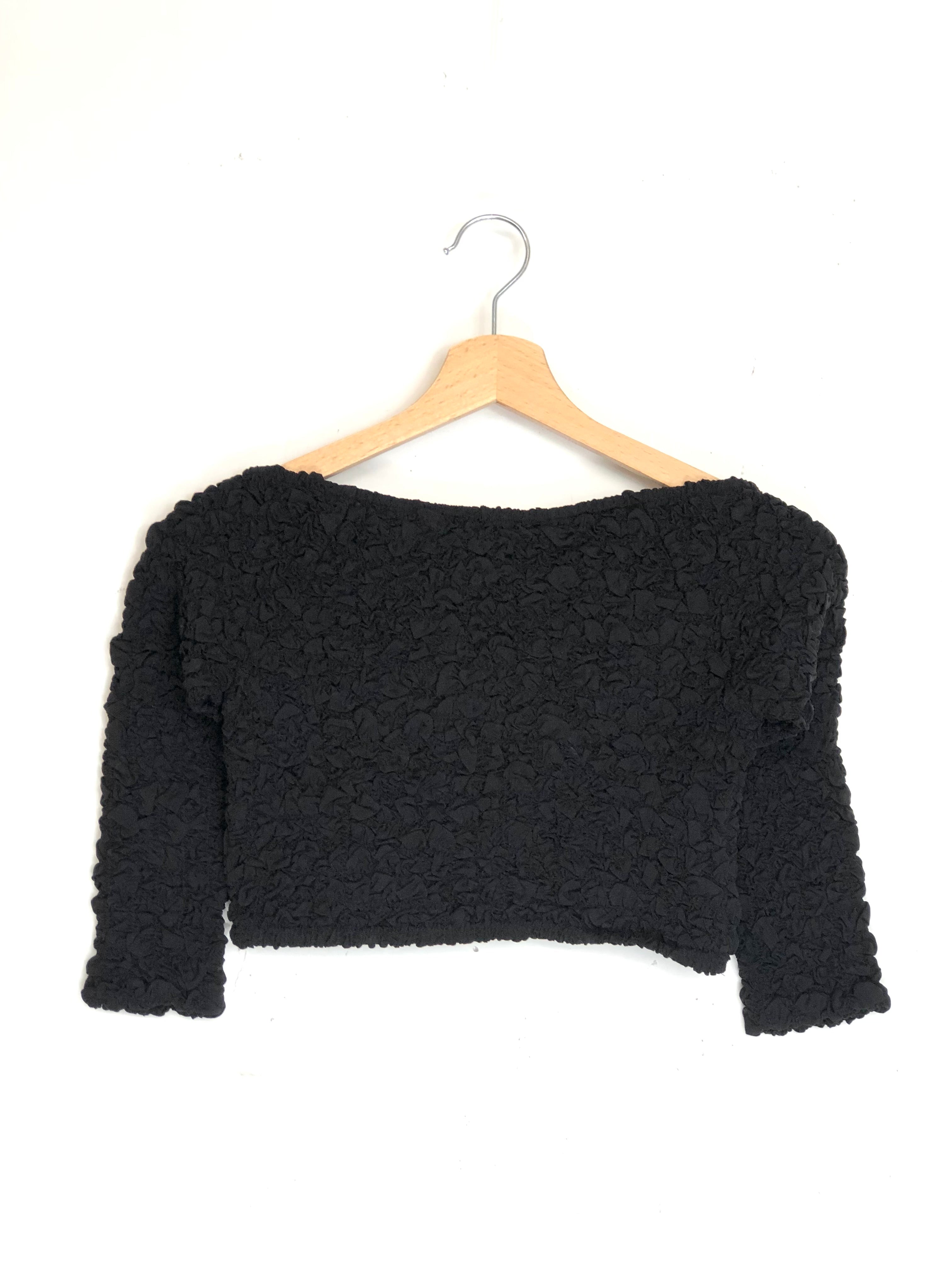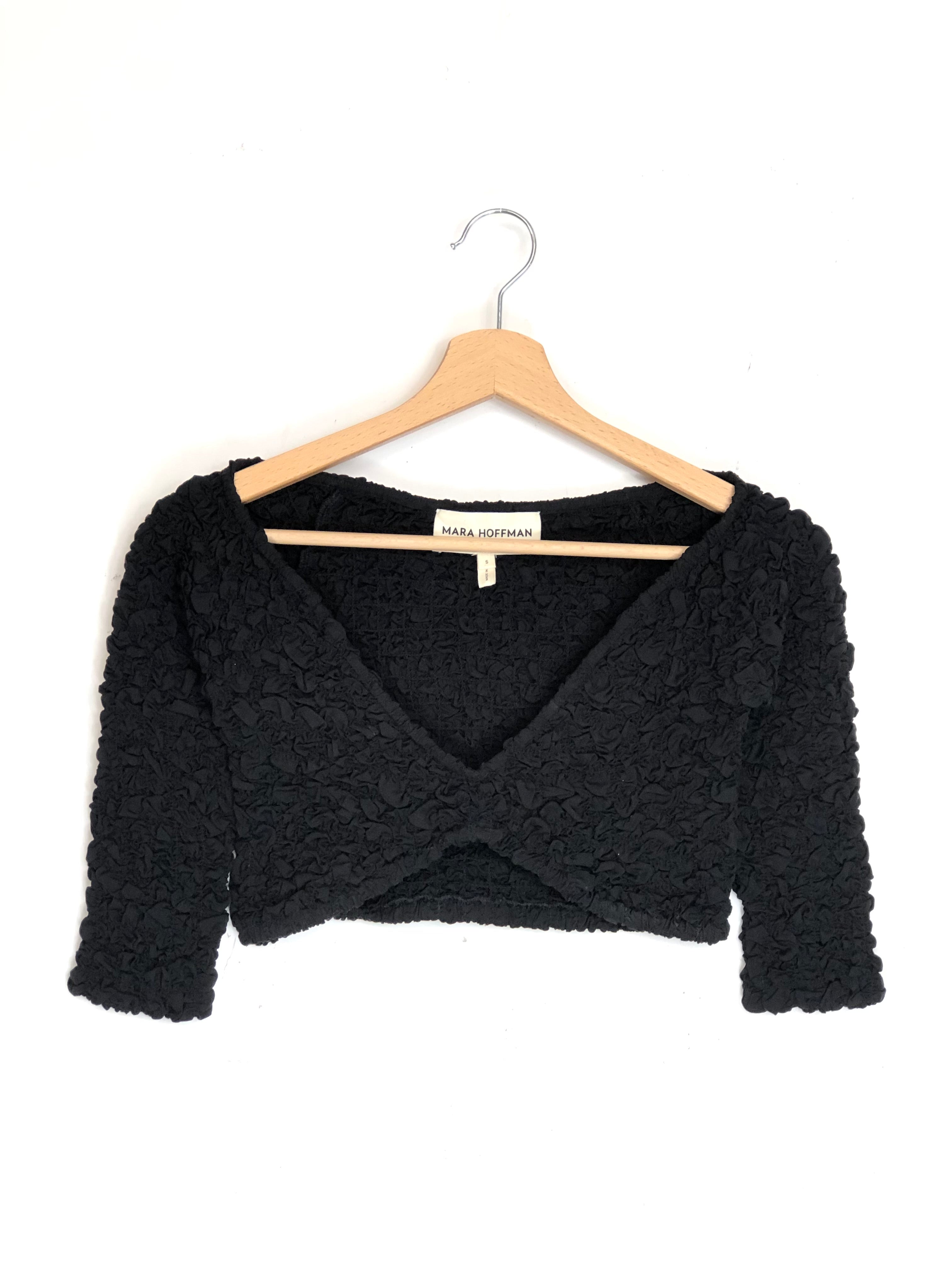 Black AJA Cropped Popcorn Tencel Lyocell Long Sleeve Top / MARA HOFFMANN - Size S