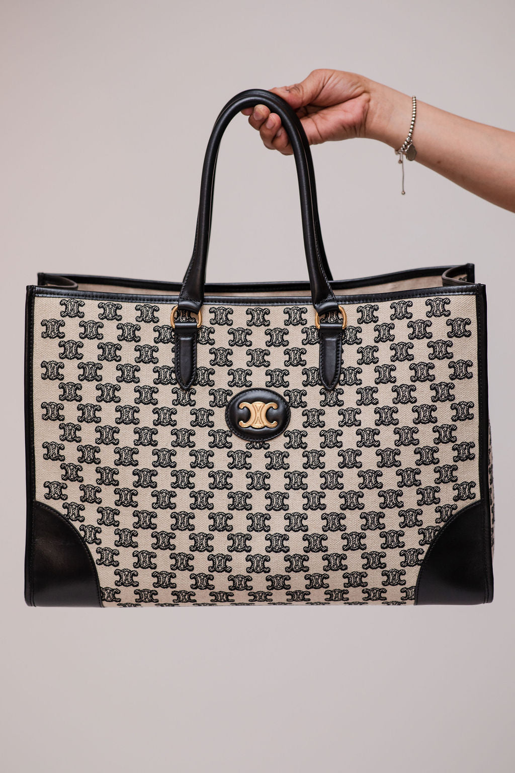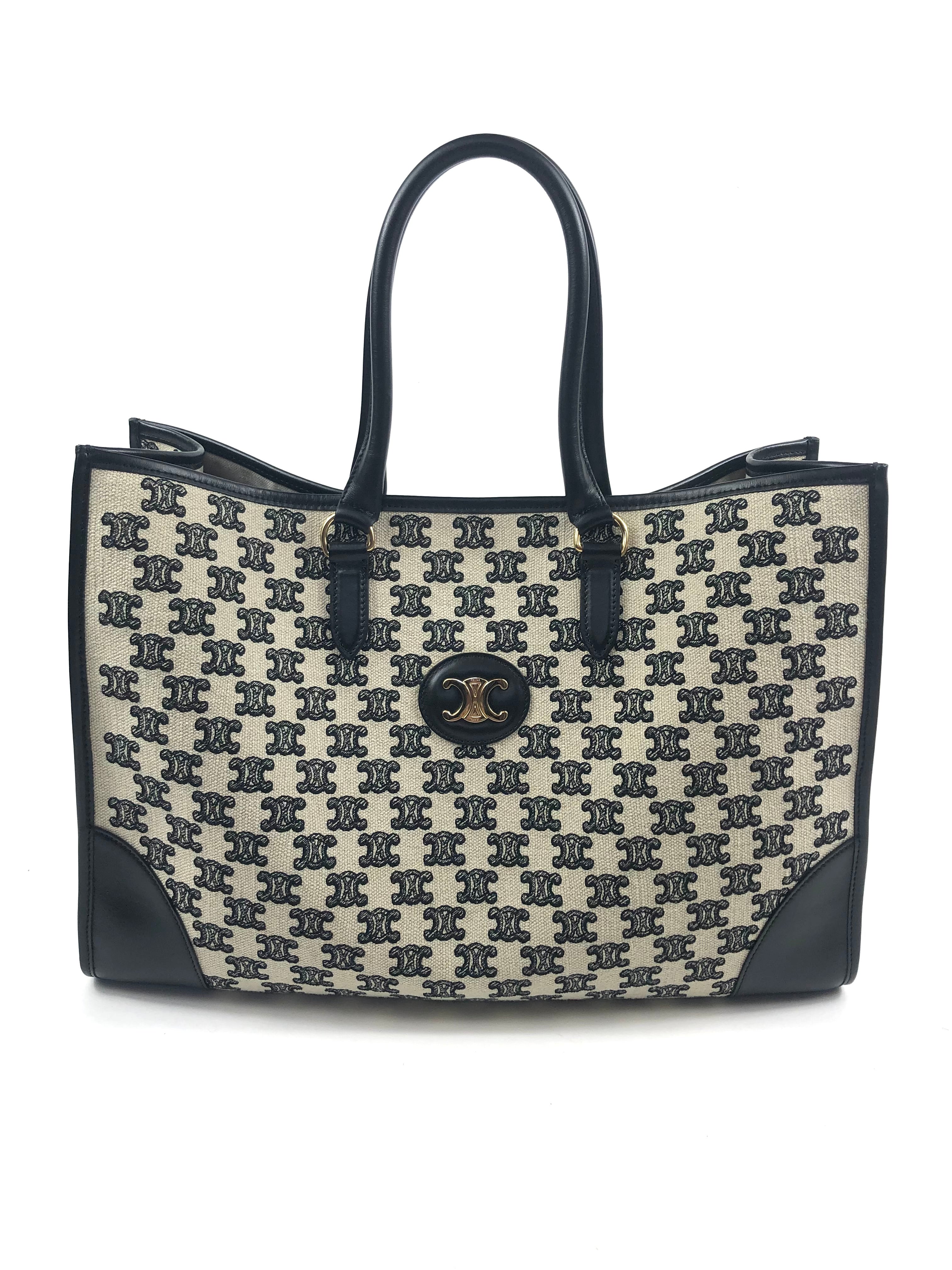 Black and White Monogram TRIOMPHE Horizontal Tote Bag / CELINE