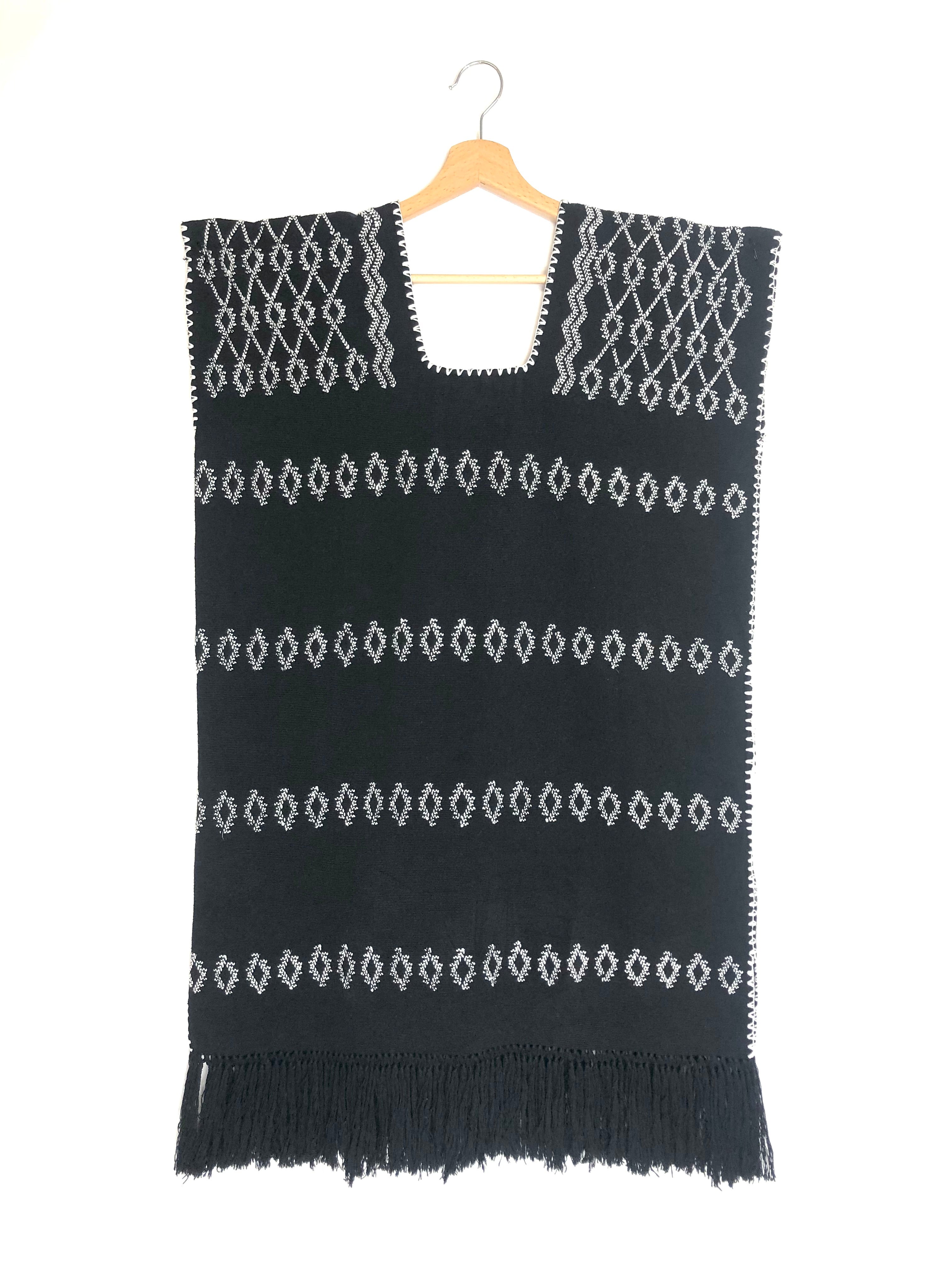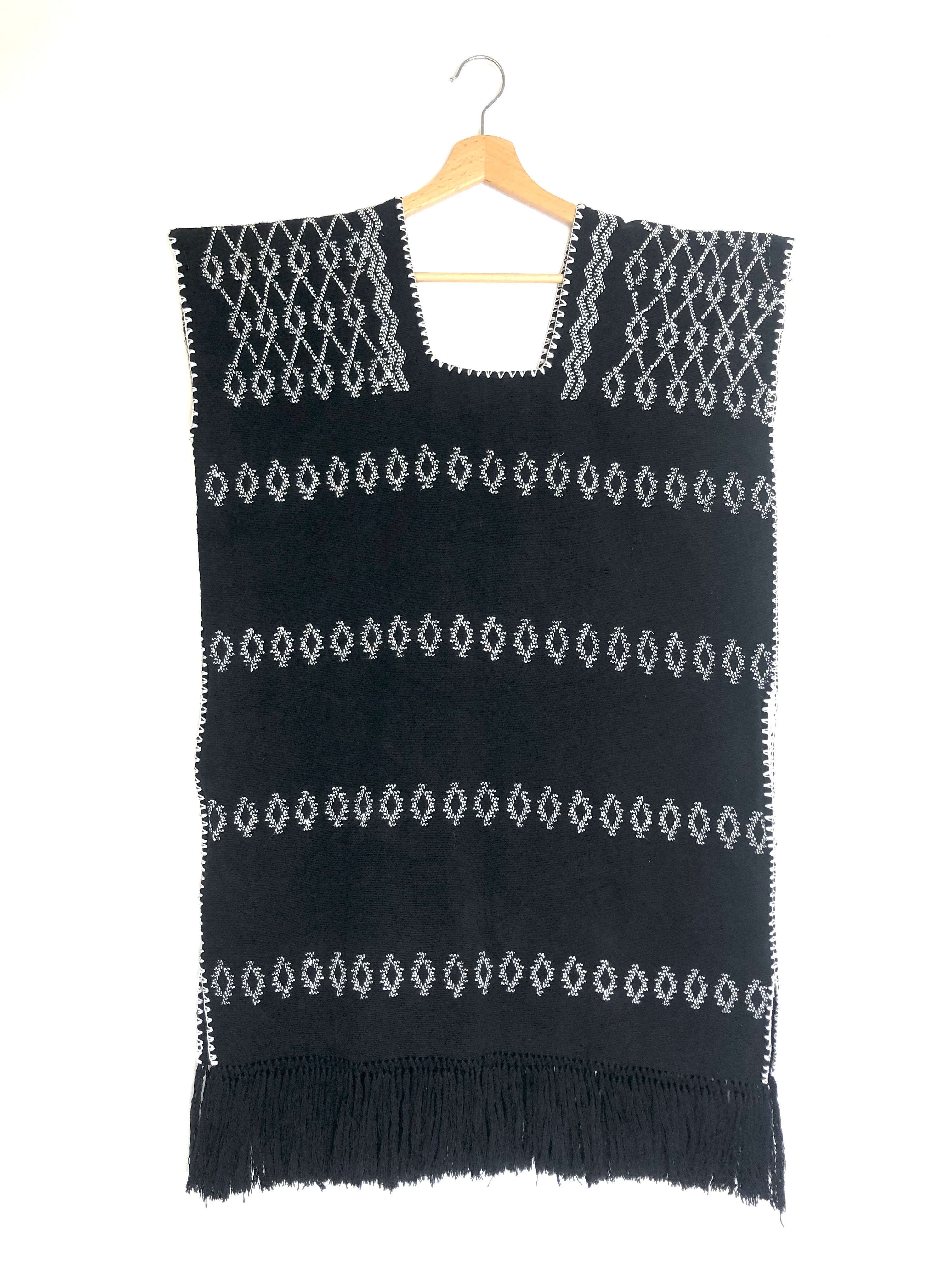 Black and White No. 81 Single Panel Fringed Supermini Kaftan / PIPPA HOLT - One Size