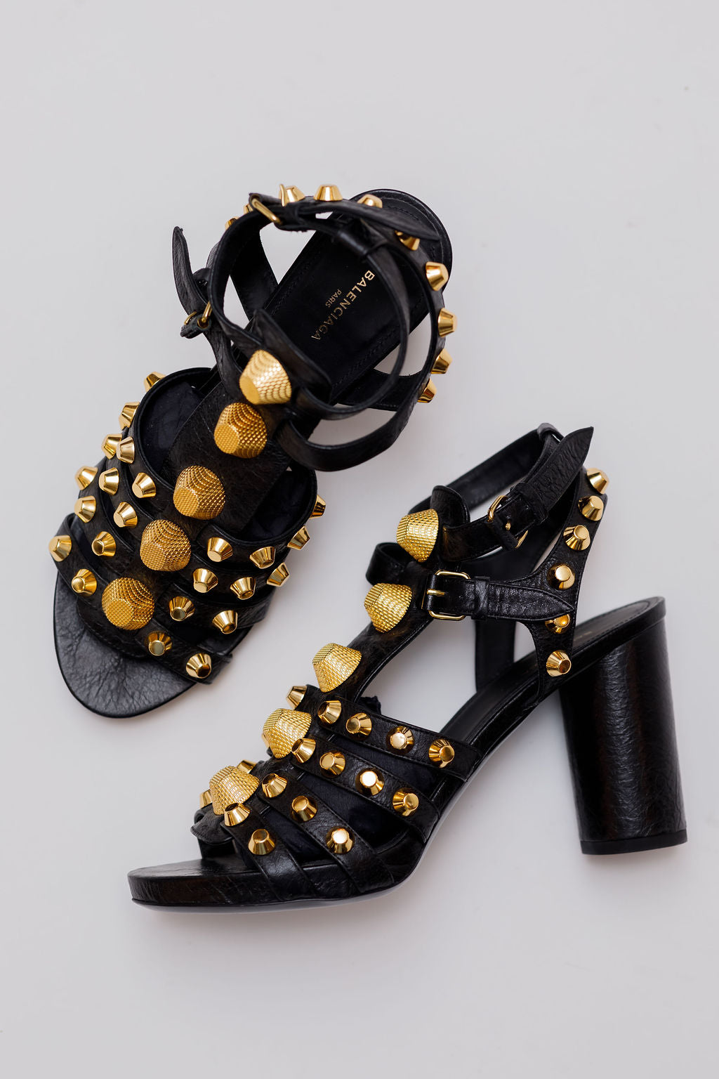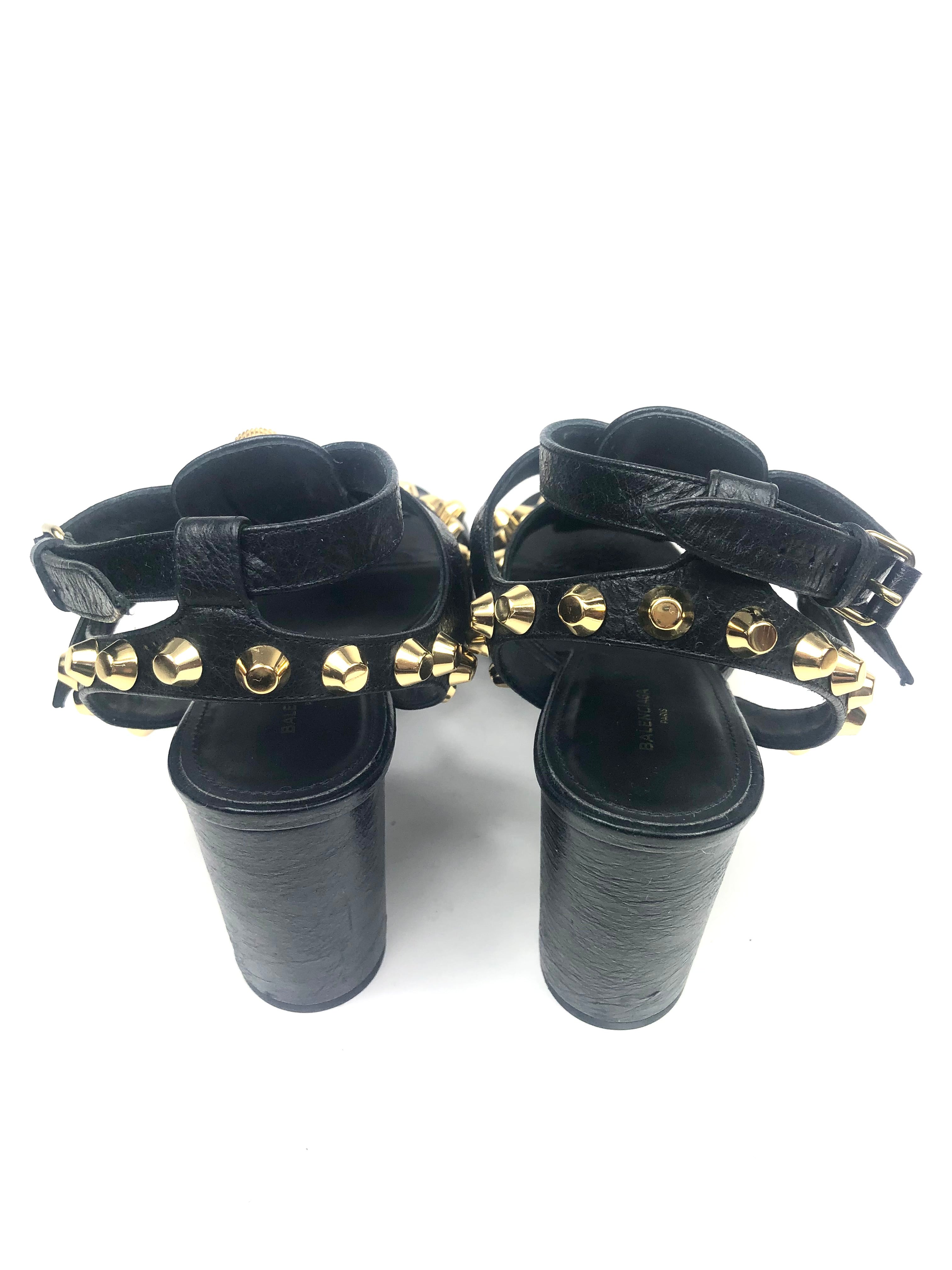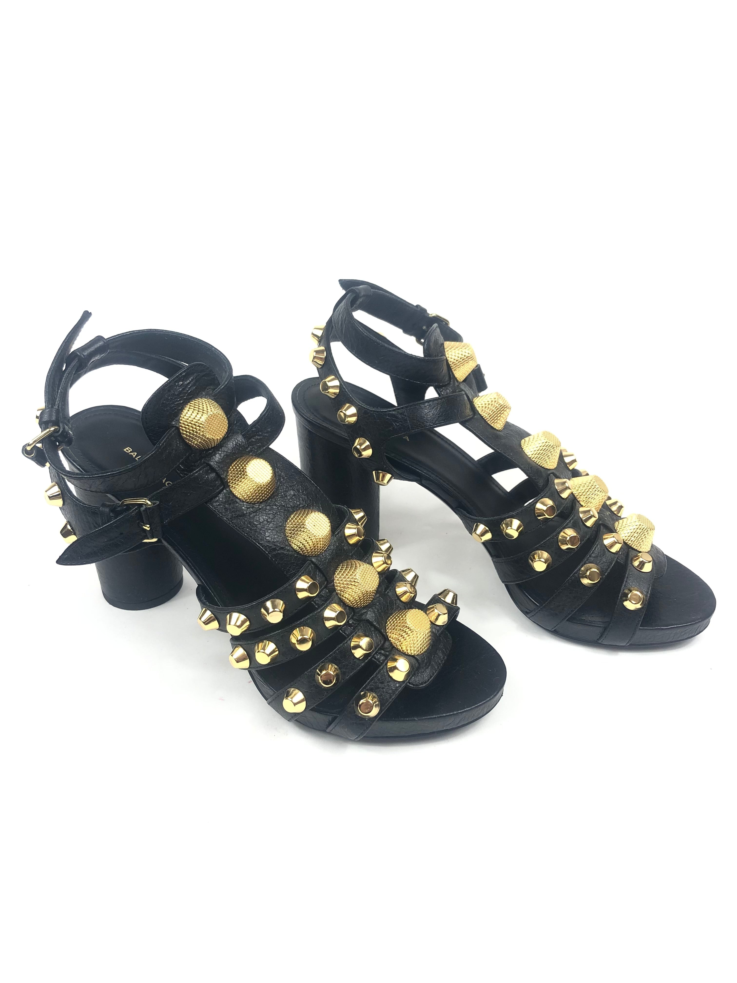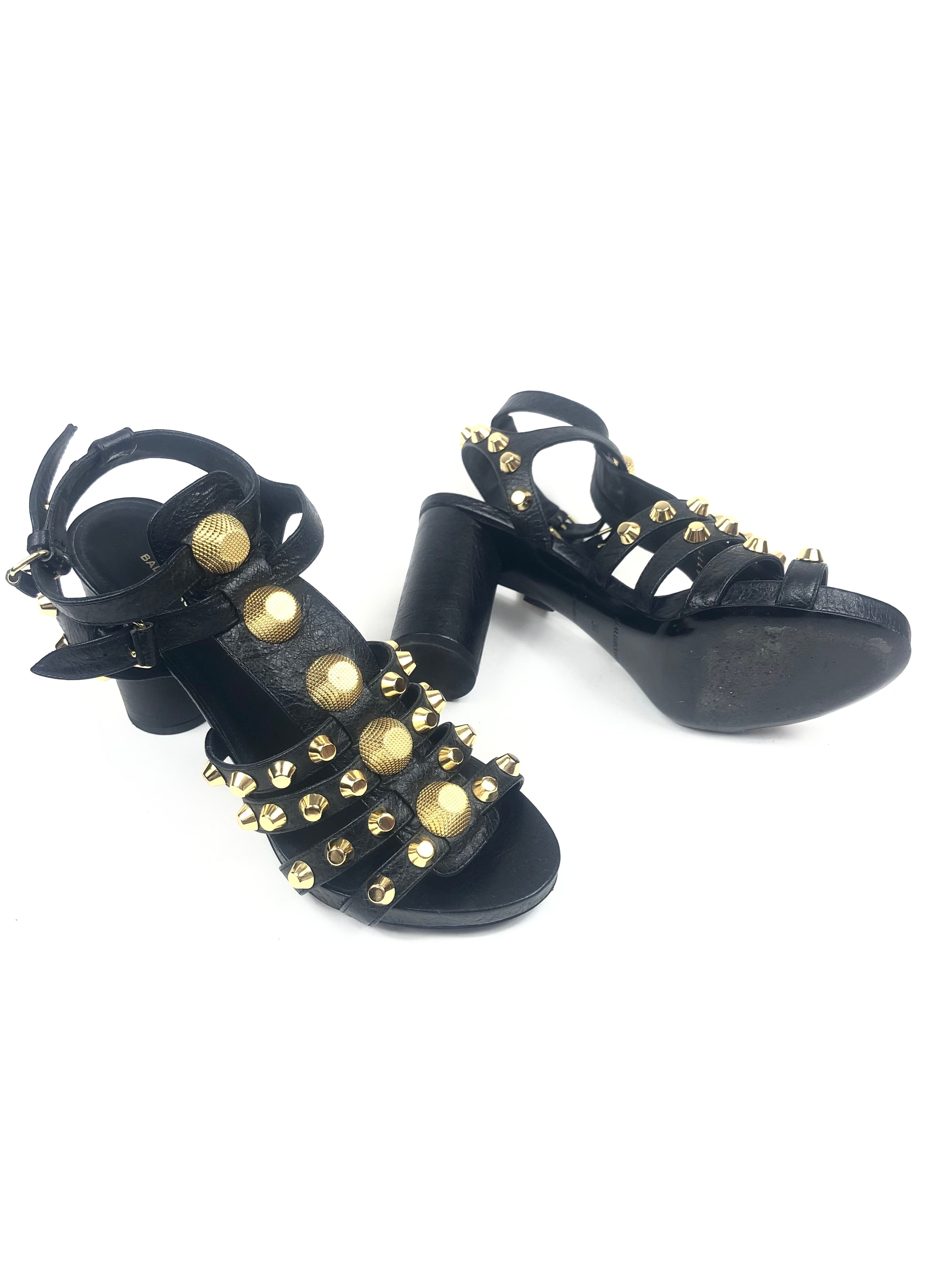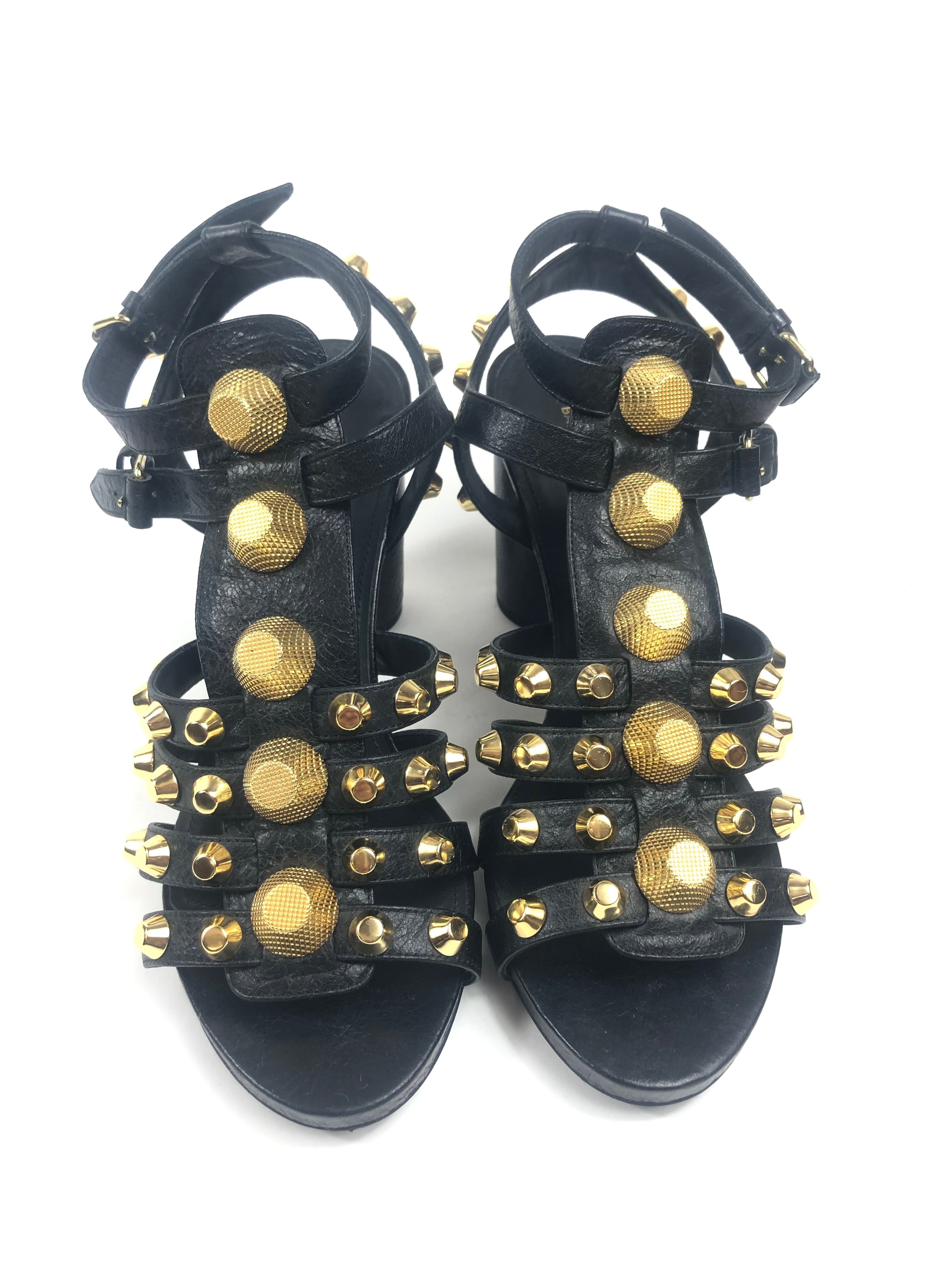 Black ARENA Leather Ankle Strap Gladiator Sandals / BALENCIAGA - Size 38