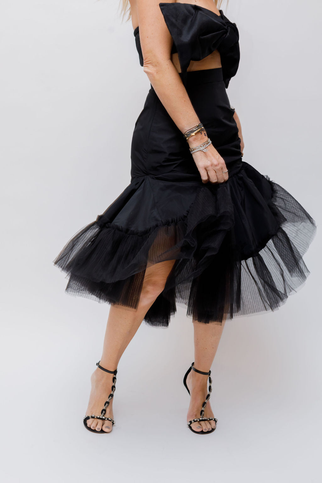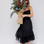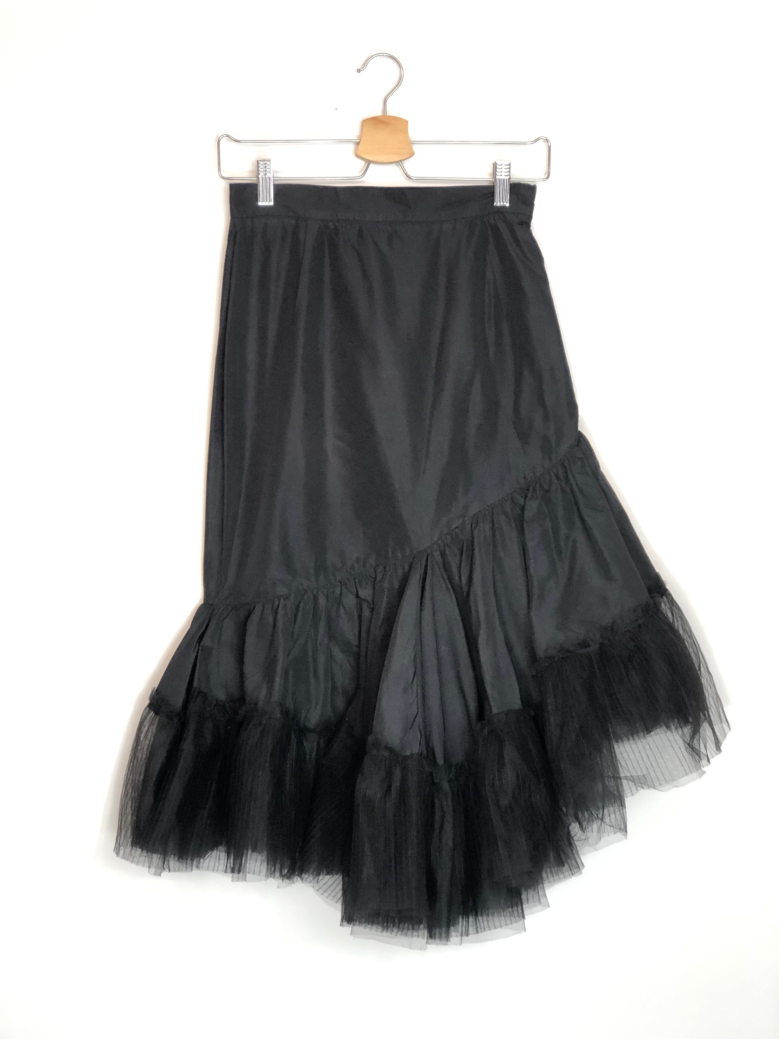 Black Asymmetric Ruffle Tulle Midi Skirt / SANDRA MANSOUR H&M - Size 36