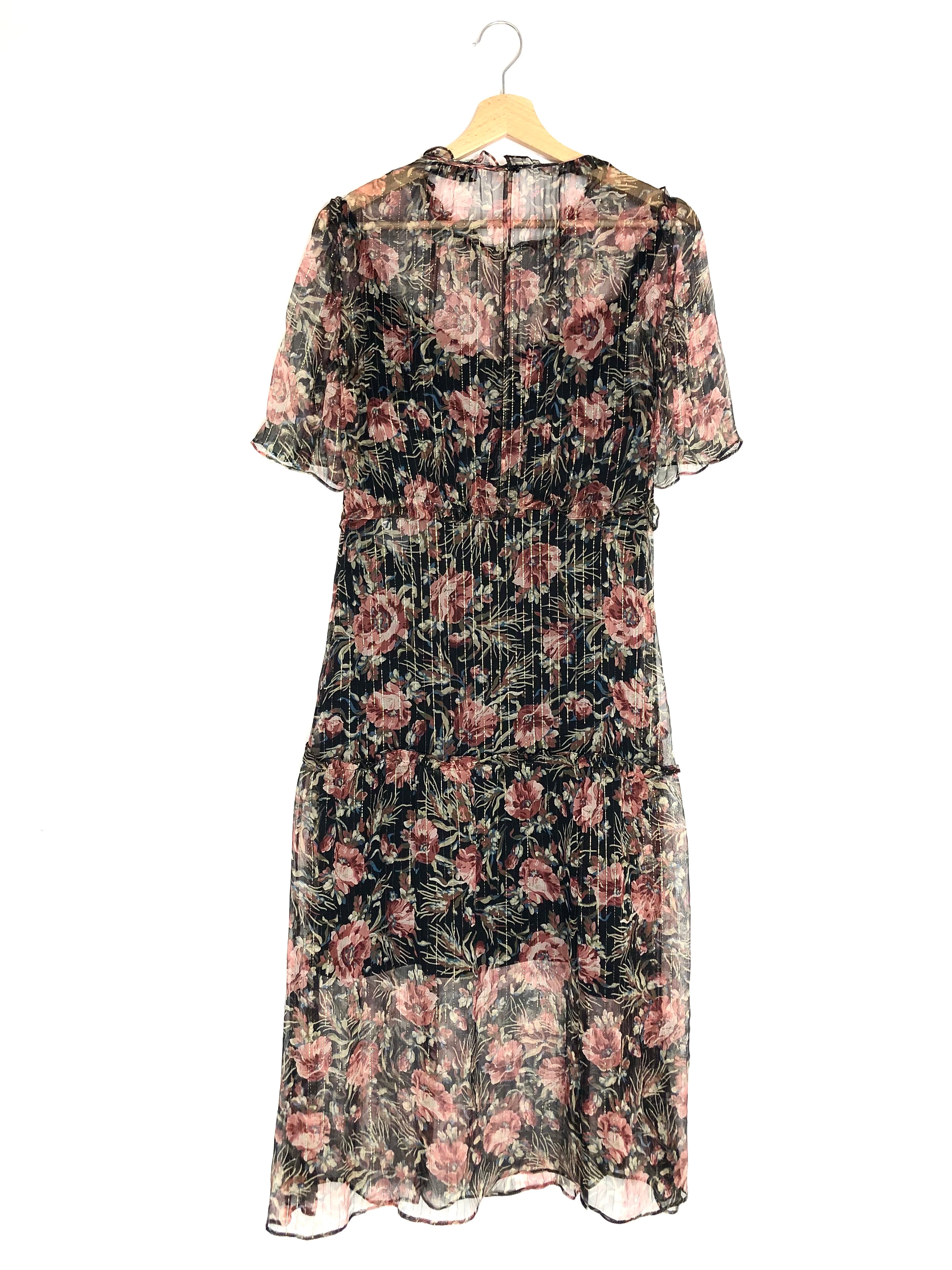 Black BIANCA Floral-print Midi Dress / SANDRO - Size 2