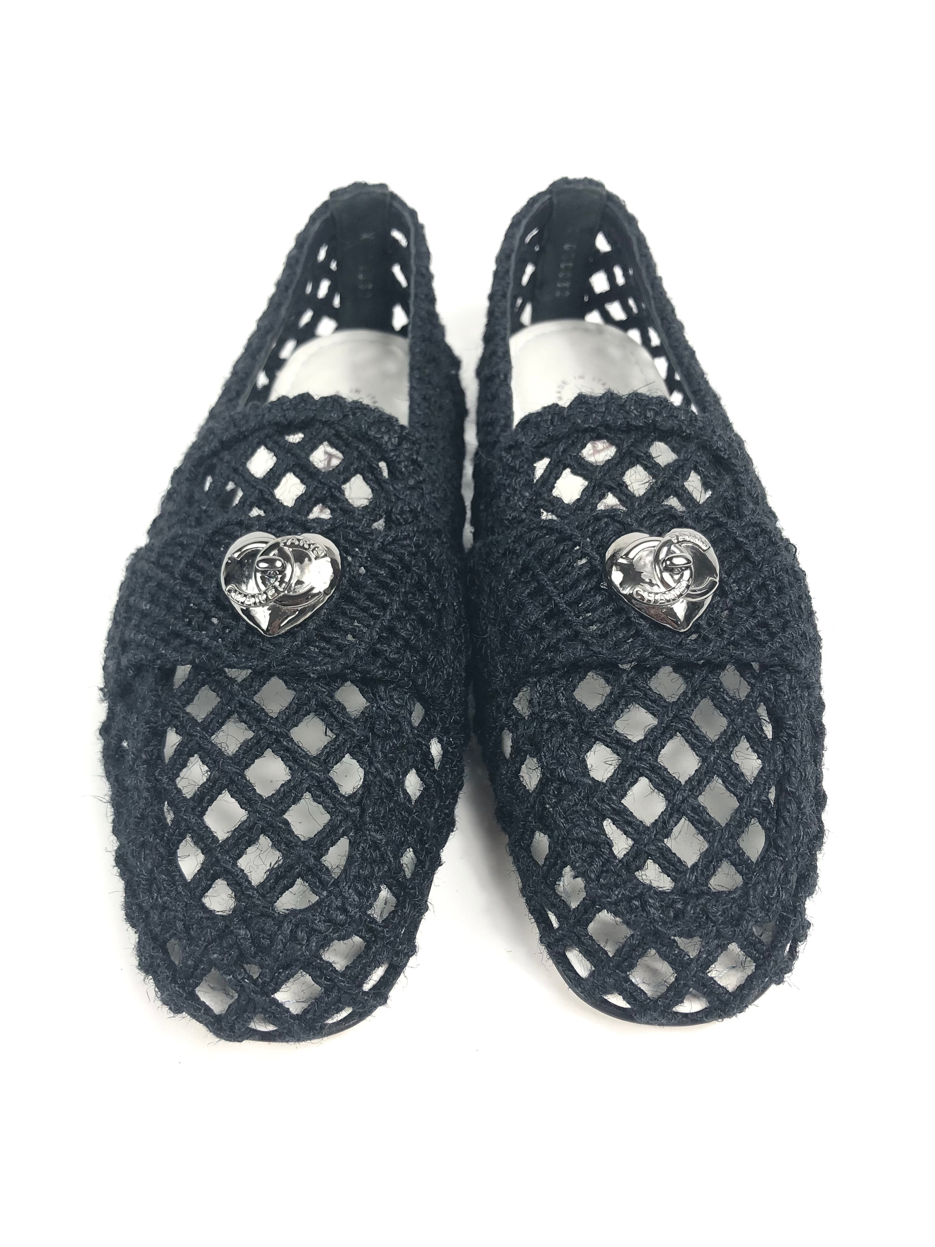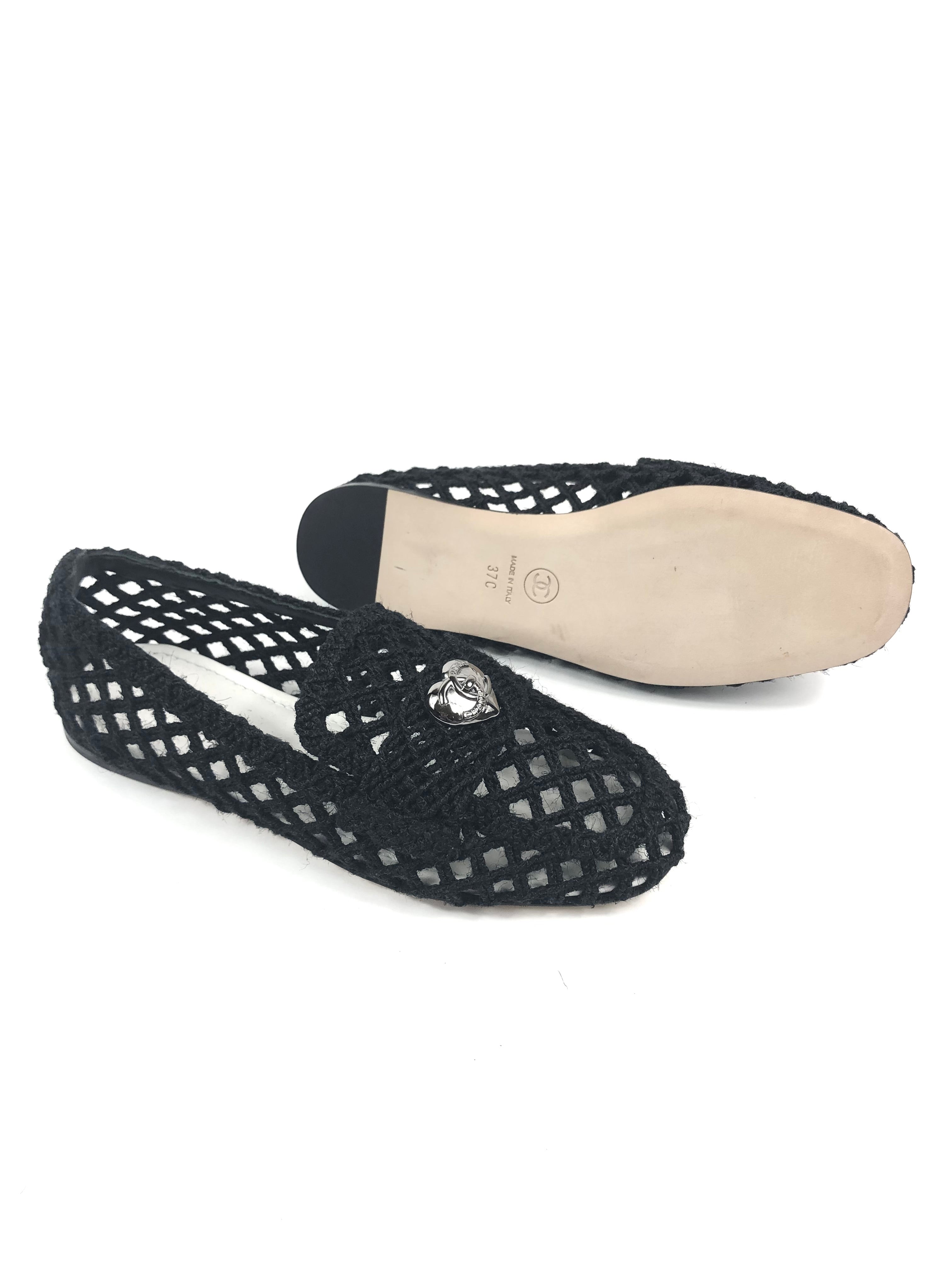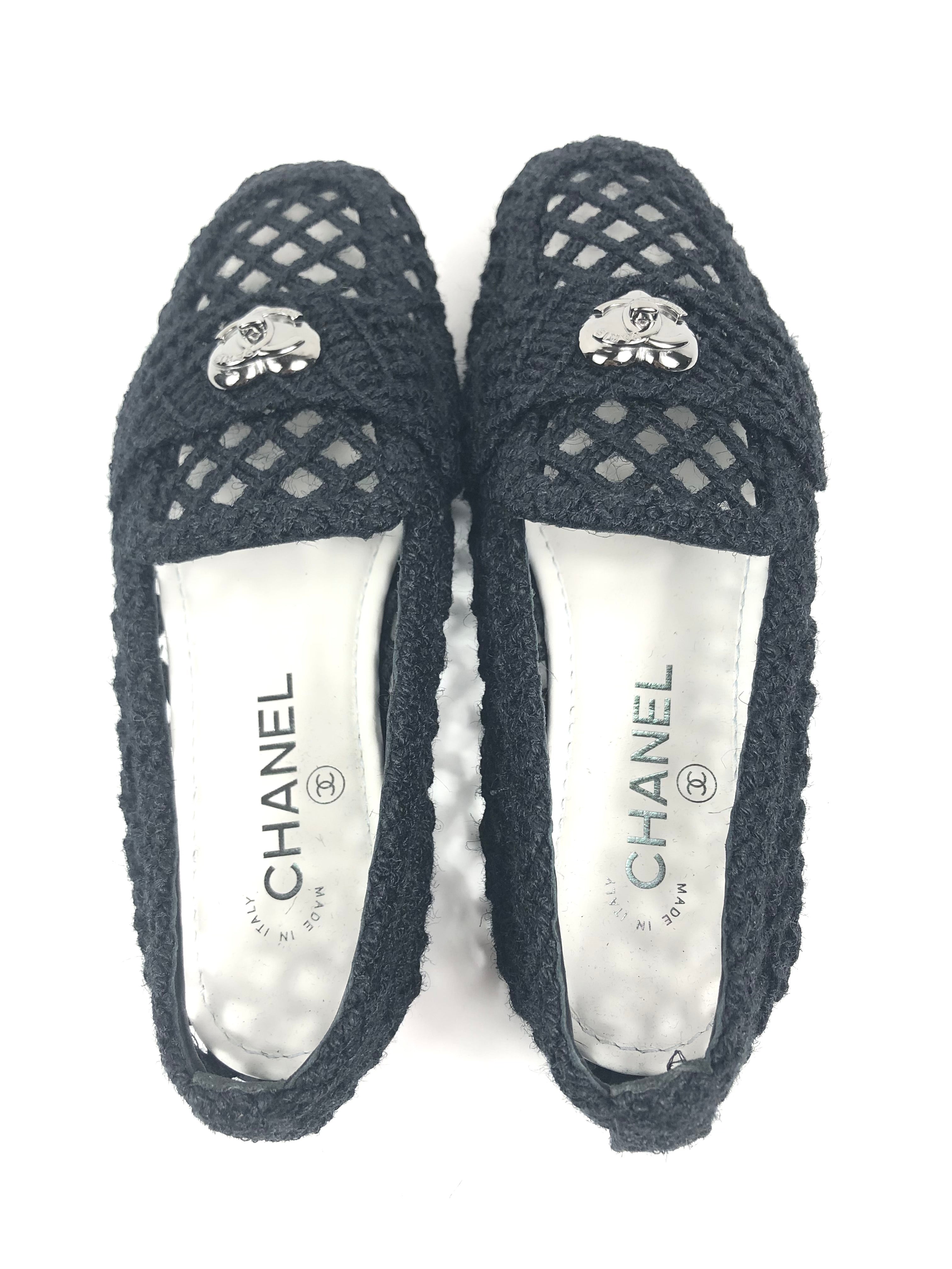 Black Braided Interlocking CC Logo Loafers / CHANEL - Size 37C