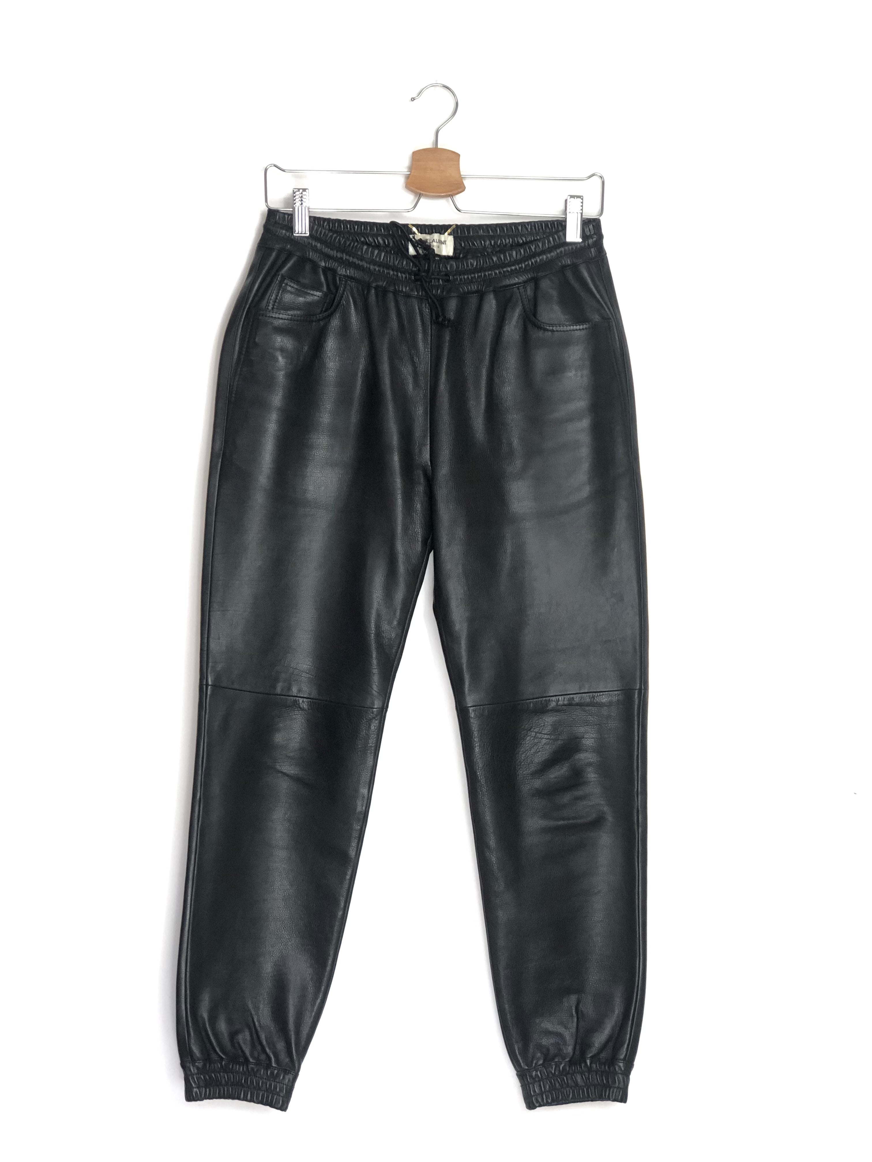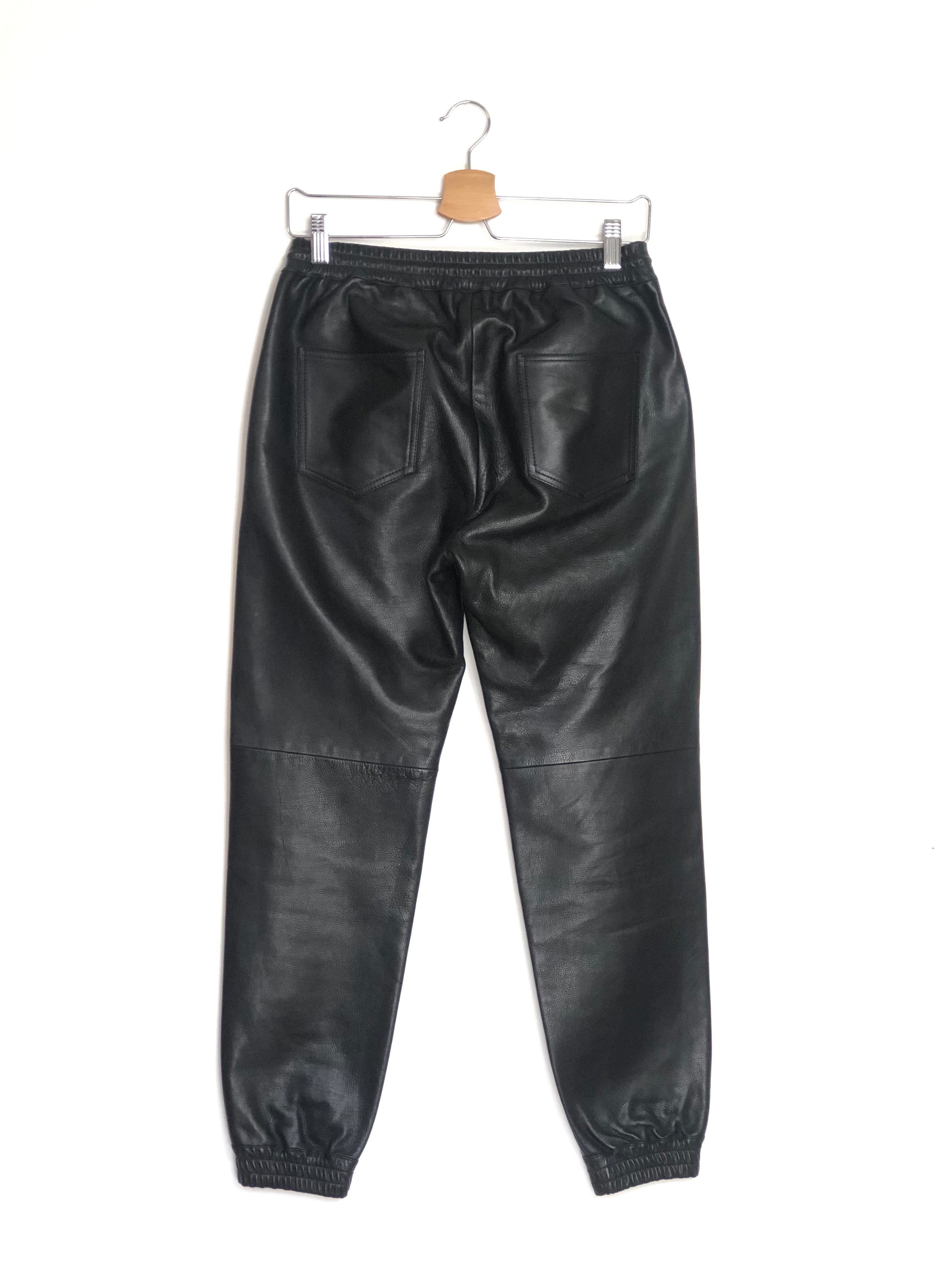 Black Calfskin Leather Jogger Pants / SAINT LAURENT - Size 36