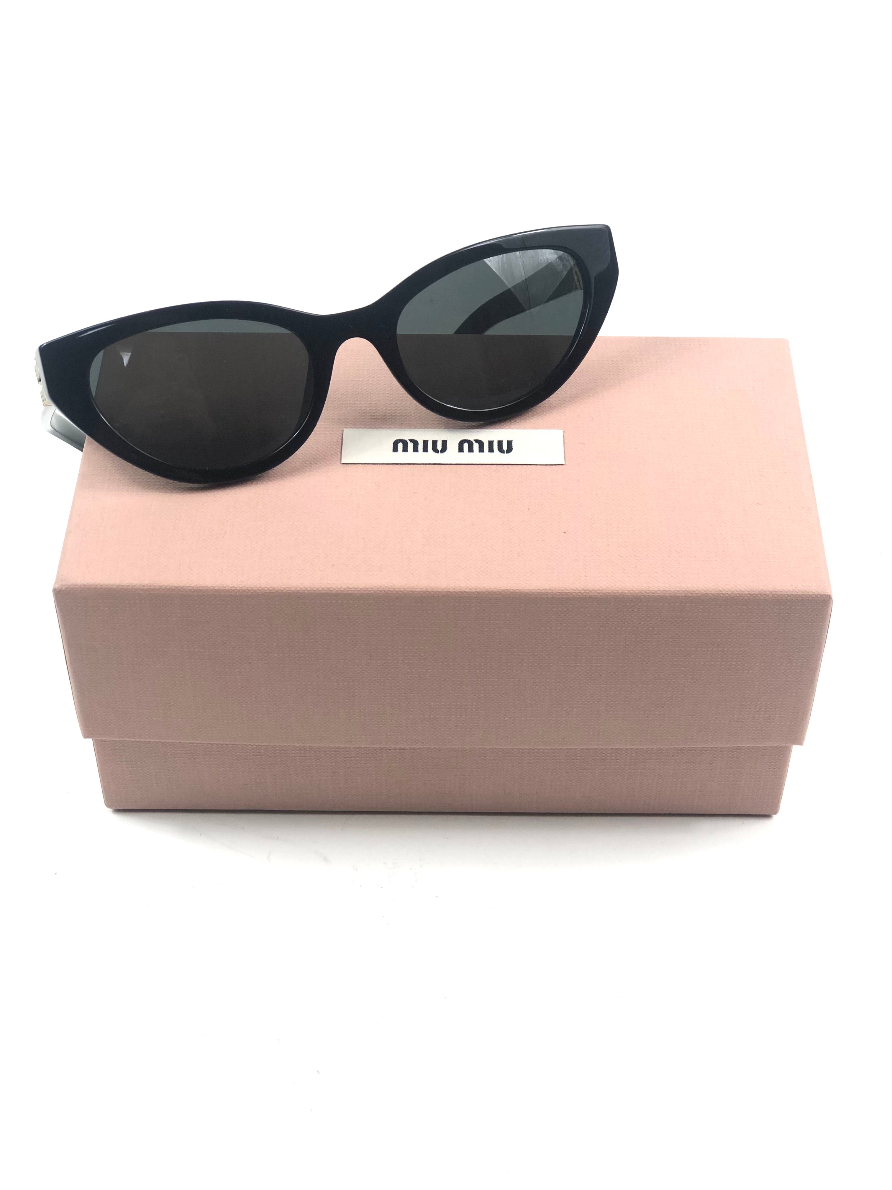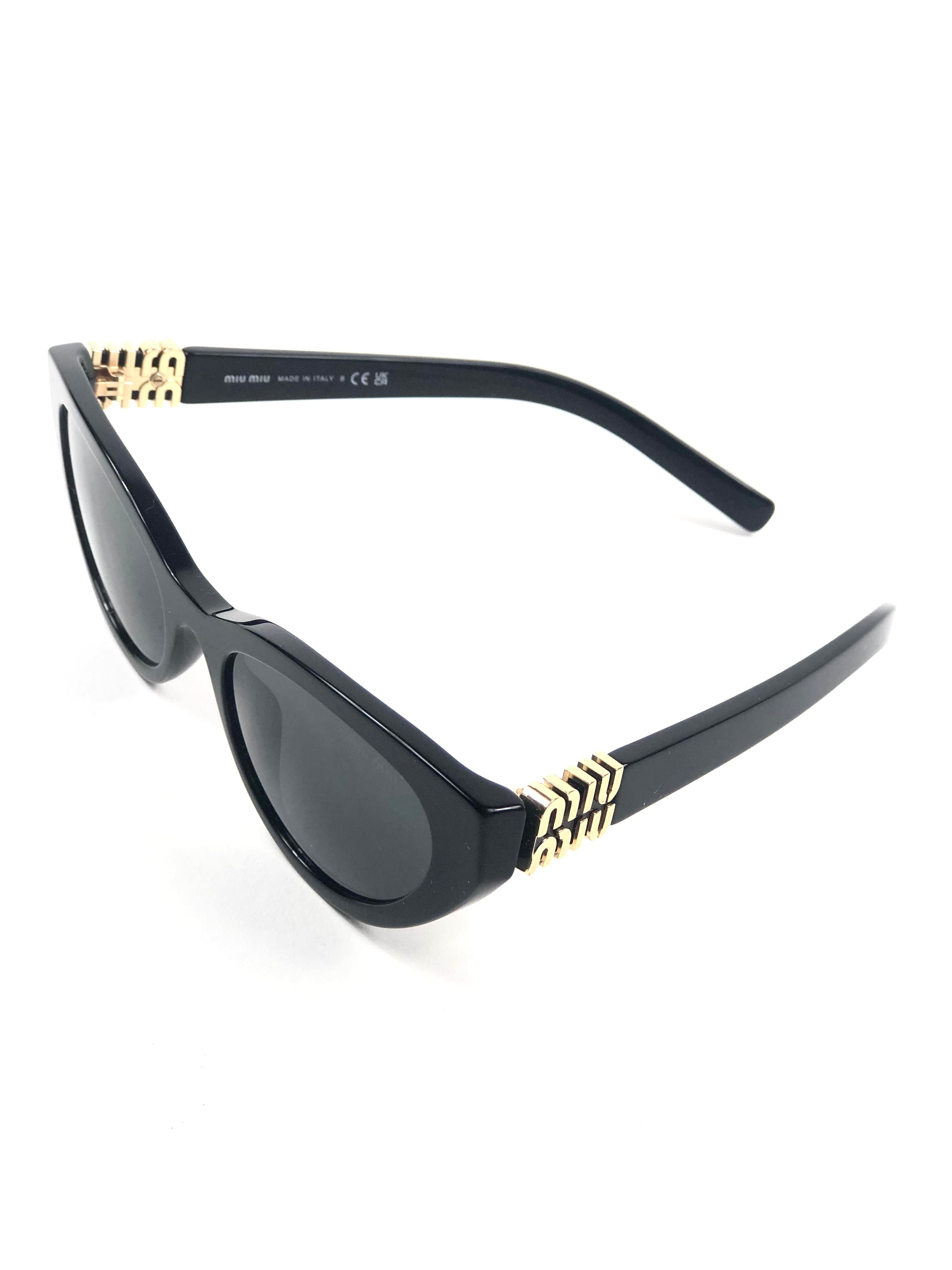 Black Cat Eye Gold Logo Sunglasses / MIU MIU - One Size