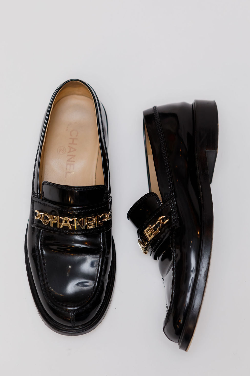 Black CC Logo Patent Leather Loafers / CHANEL - Size 39.5