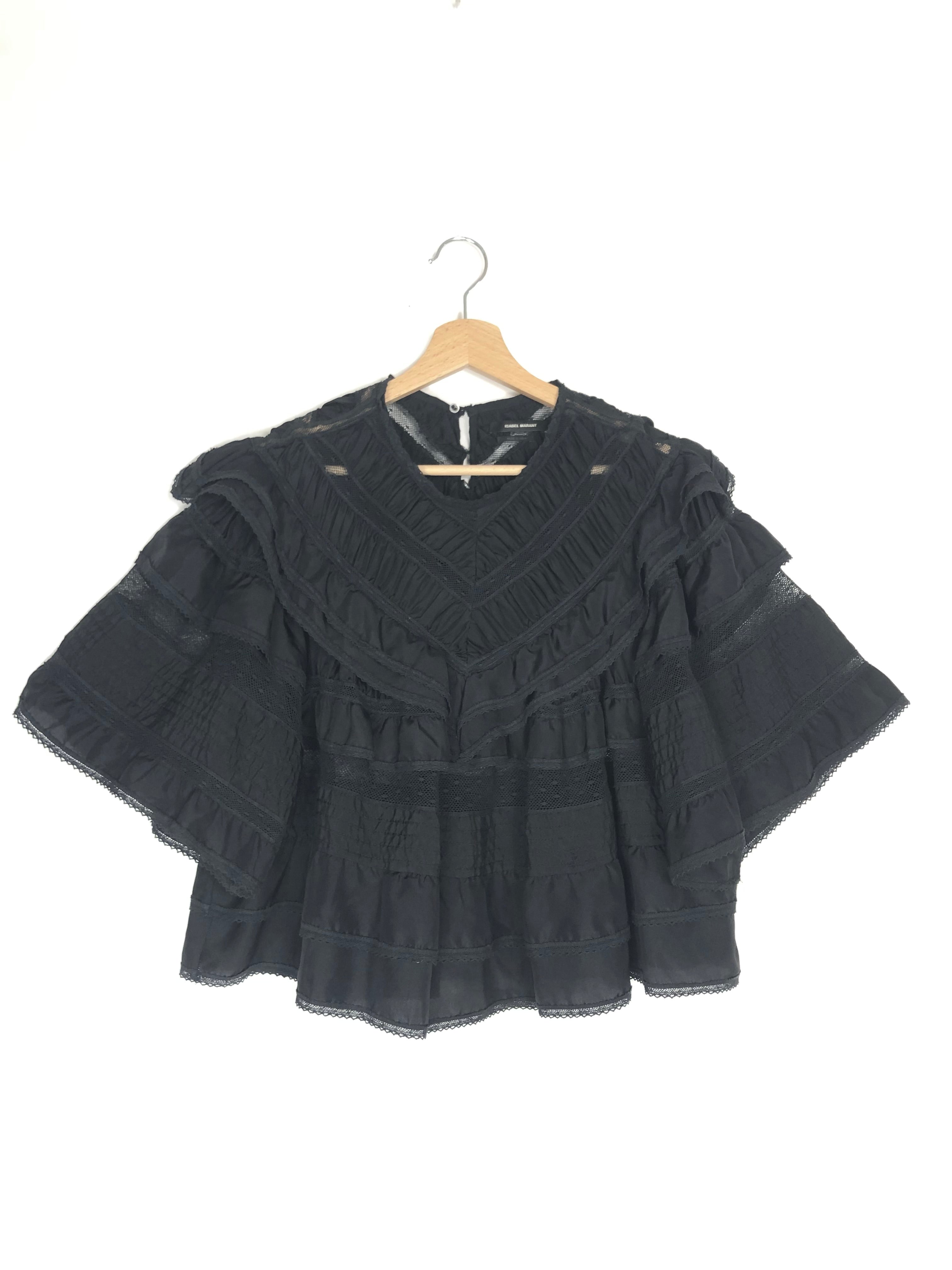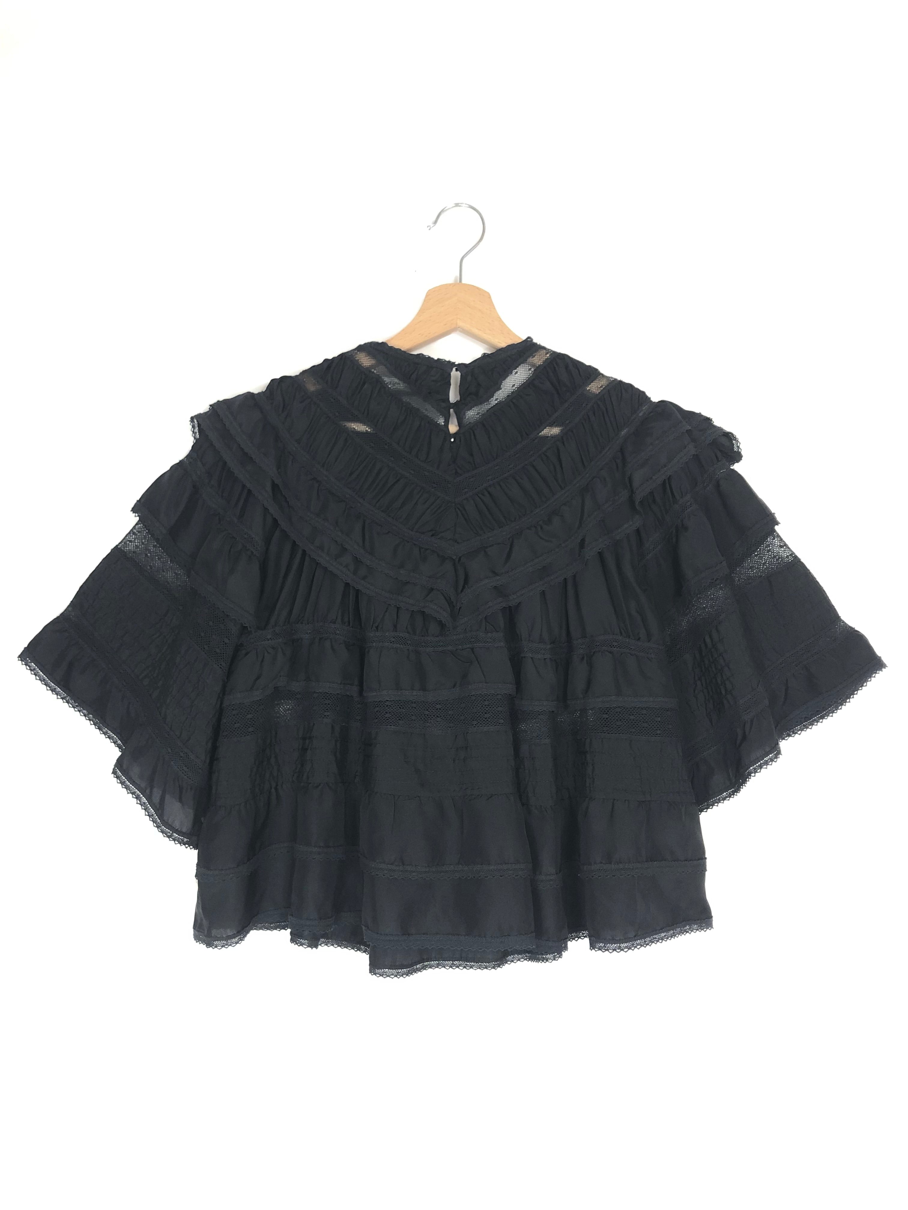 Black CIELO Tiered Cropped Cotton Silk Blouse / ISABEL MARANT - Size 38
