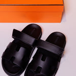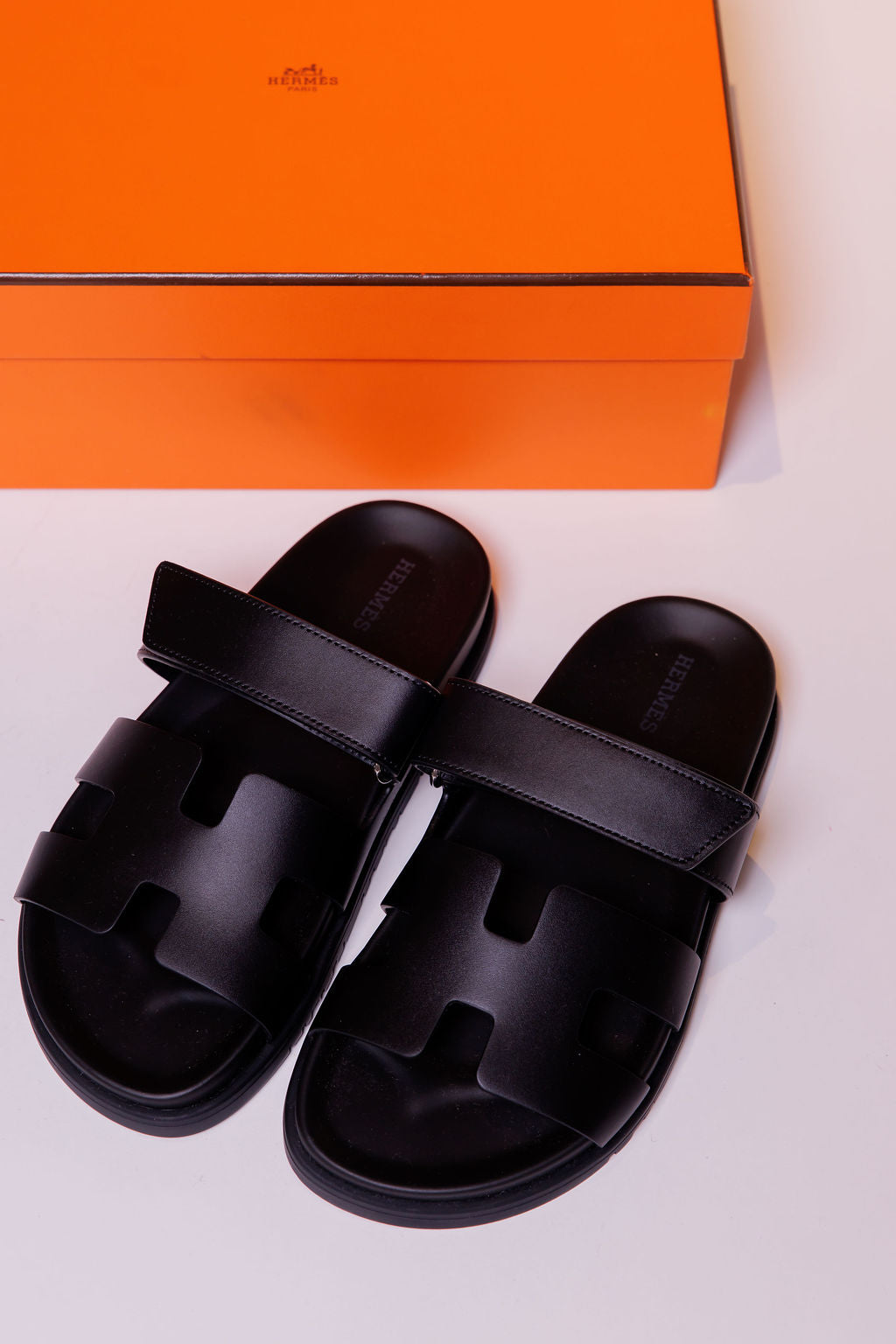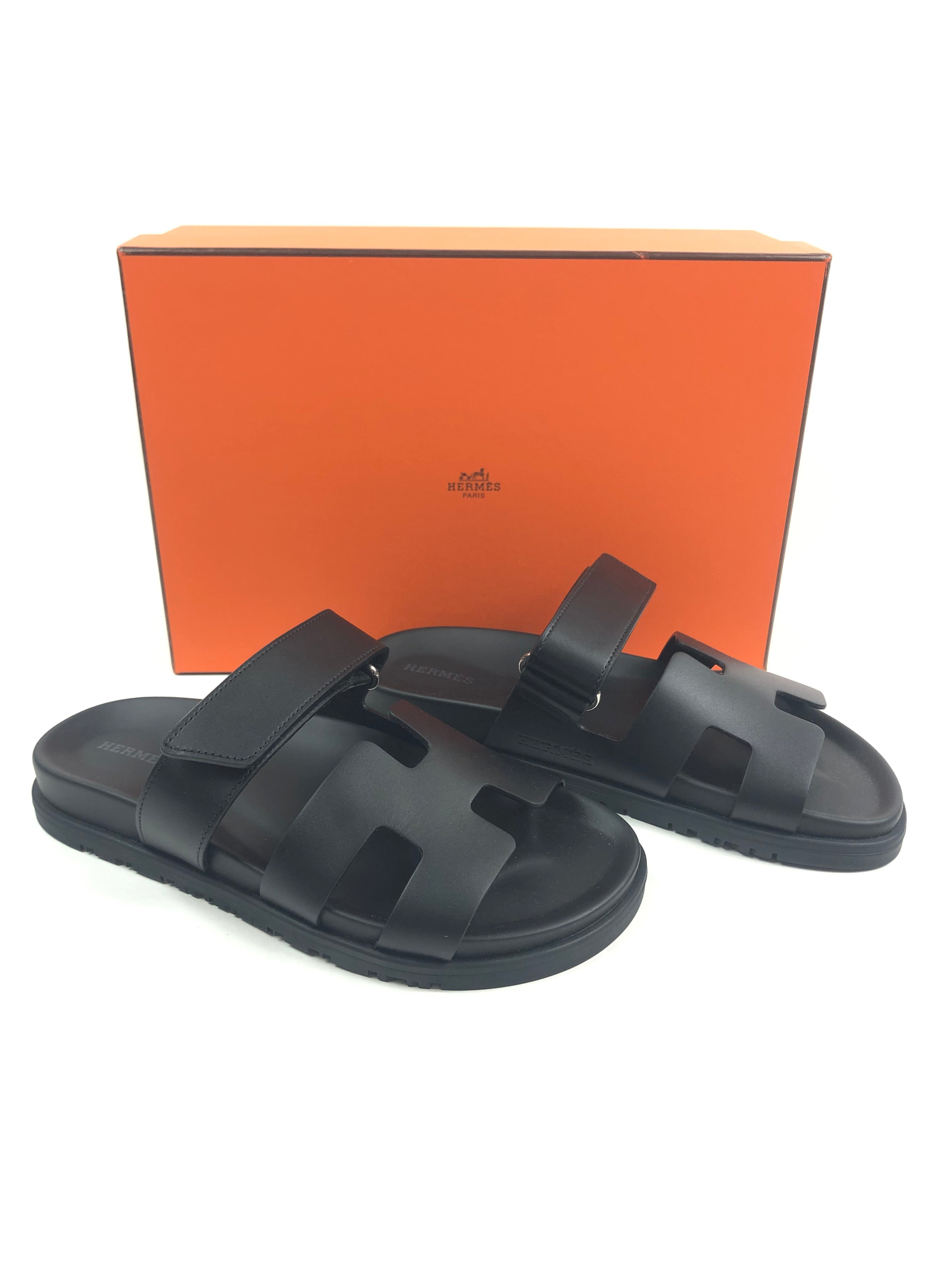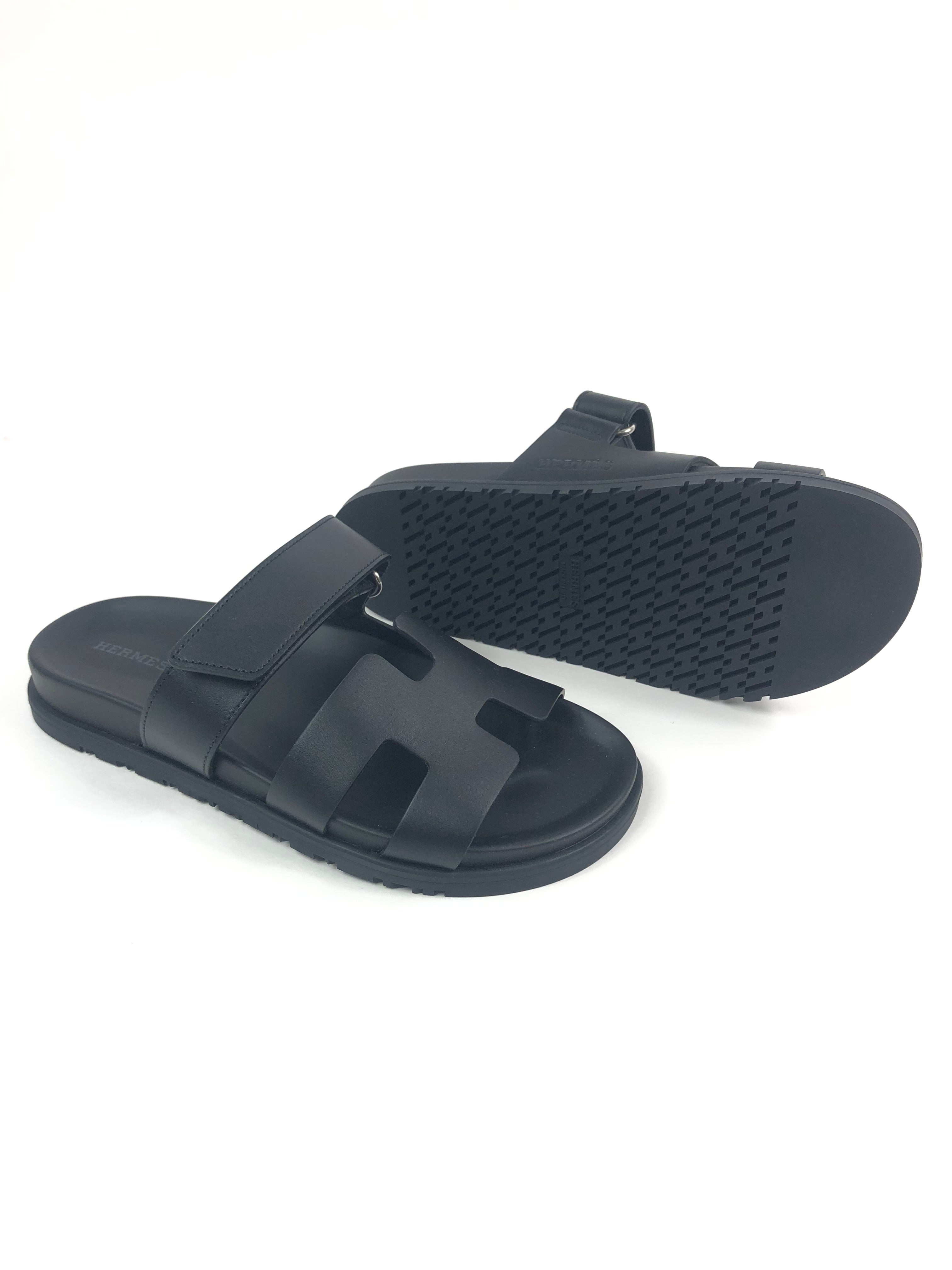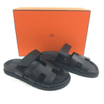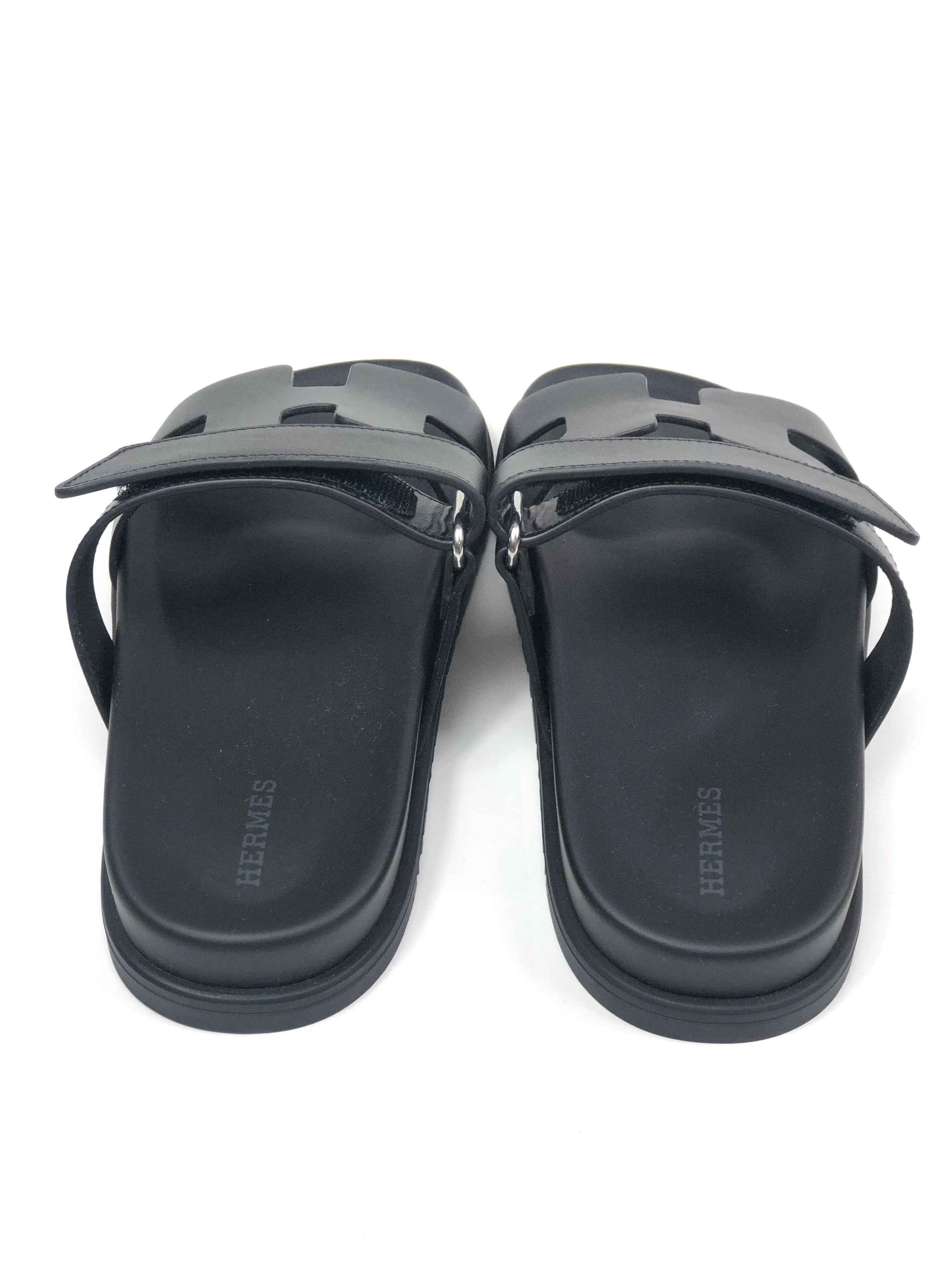 Black CHYPRE Leather Sandals / HERMES - Size 37.5