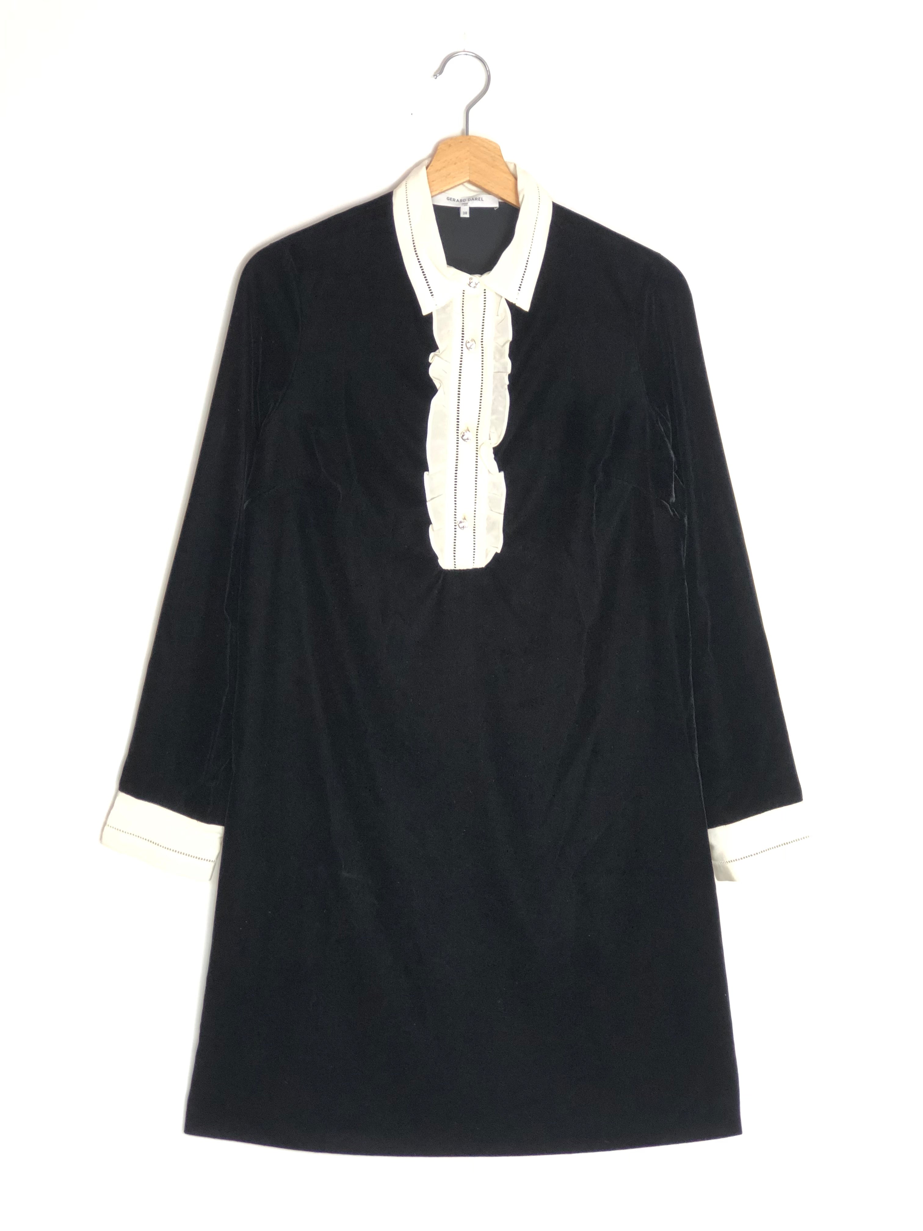 Black Collared Velvet Mini Dress / GERARD DAREL - Size 38