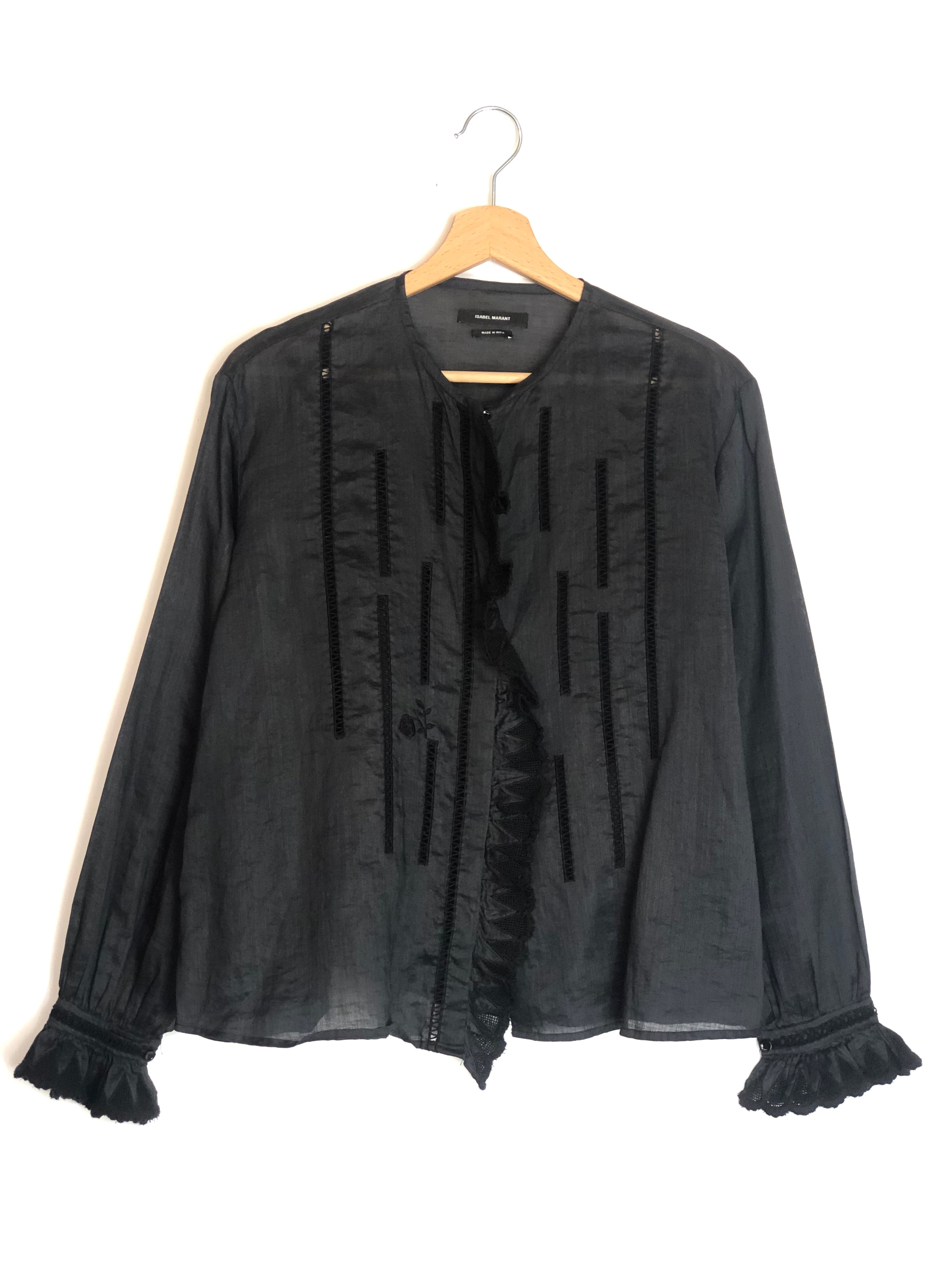 Black Cotton Embroidered Ruffled Blouse / ISABEL MARANT - Size 36