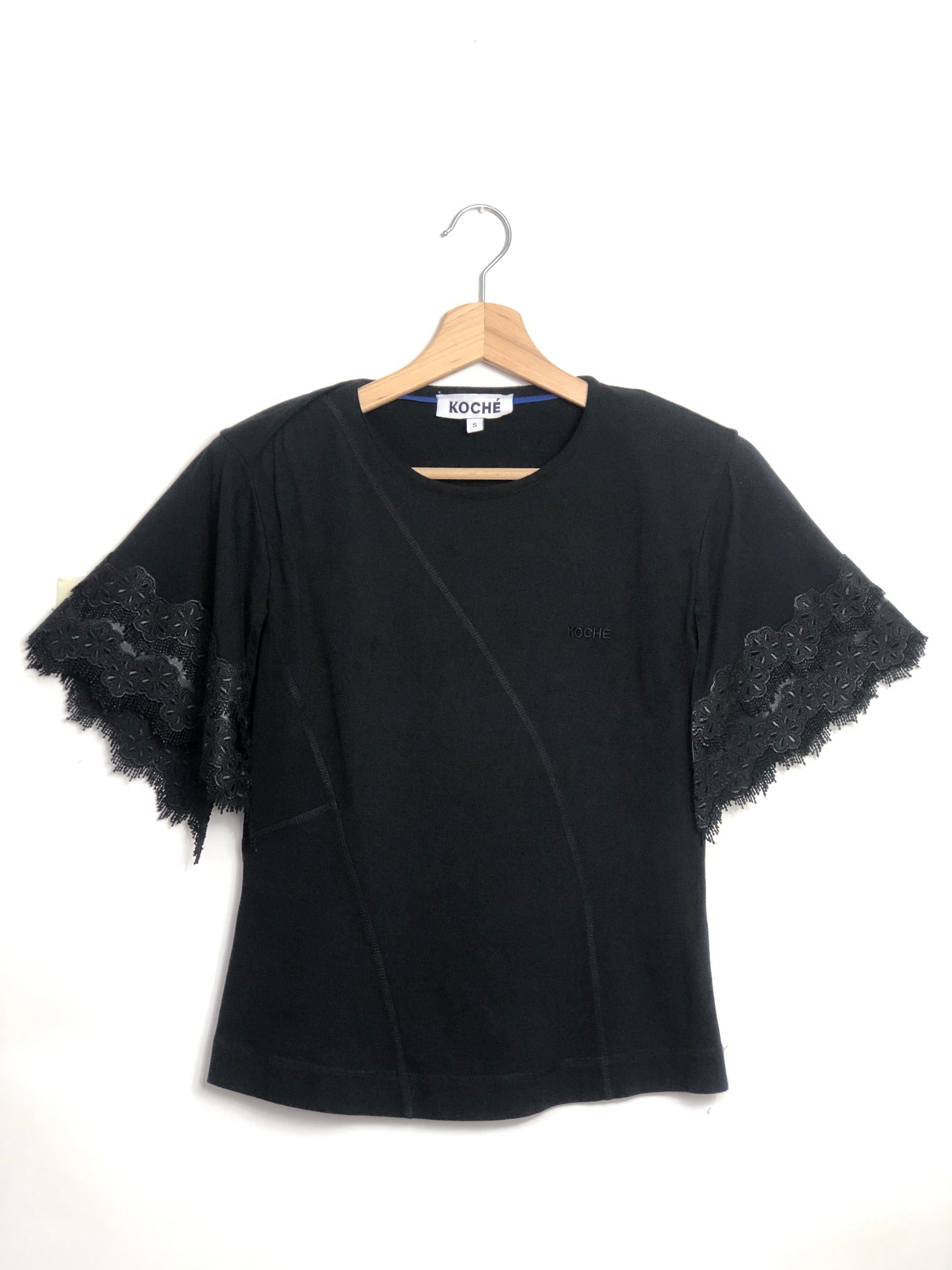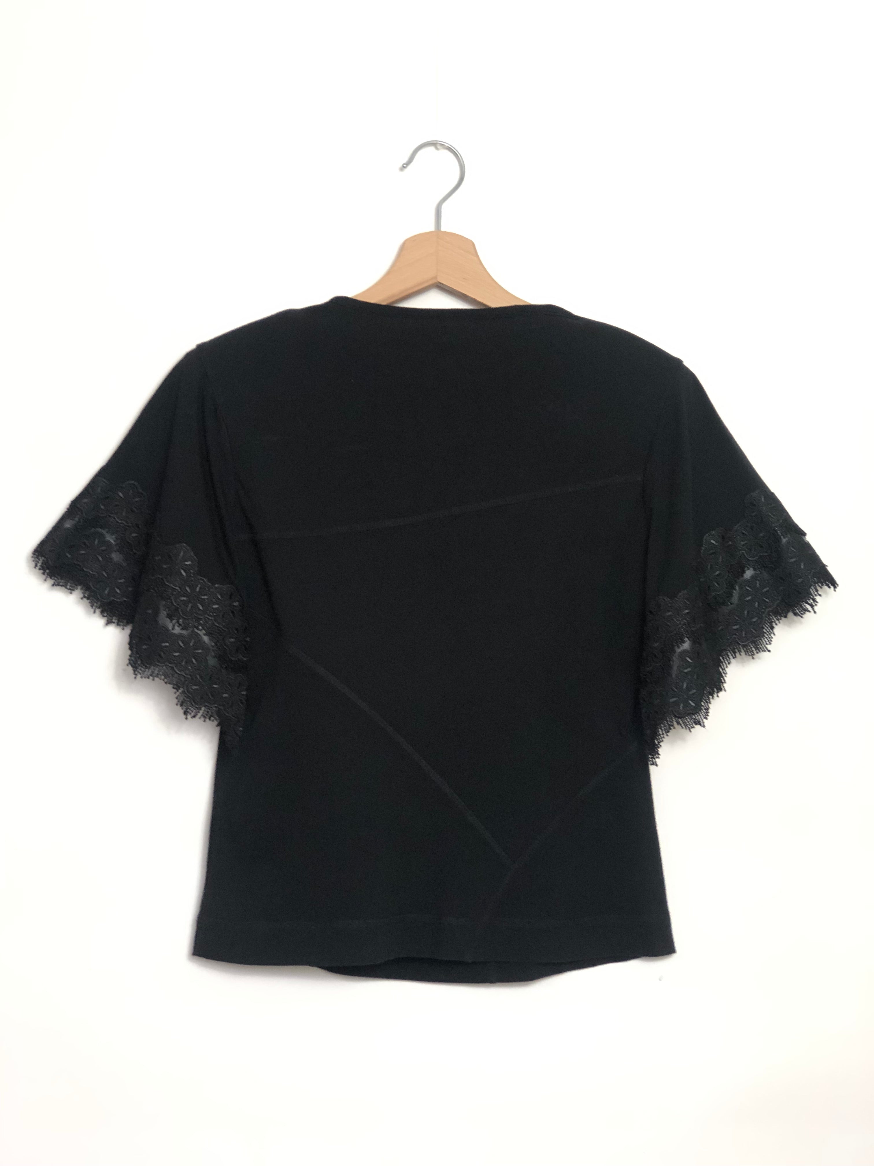 Black Cotton Lace Short Sleeves T-shirt / KOCHE - Size S