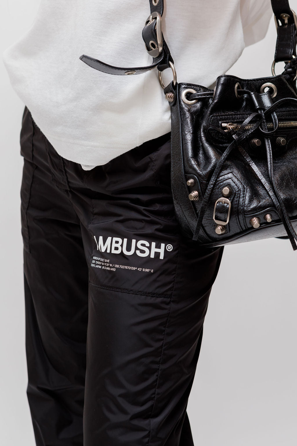 Black Cuffless LOGO-print Nylon Sweatpants / AMBUSH - Size S