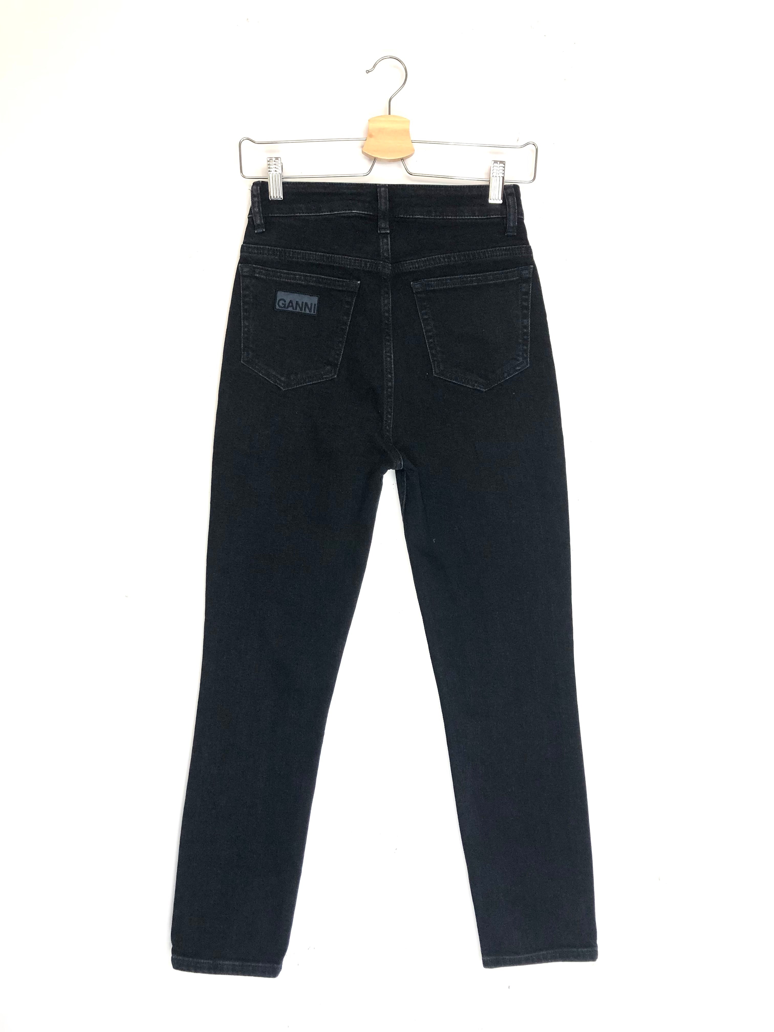 Black Denim CUTYE Cropped Slim-straight Jeans / GANNI - Size 26
