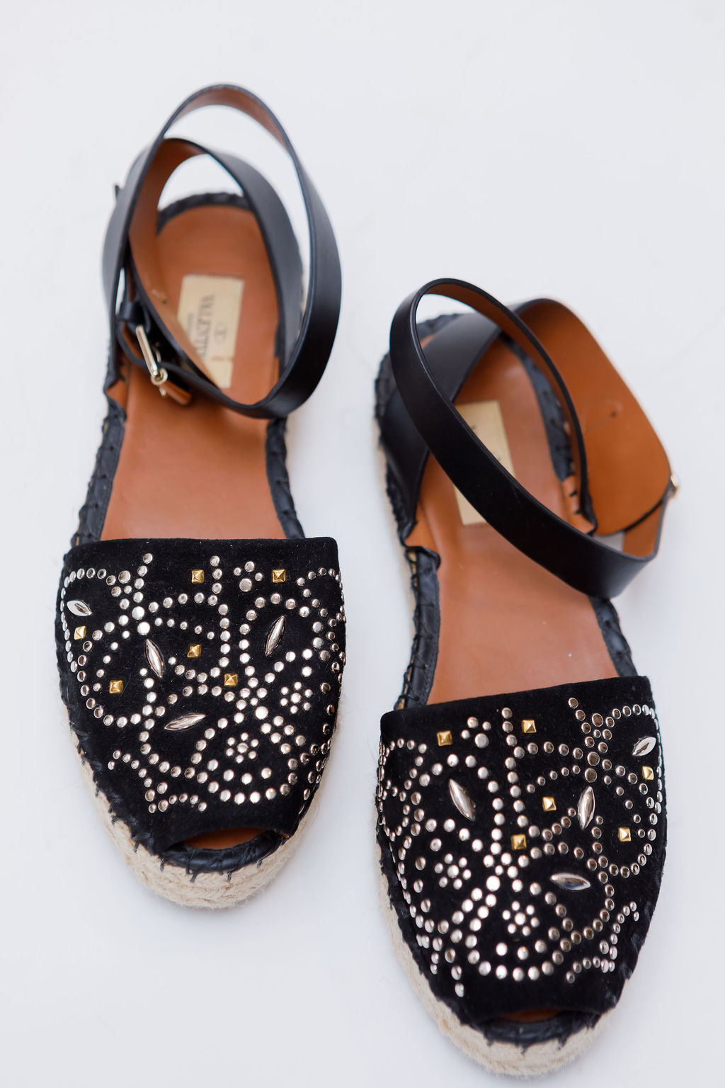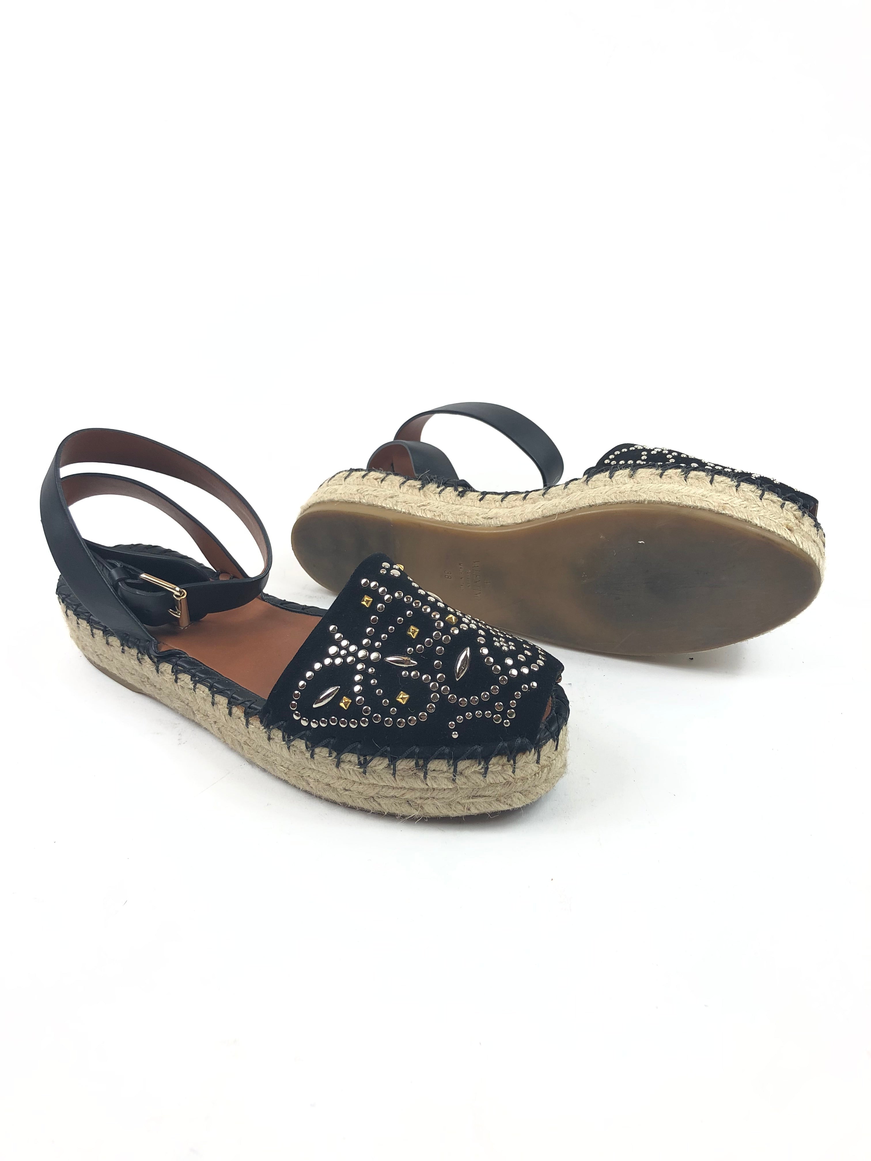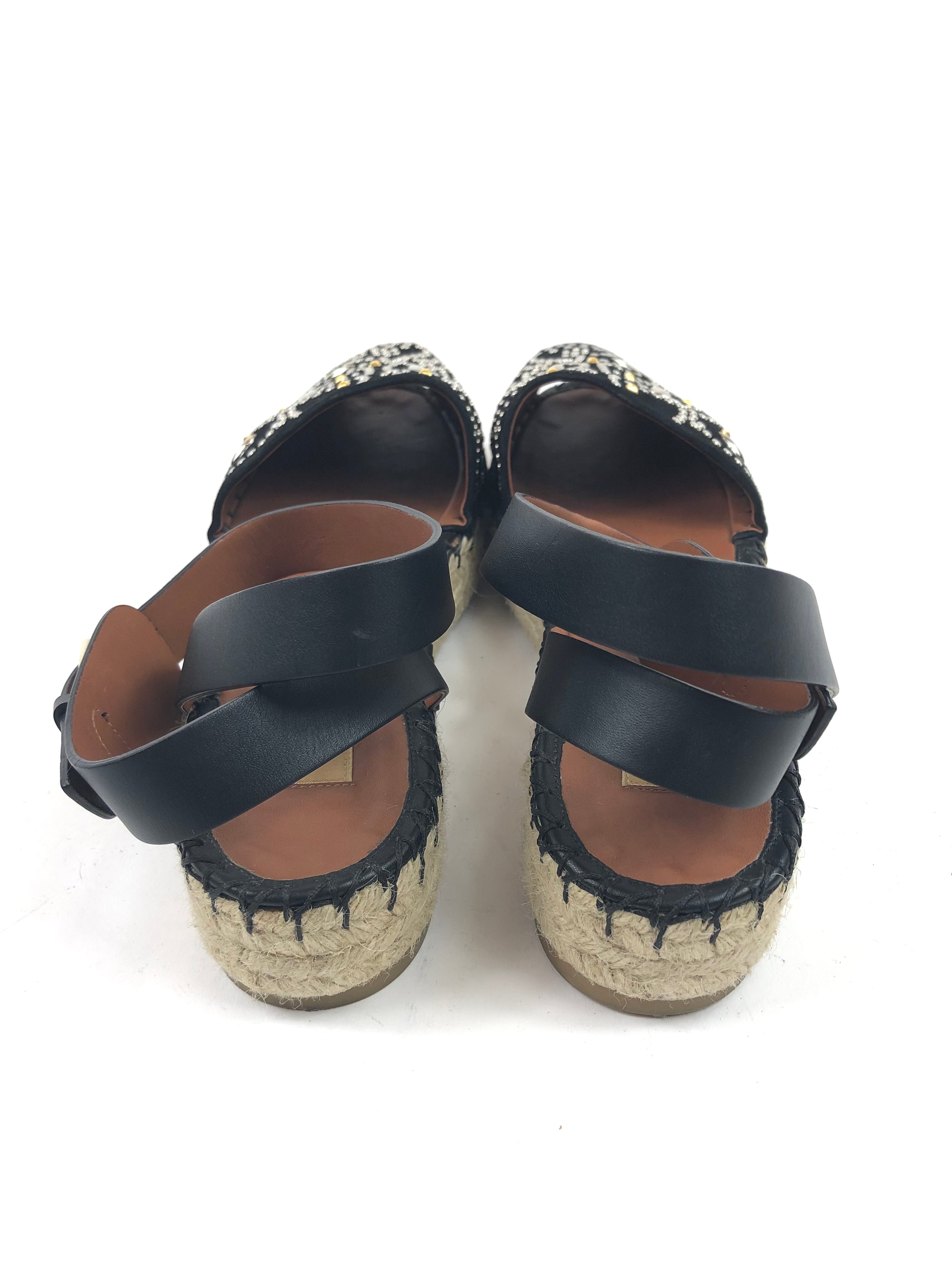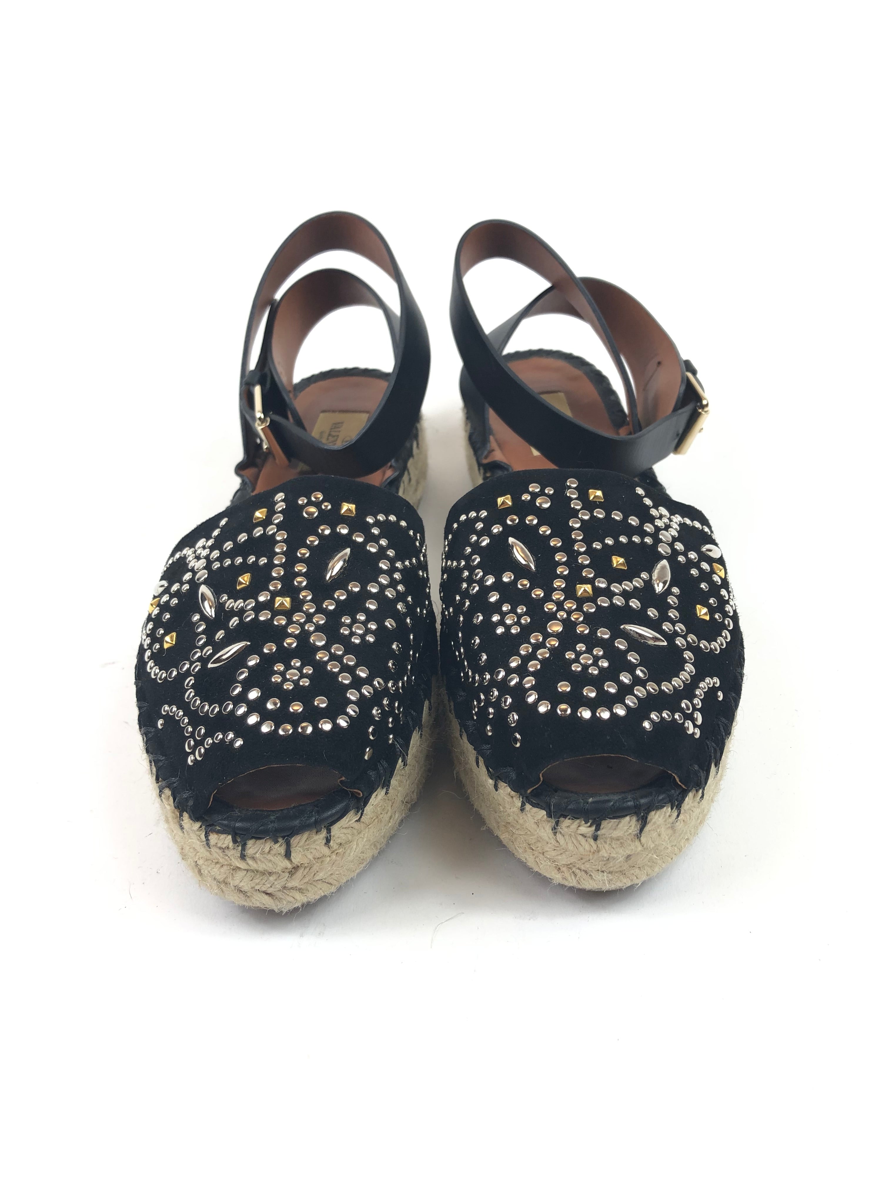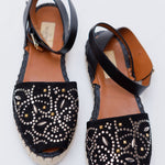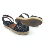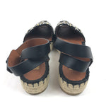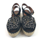 Black Embellished Suede and Leather Ankle Wrap Espadrille Sandals / VALENTINO - Size 38