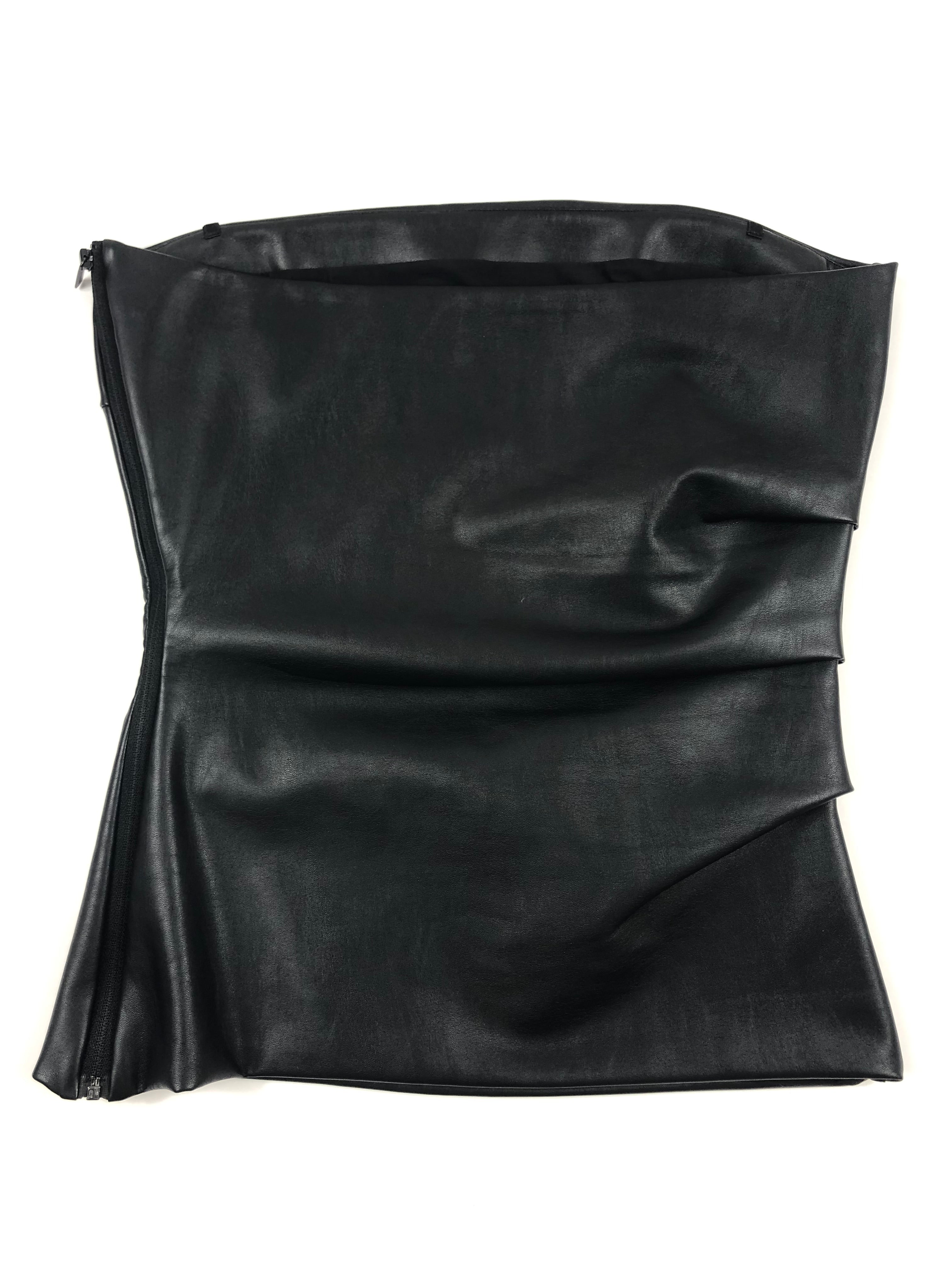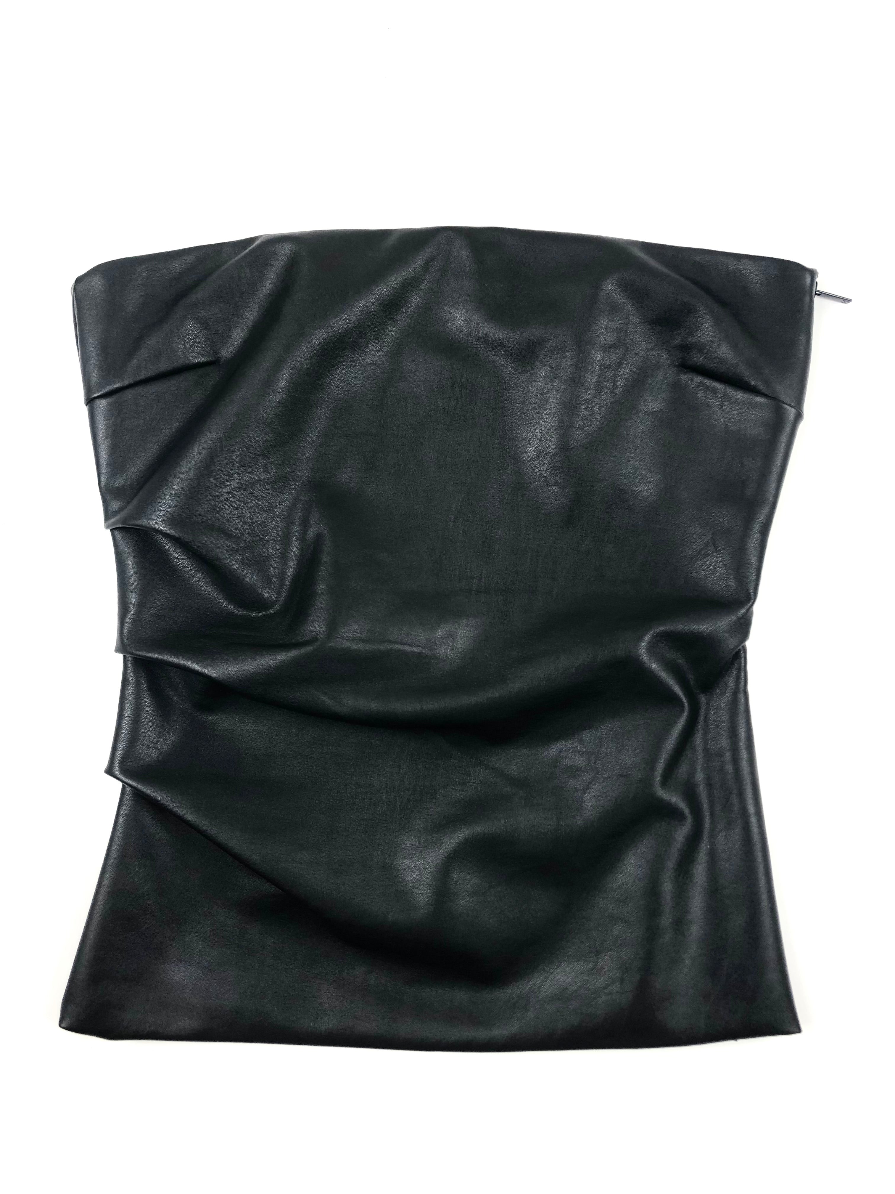 Black Faux Leather Strapless Top / WOLFORD - Size 36