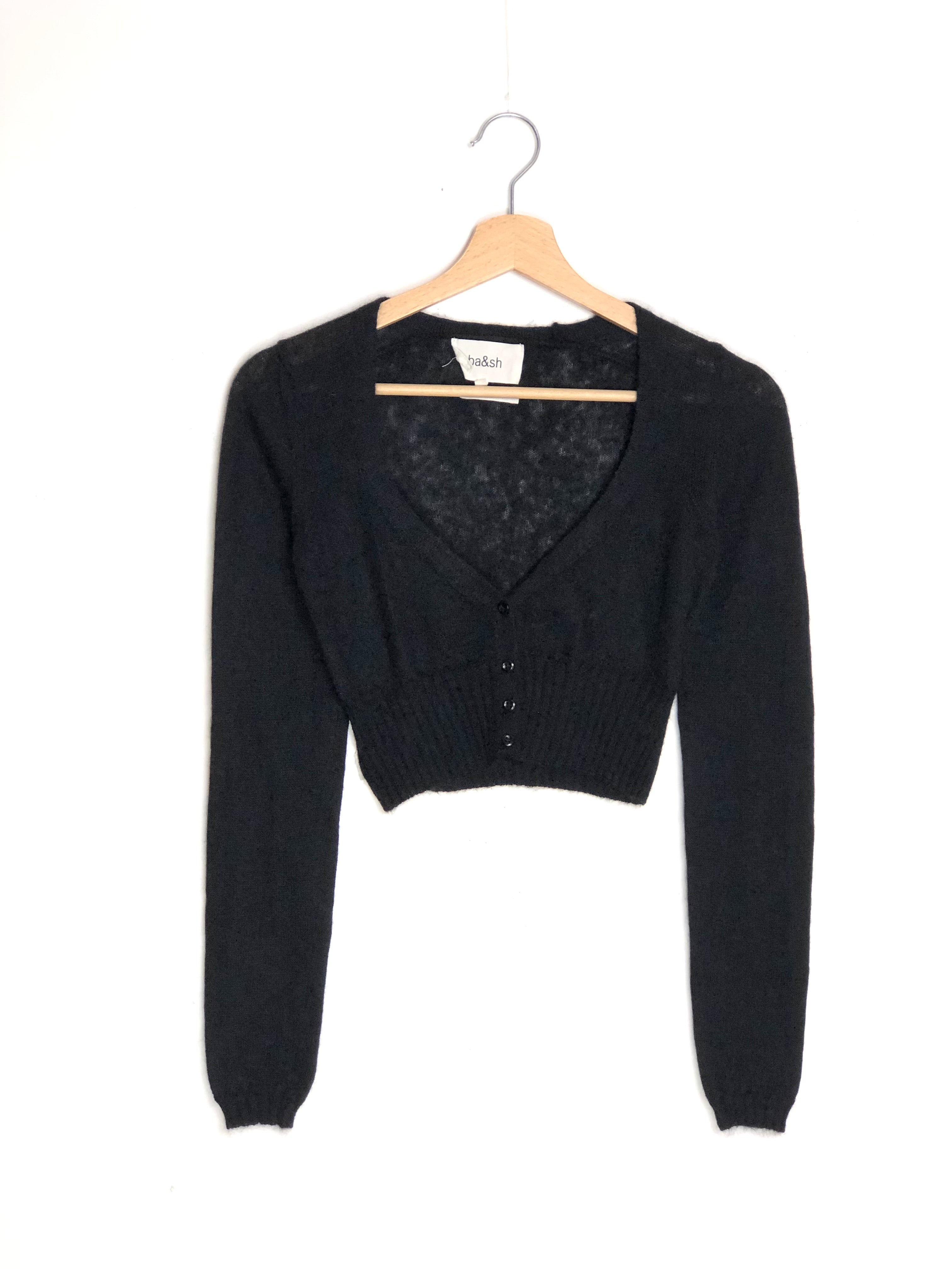 Black FAUZIA Wool Blend Cropped Cardigan / BA&SH - Size 0