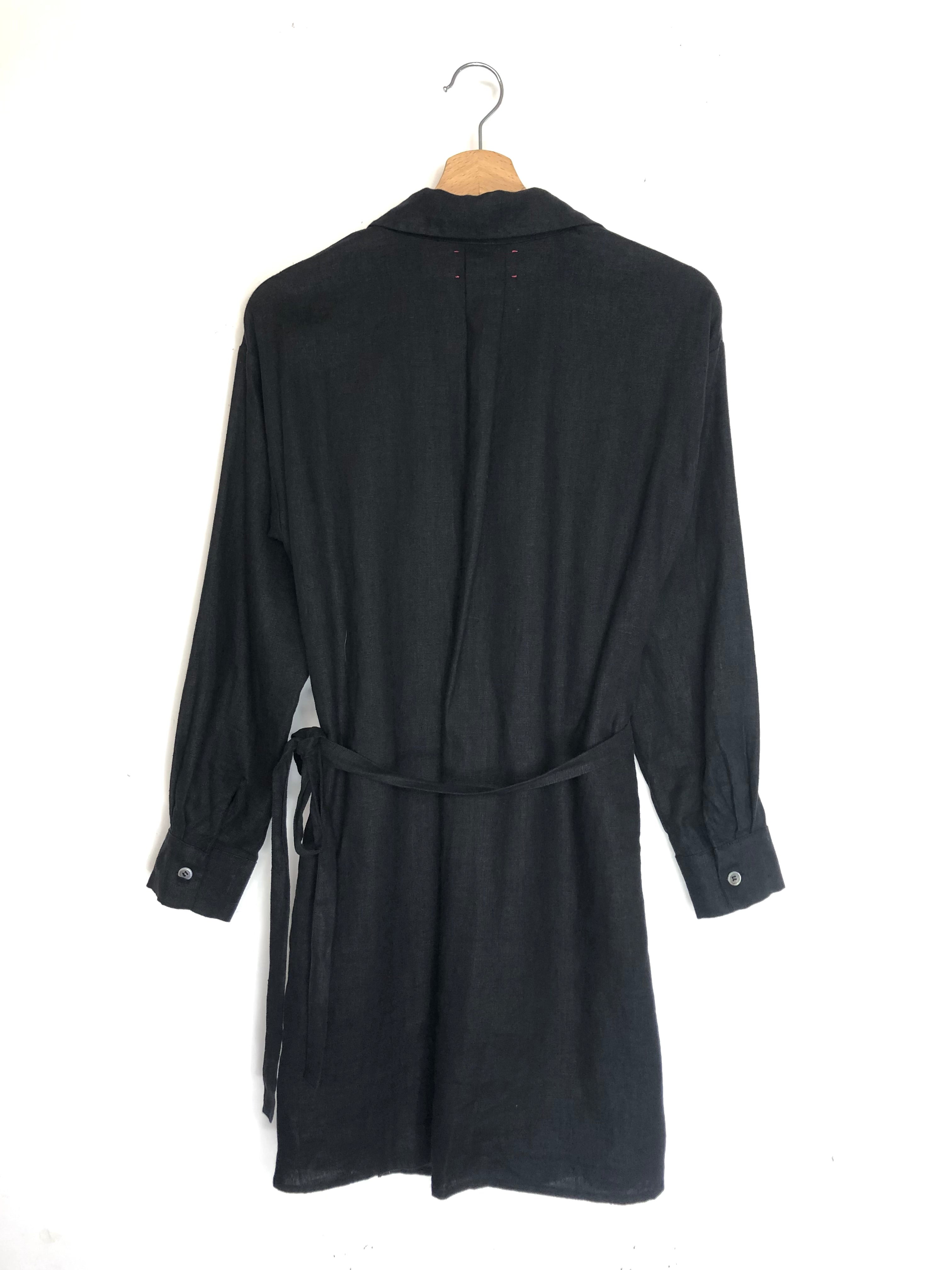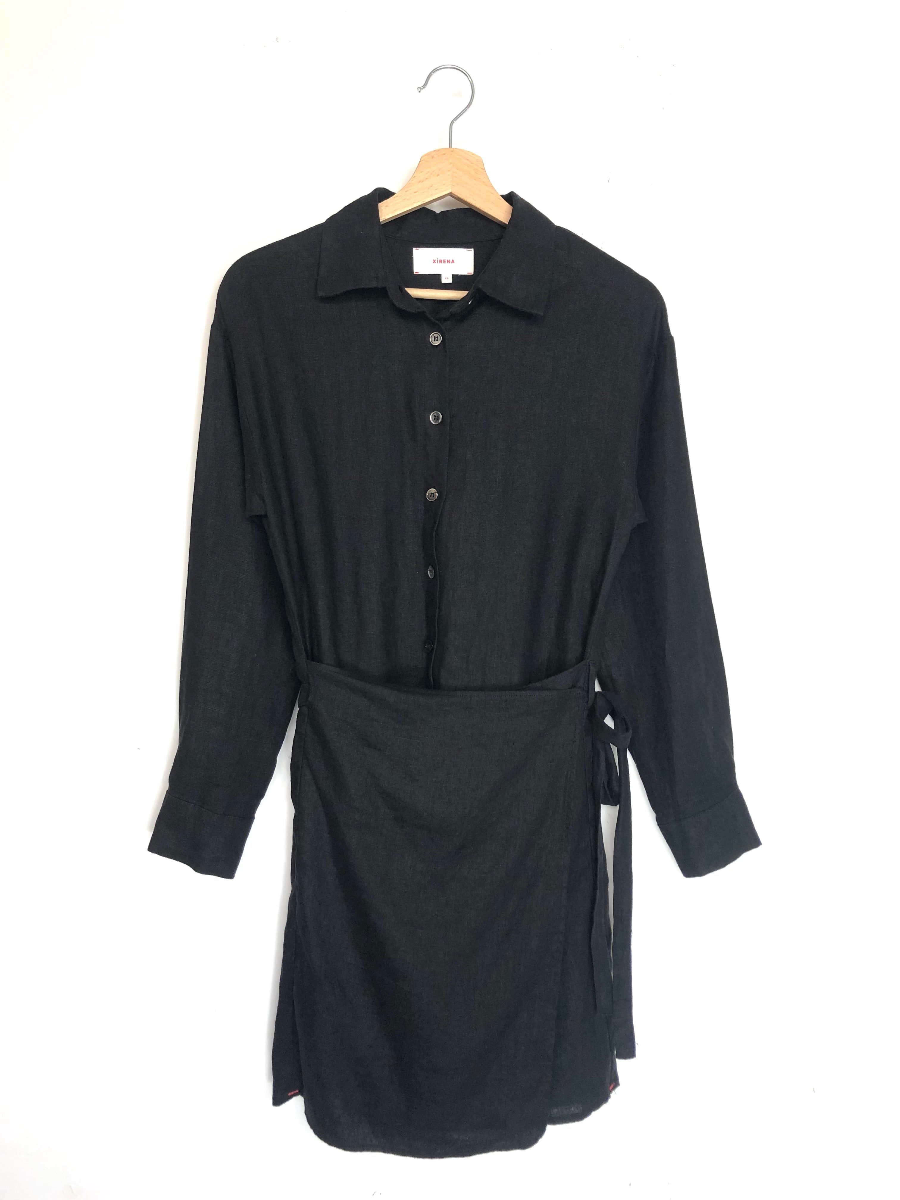 Black FIONA Tie-waist Linen Wrap Dress / XIRENA - Size XS
