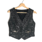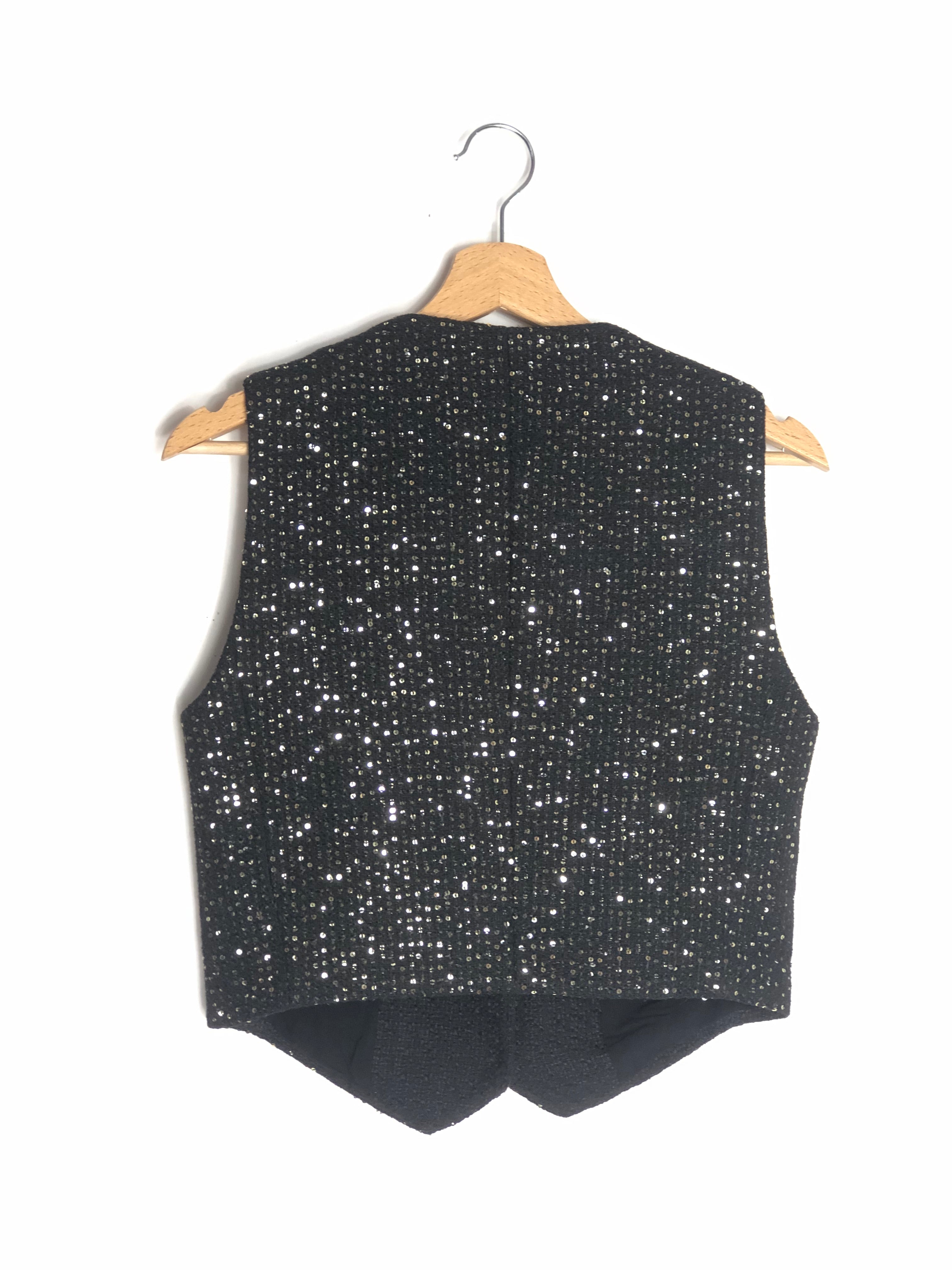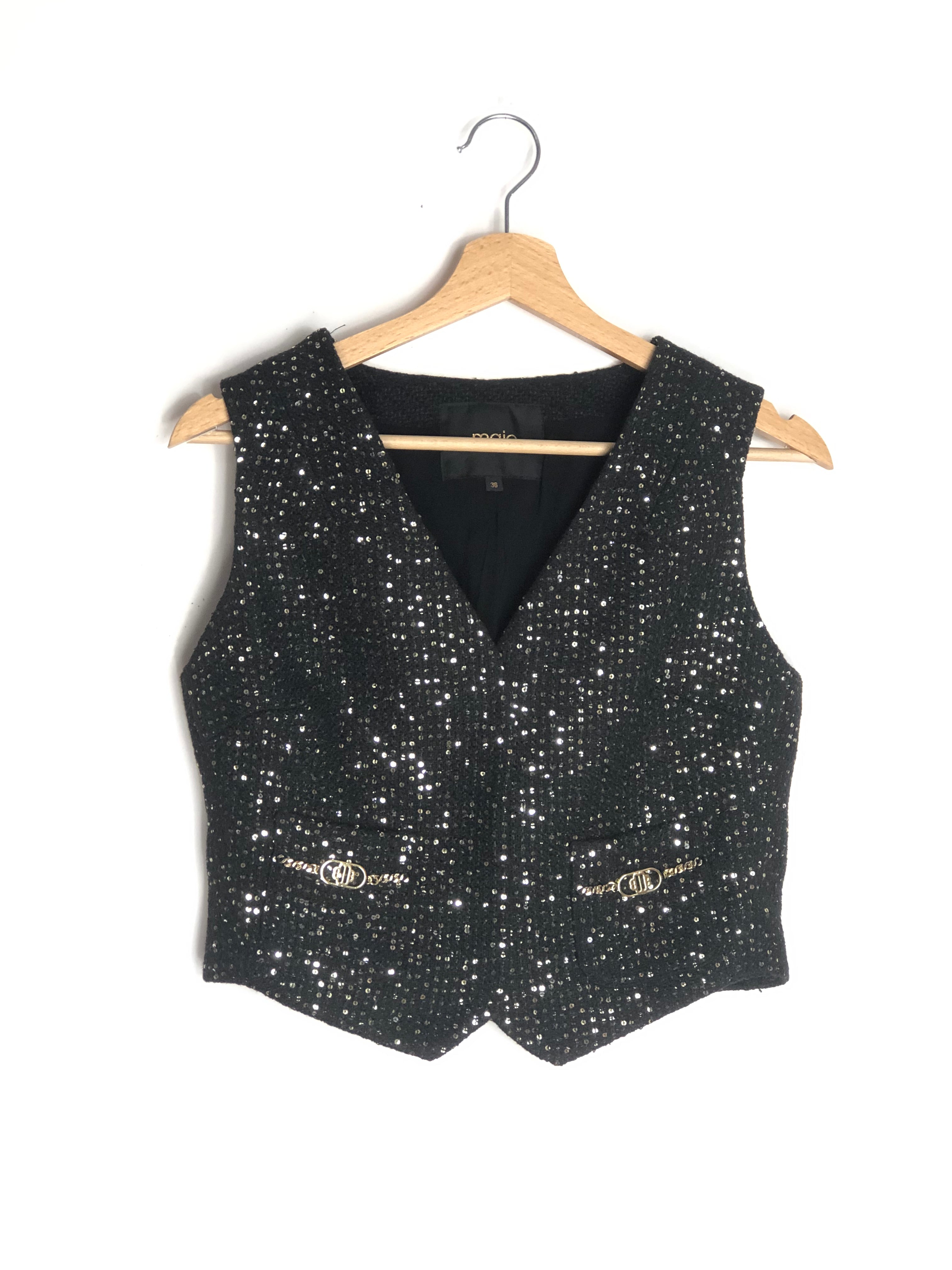Black Gold Sequin Sleeveless Tweed Vest / MAJE - Size 36