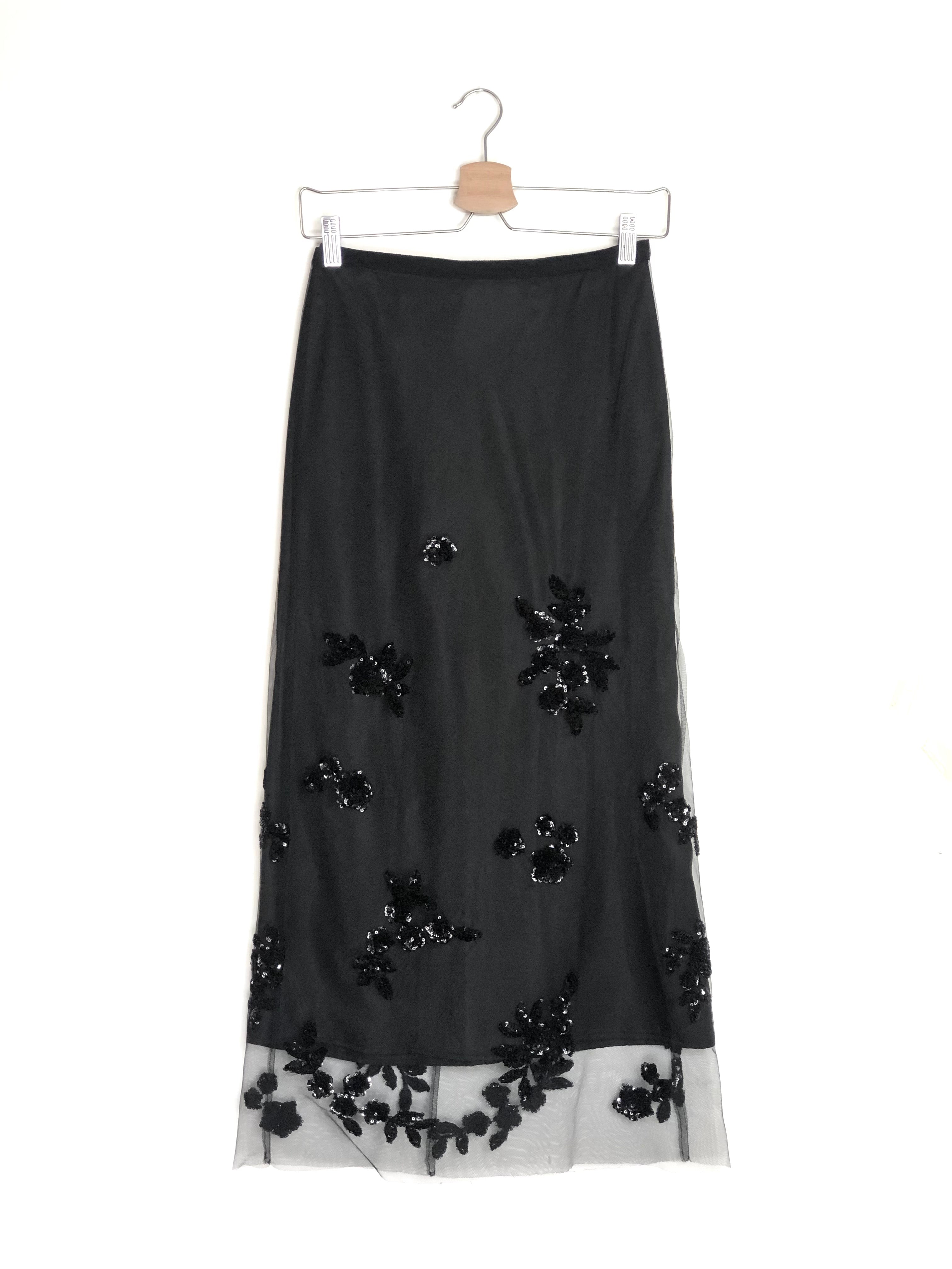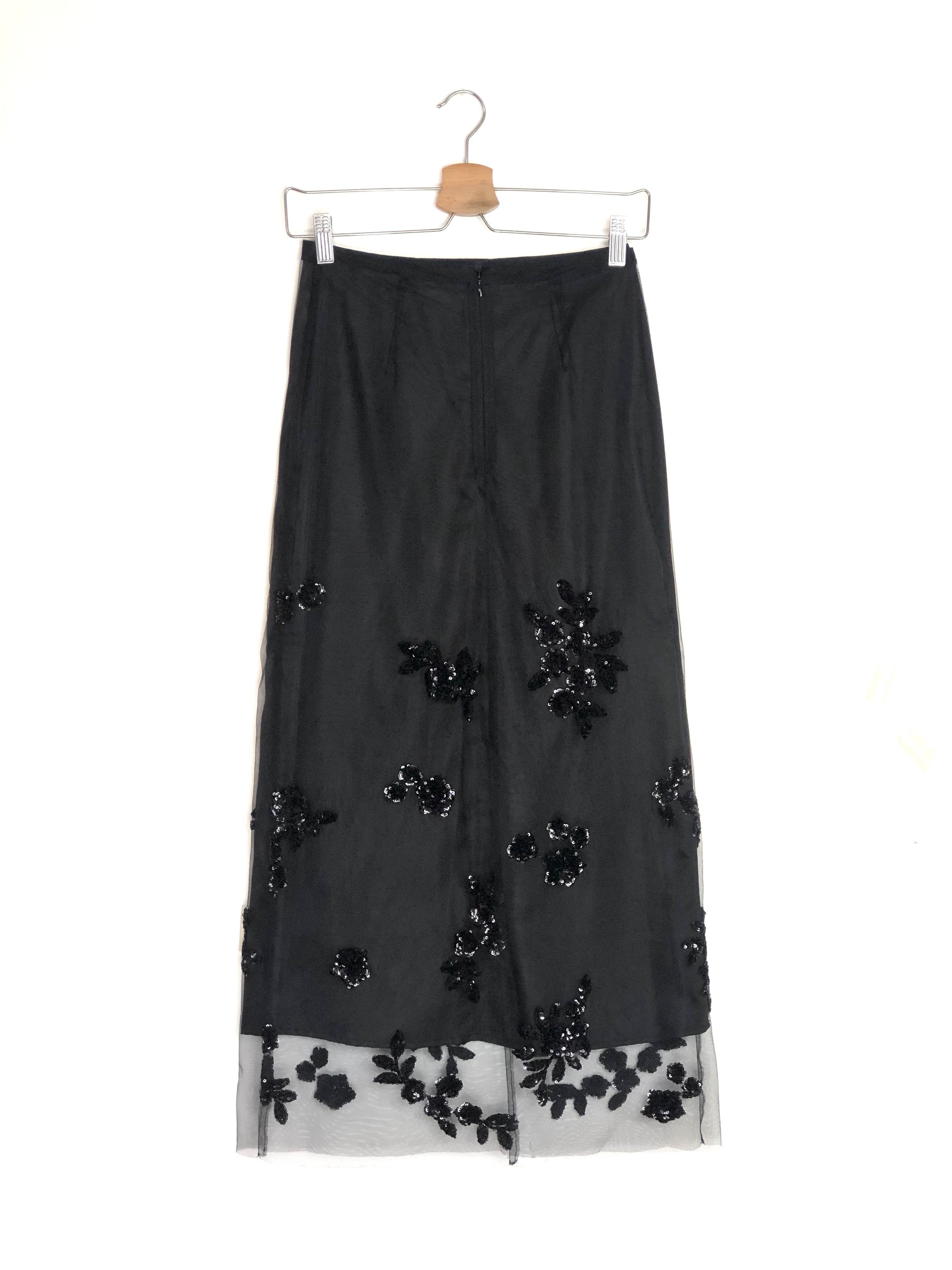 Black GRACE Embroidered Tulle Maxi Skirt / SOEUR - Size 34