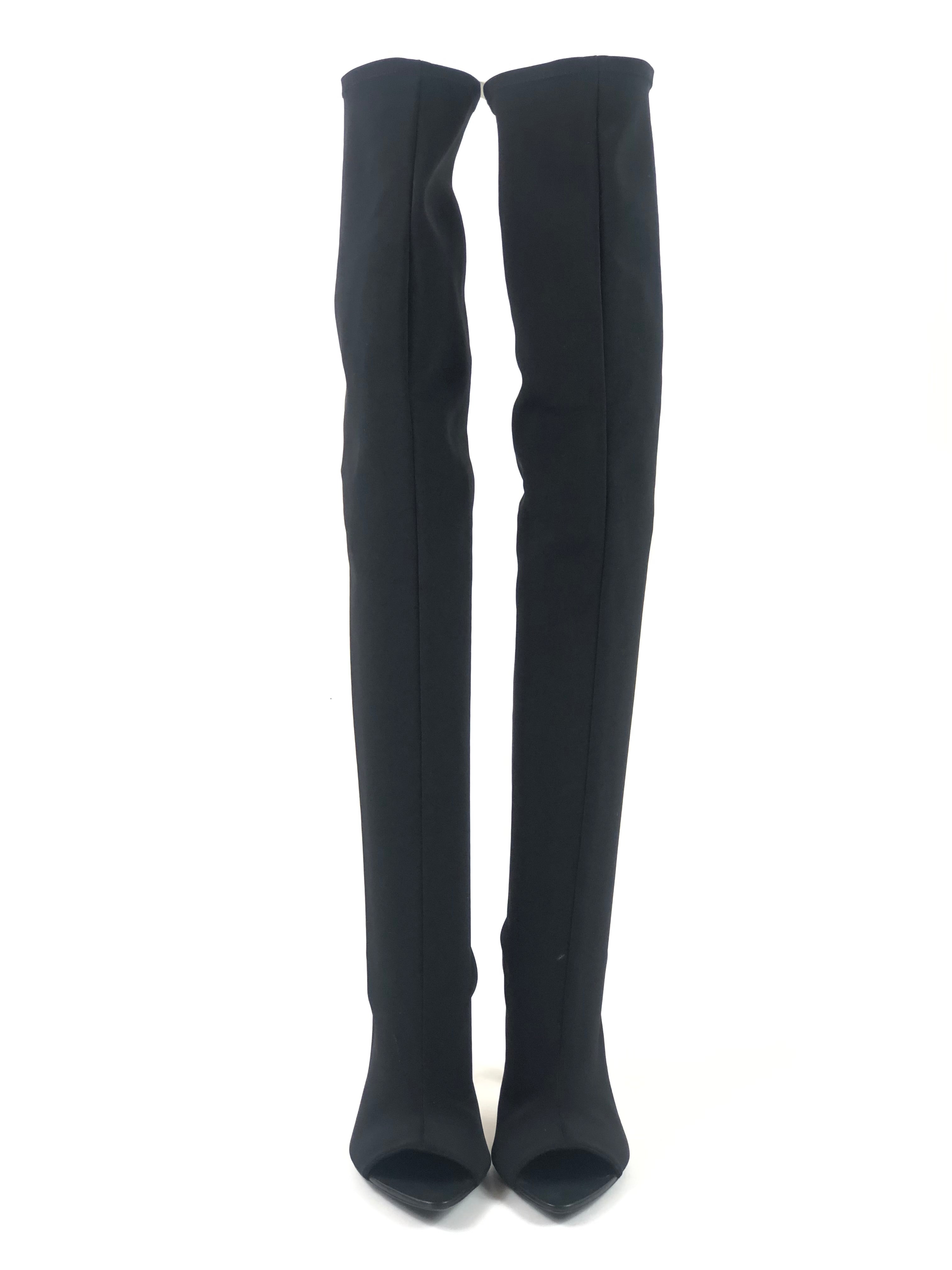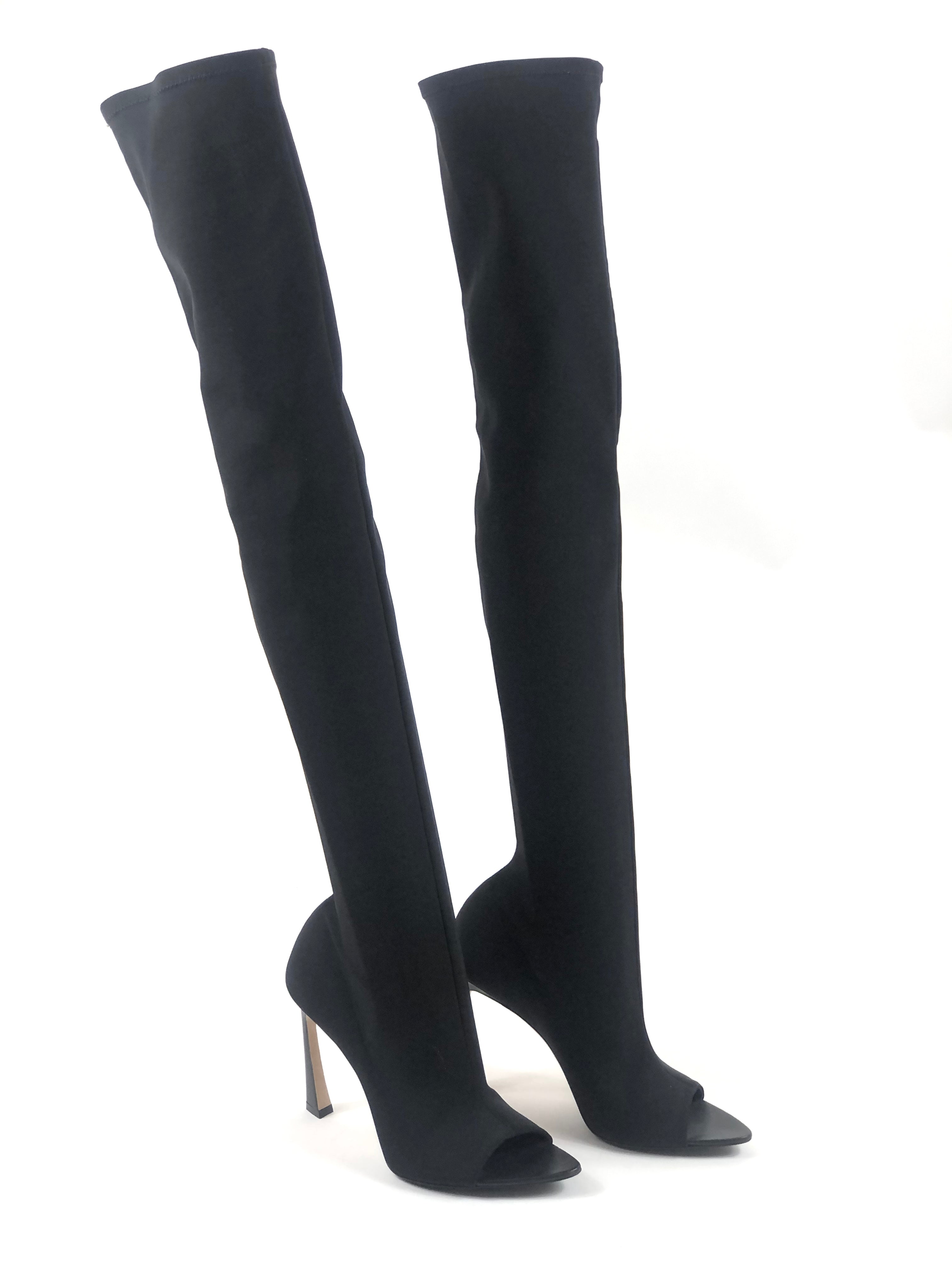 Black Jersey Peep-toe Over-the-knee Boots / VICTORIA BECKHAM - Size 39