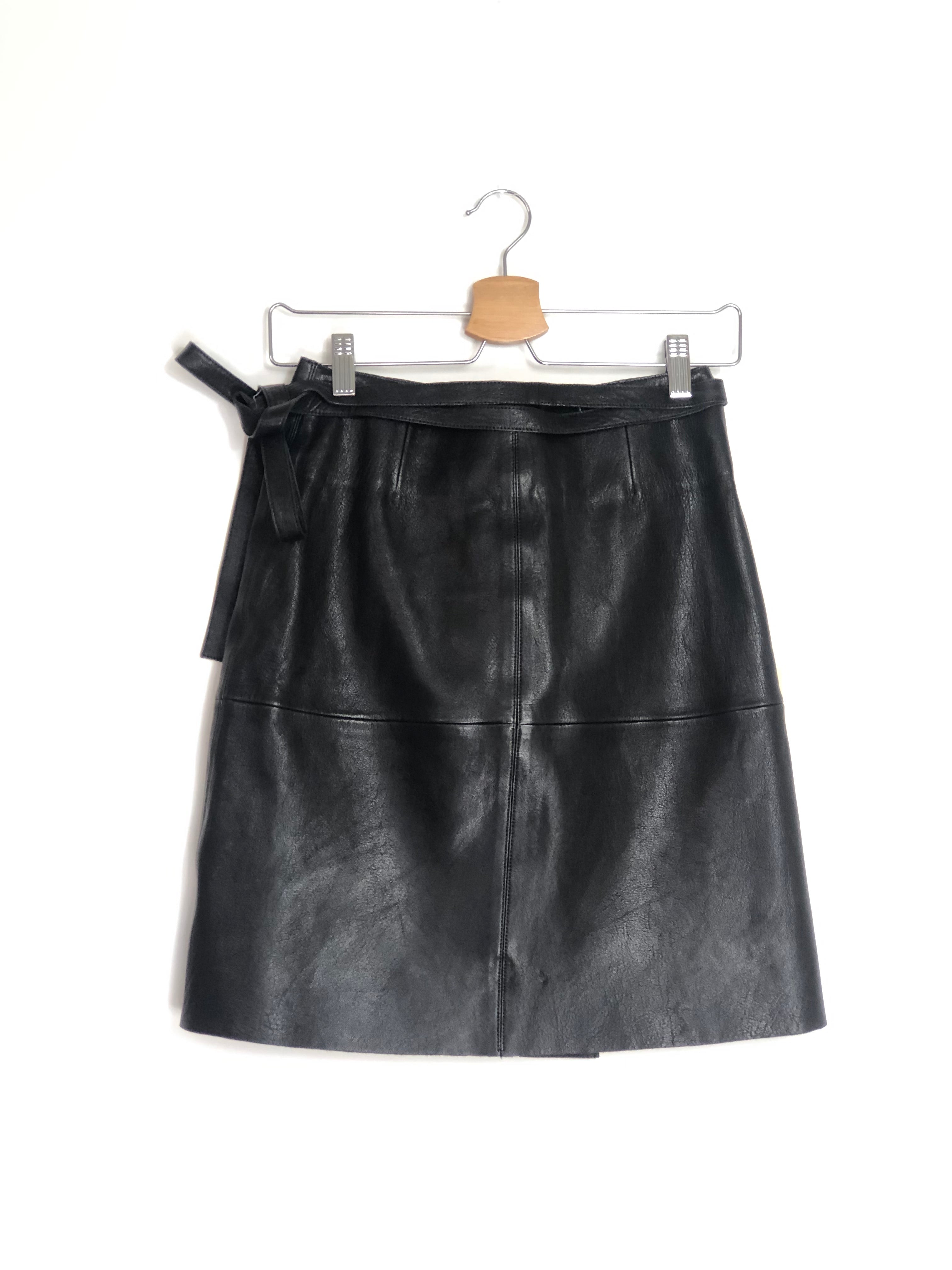 Black Lambskin Leather Wrap Mid-length Skirt / ISABEL MARANT - Size 34