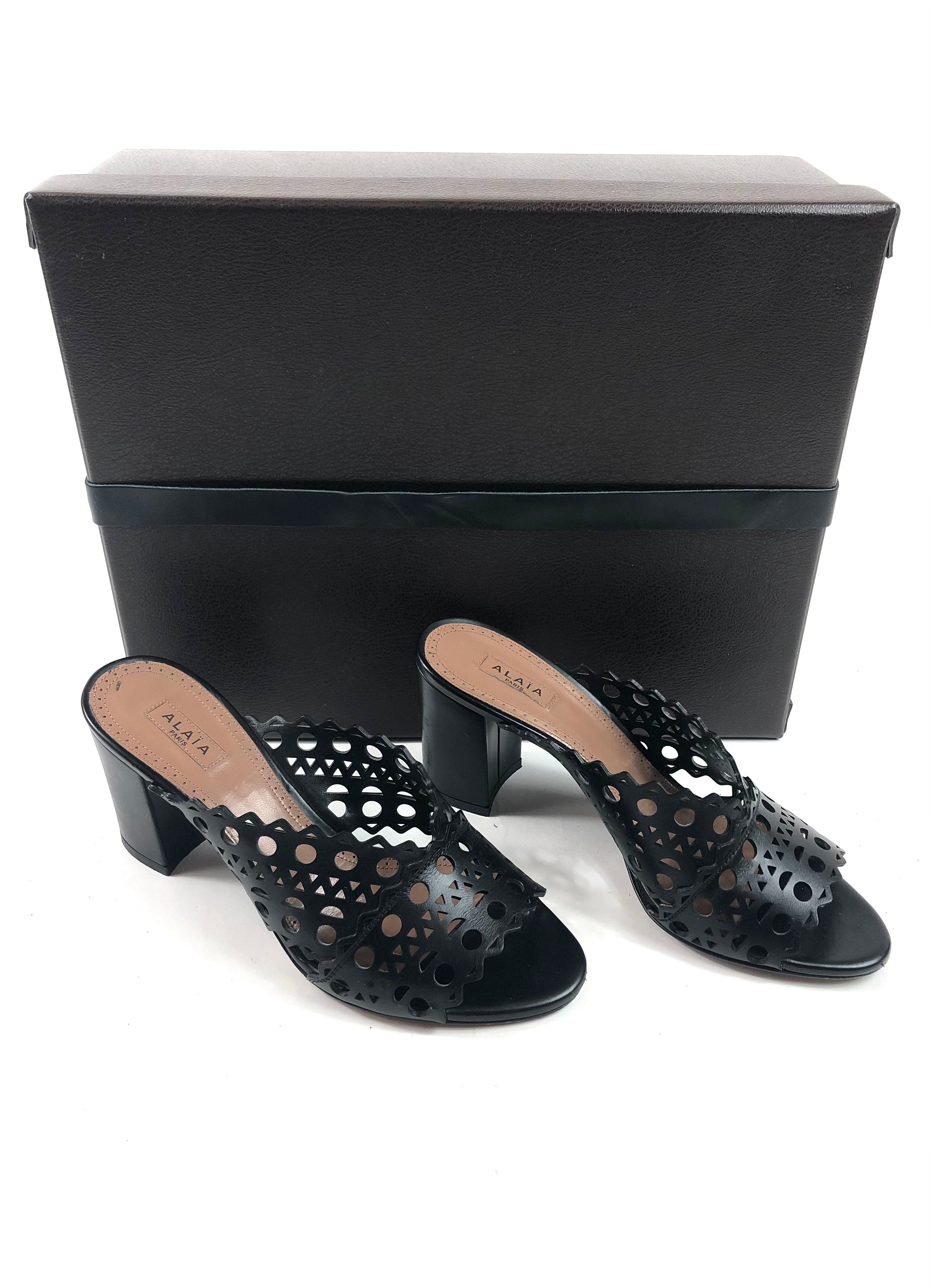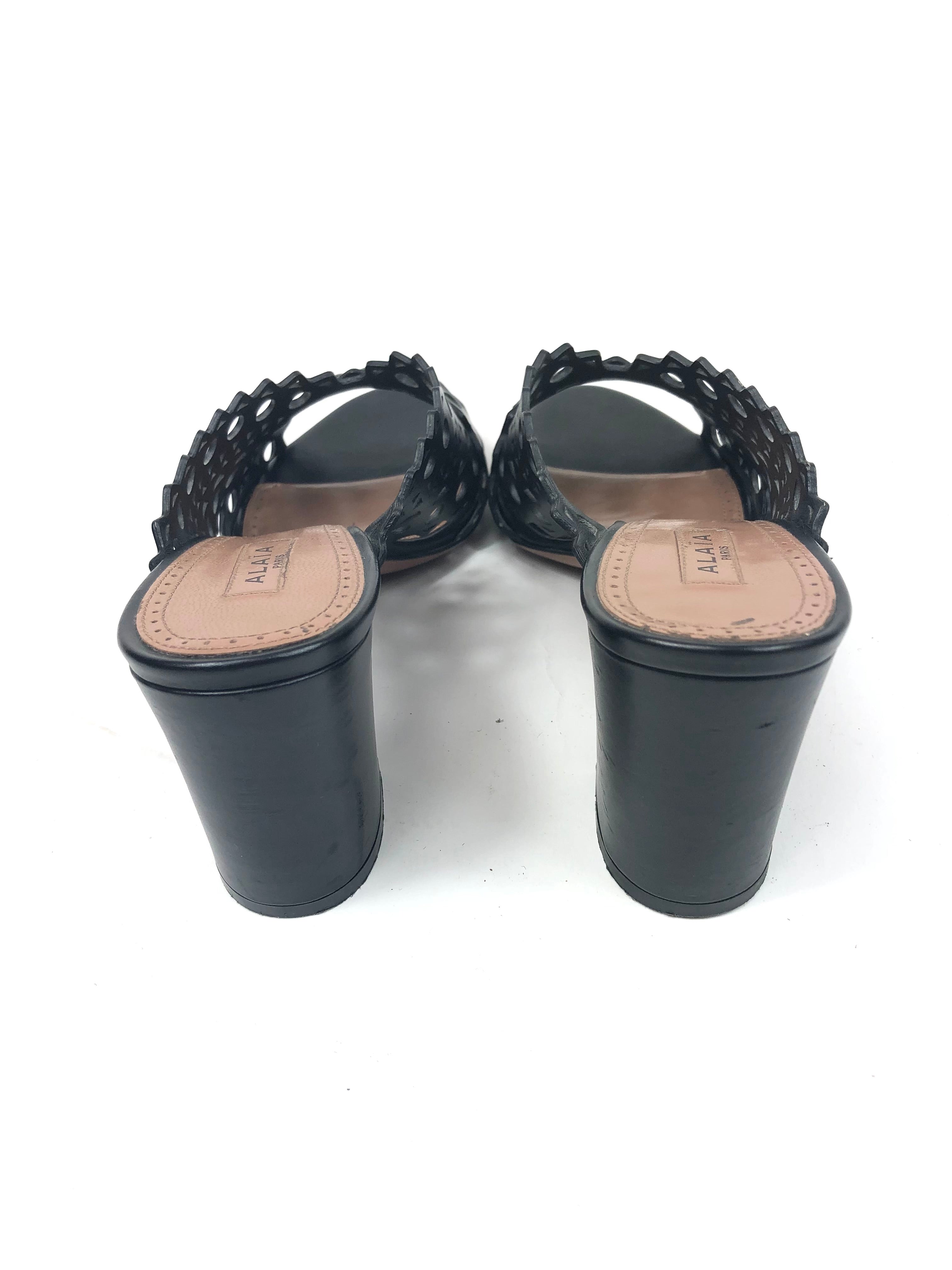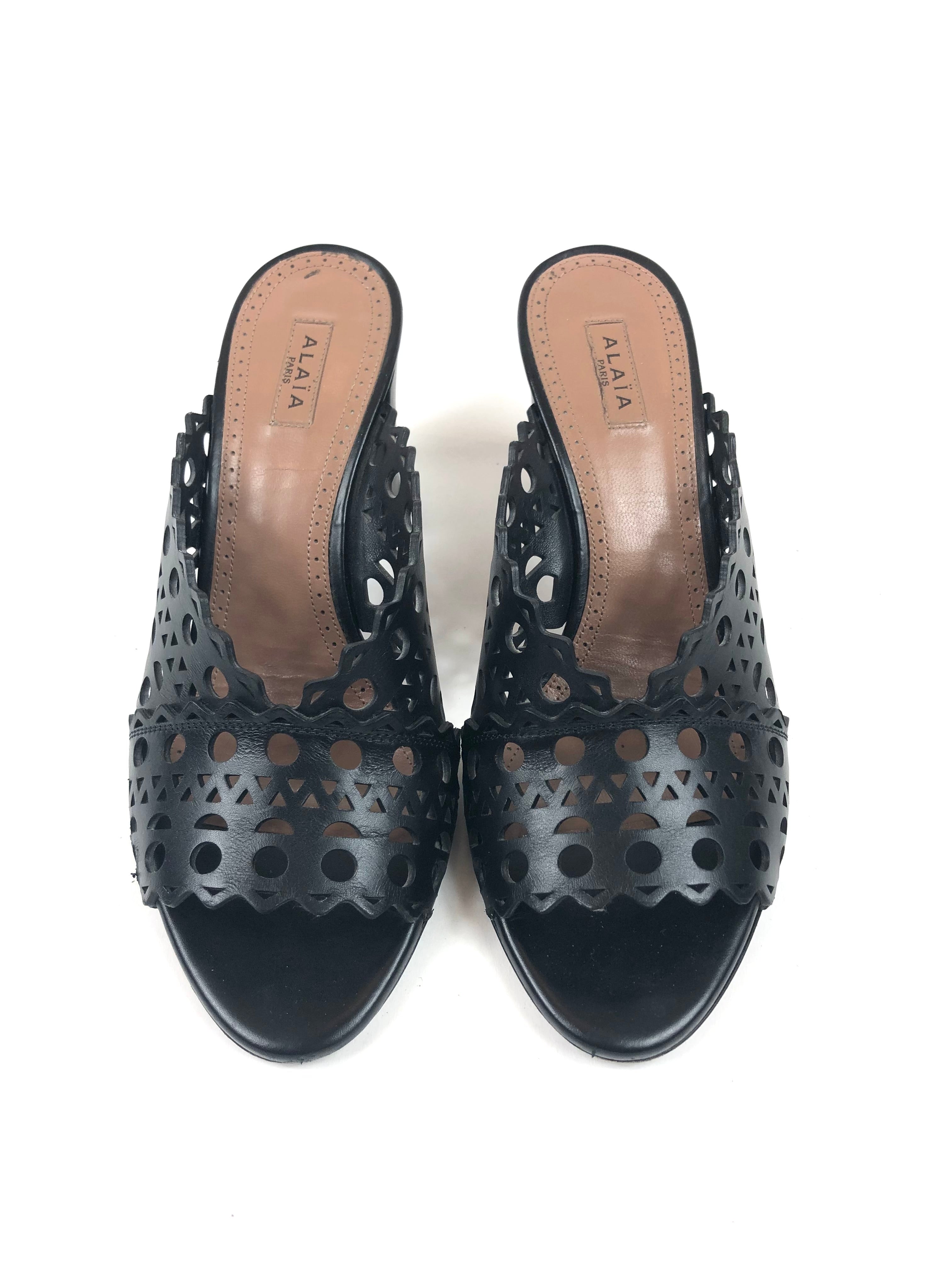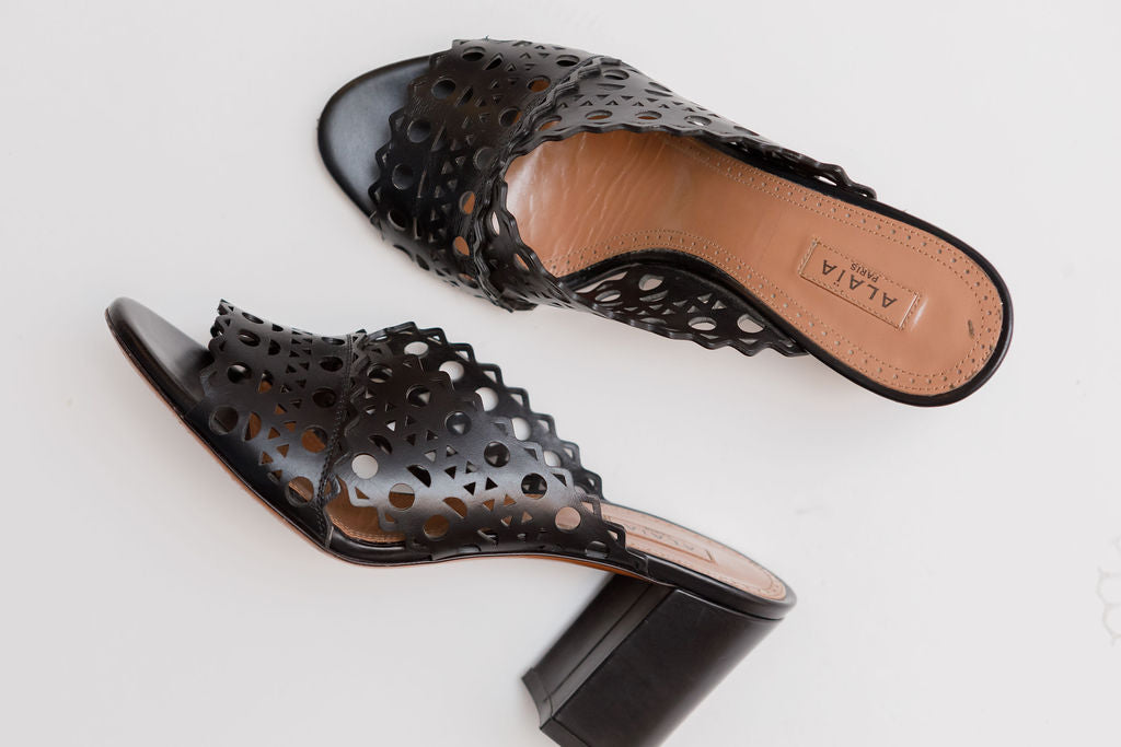 Black Laser-cut Leather Mules / ALAIA - Size 37